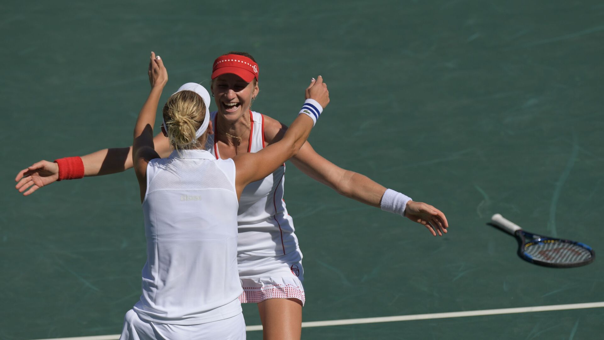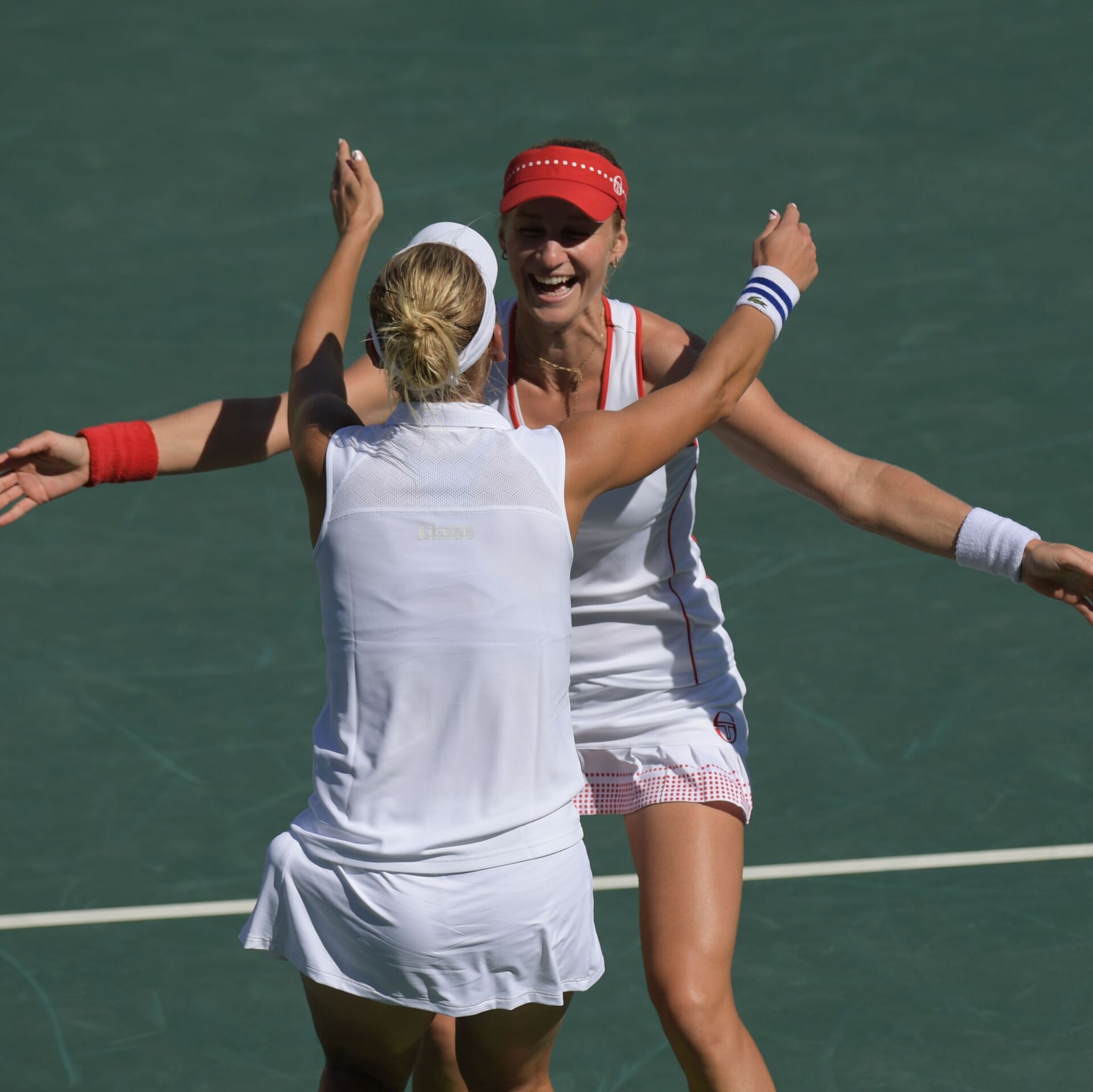© Sputnik . Grigoriy Sisoevالروسيتان إيكاترينا ماكاروفا وإيلينا فيسنينا في بطولة التنس للسيدات في دورة الالعاب الاولمبية الصيفية الحادية والثلاثين