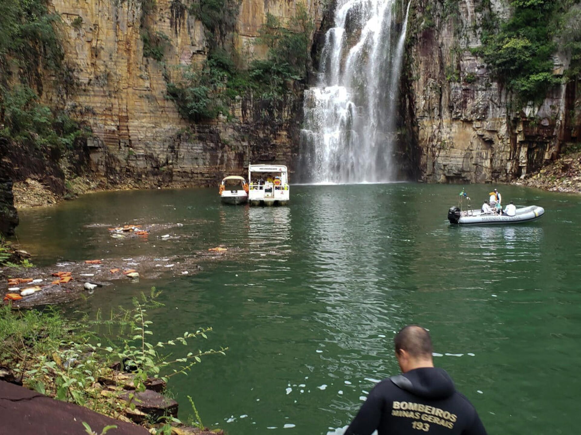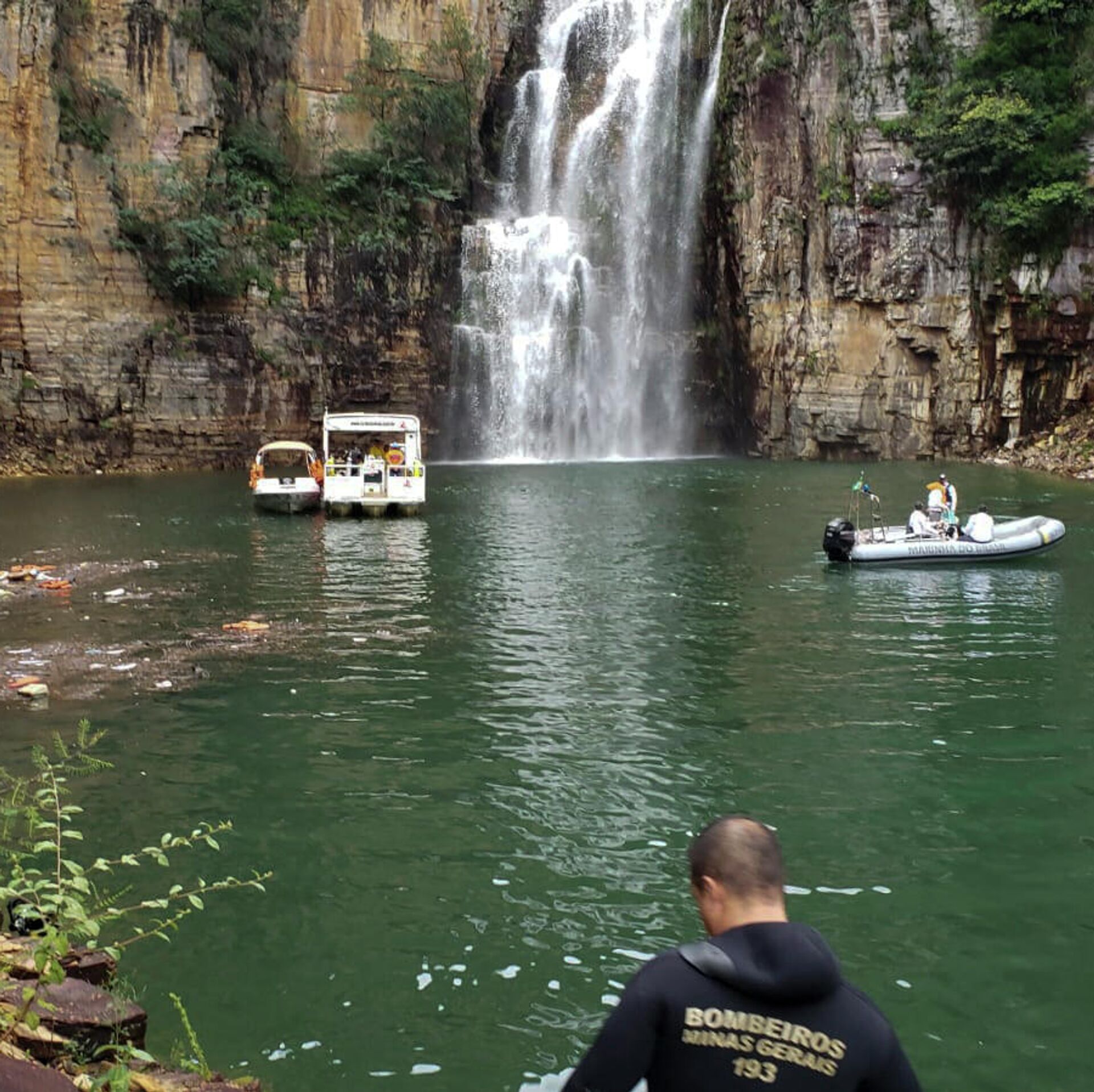 وانهار على عدة قوارب سياحية، دافعا بموجة ضخمة فوق البحيرة في كابيتوليو بولاية ميناس جيرايس.