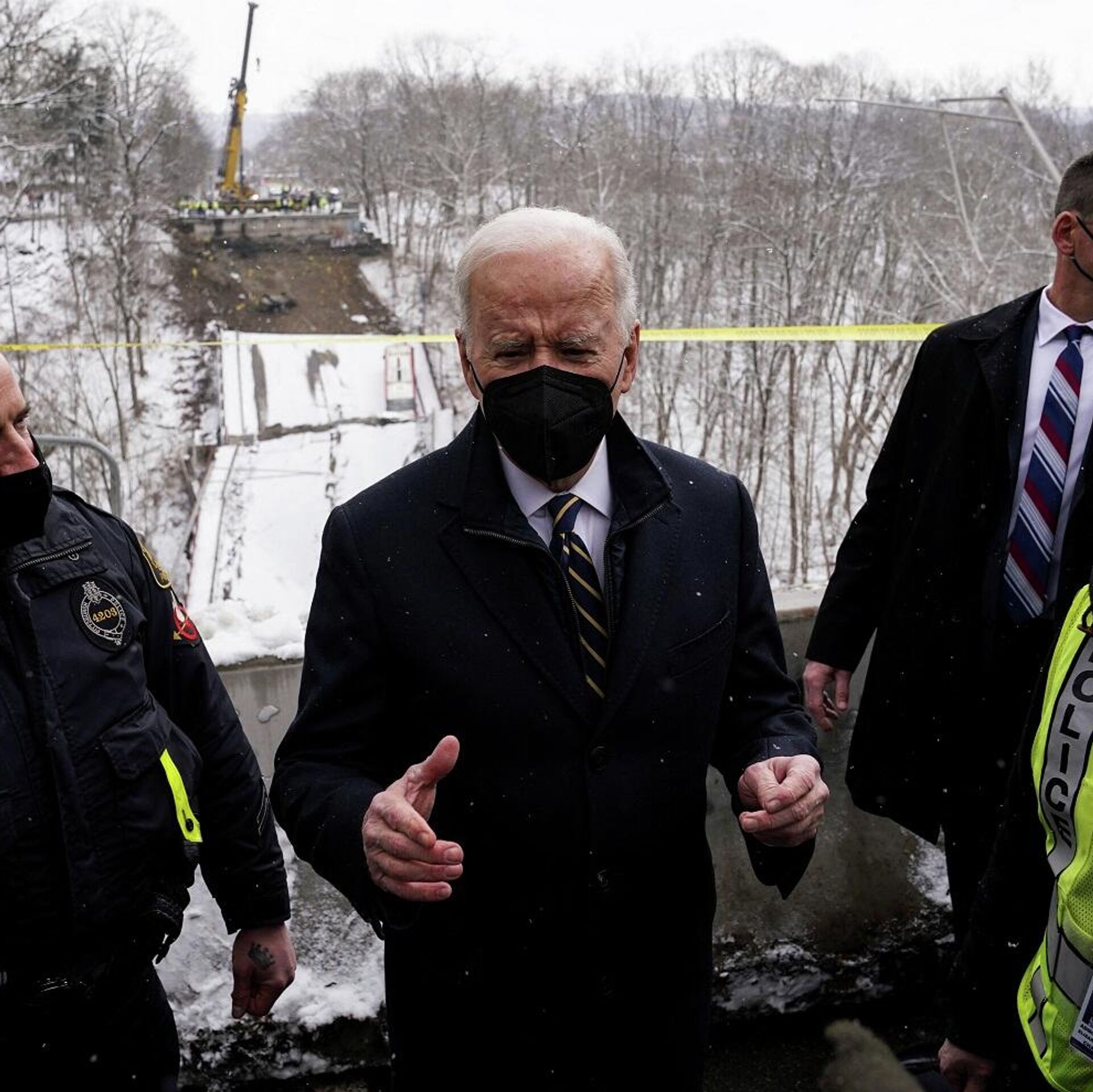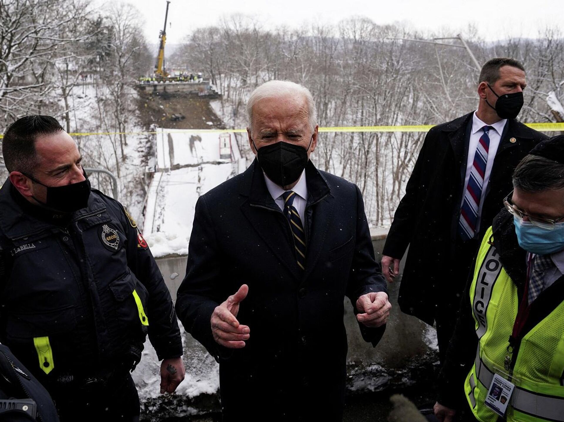 ووصل الرئيس الأمريكي، جو بايدن بعد ساعات قليلة من الانهيار الخطير لجسر بيتسبرغ، ووقف أمام حواجز خرسانية مغطاة بشريط أصفر من الشرطة، ورفع رقبته لينظر إلى الامتداد الذي خلّفه الجسر المنهار.