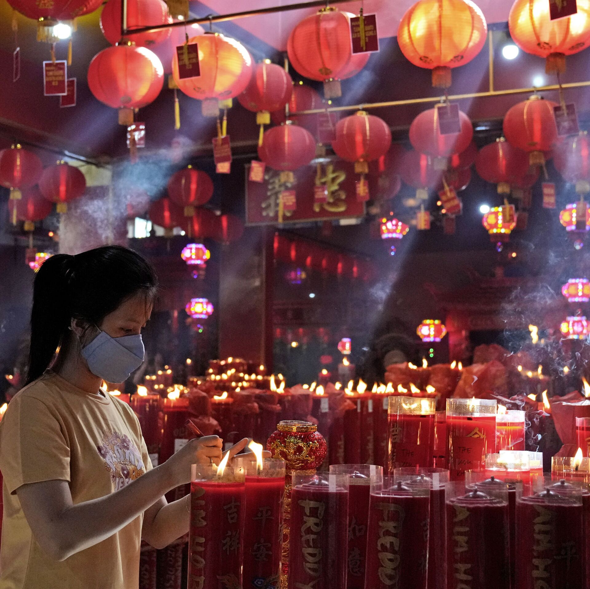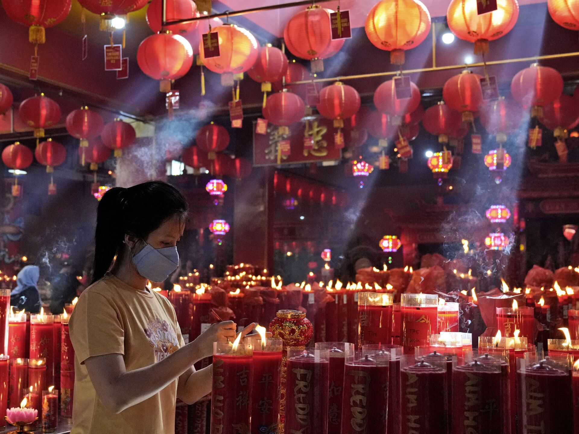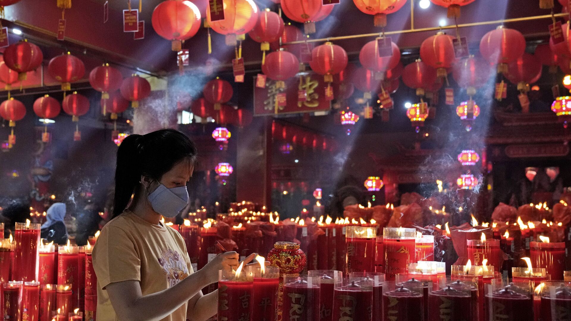 © AP Photo / Dita Alangkaraامرأة تضيء شمعة خلال احتفالات رأس السنة القمرية الجديدة في معبد هوك لاي كيونغ في بيكاسي، إندونيسيا، 1 فبراير 2022