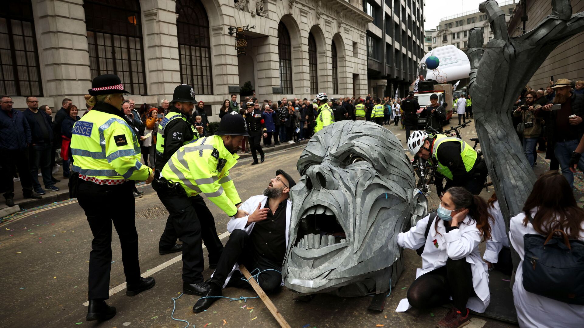 نشطاء تمرد ضد الانقراض يحتجون على مسار عرض خلال عرض اللورد مايور في لندن، بريطانيا، 13 نوفمبر 2021. - سبوتنيك عربي, 1920, 02.02.2022