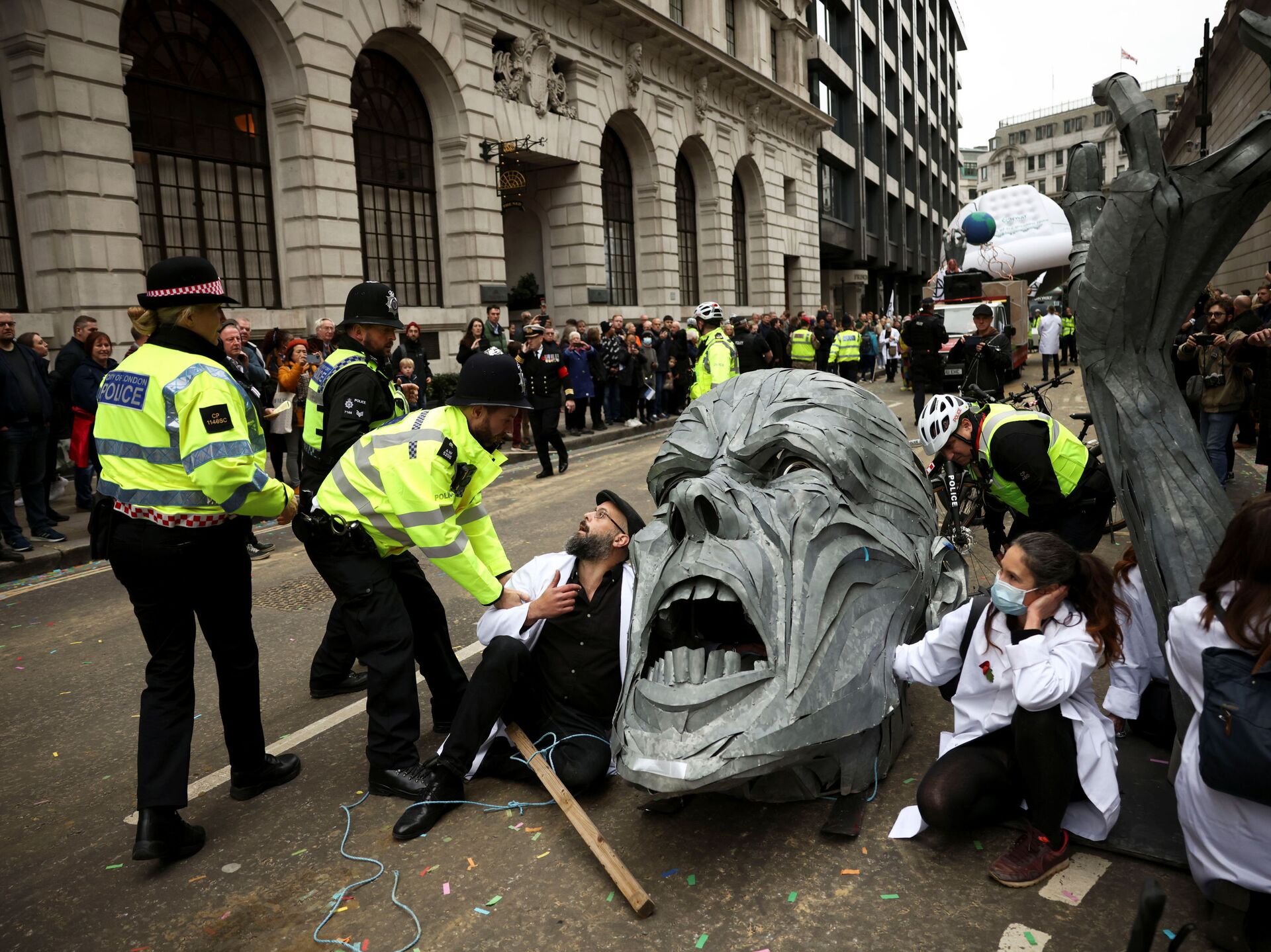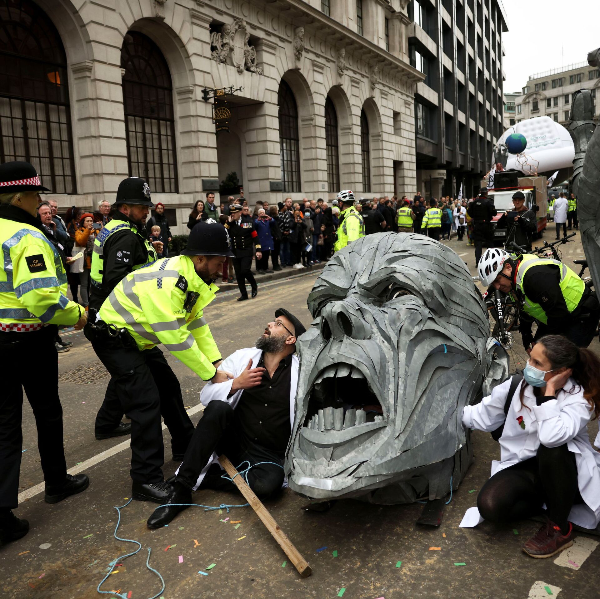© REUTERS / Henry Nichollsنشطاء تمرد ضد الانقراض يحتجون على مسار عرض خلال عرض اللورد مايور في لندن، بريطانيا، 13 نوفمبر 2021.