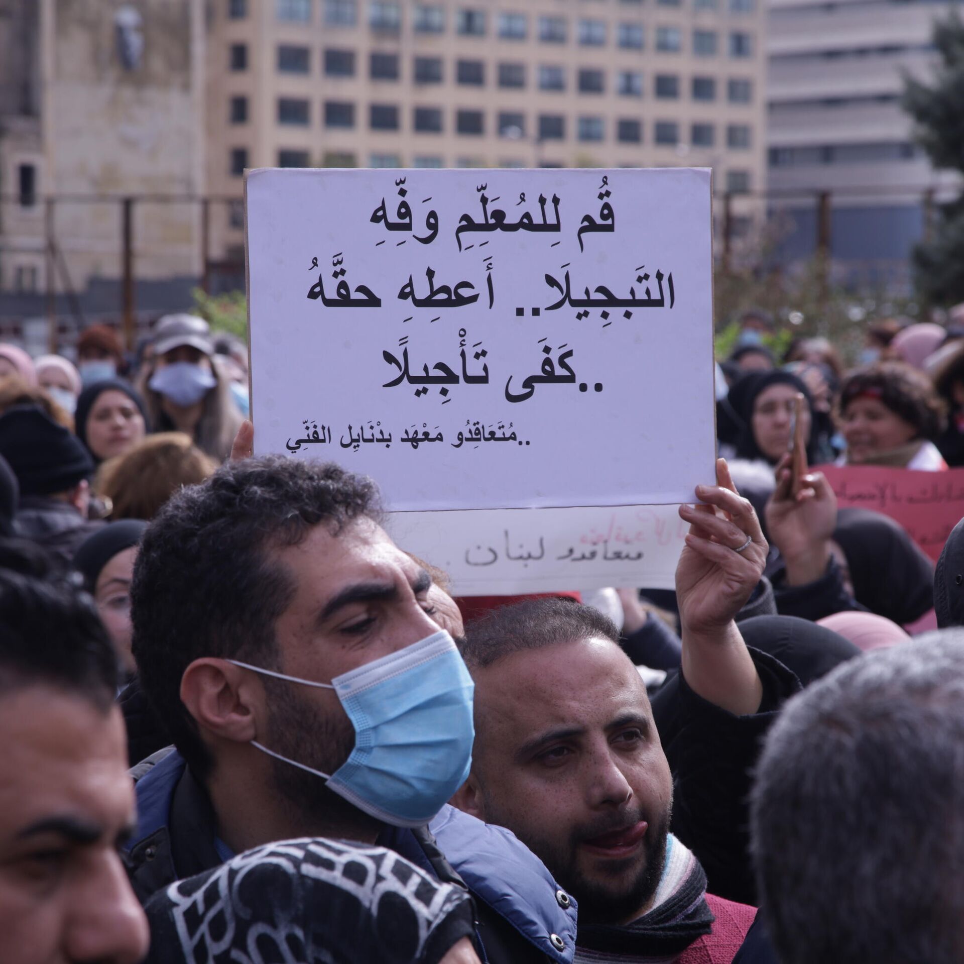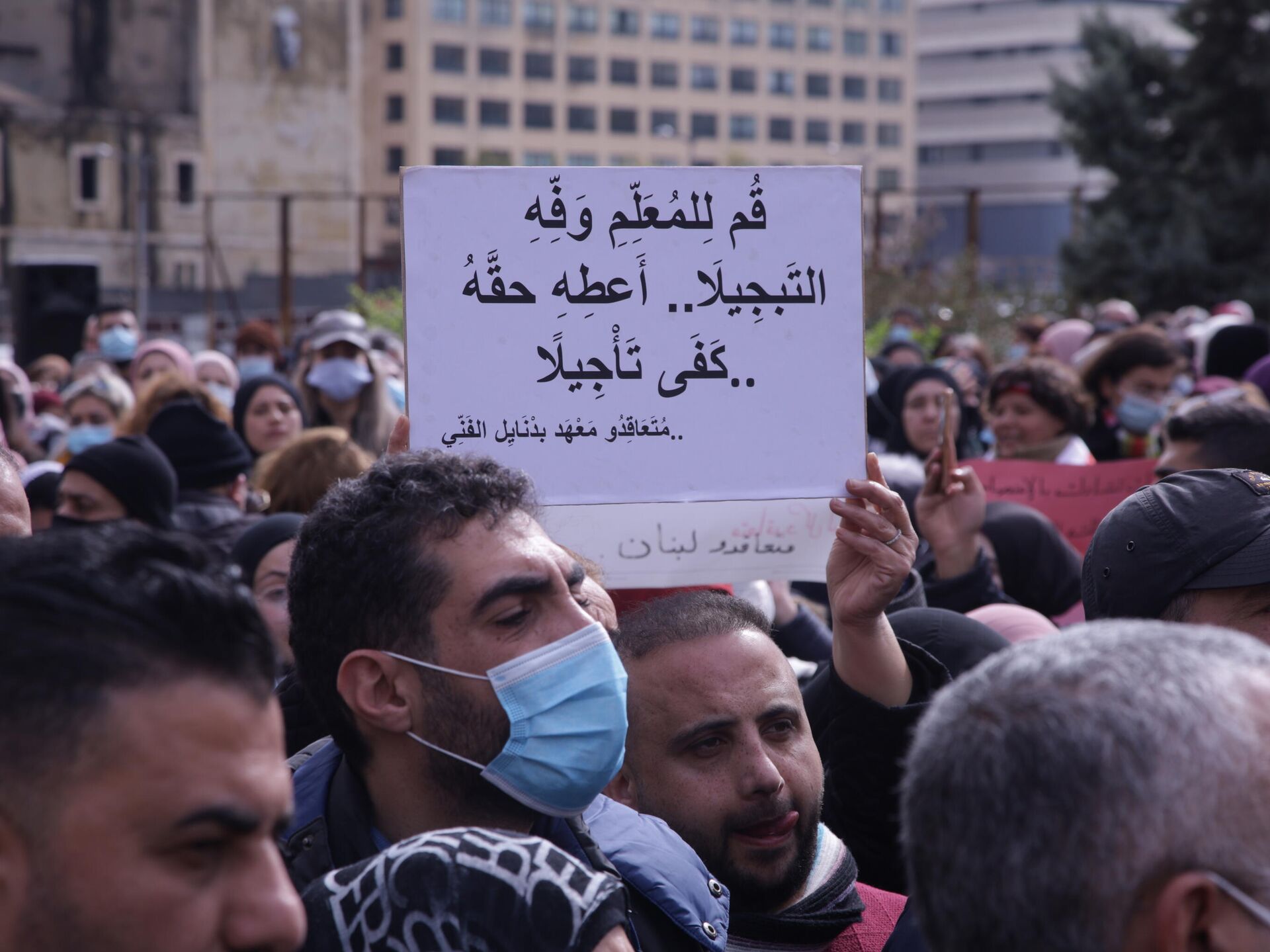 نفذ الأساتذة المتعاقدون في التعليم الرسمي اللبناني، تظاهرة حاشدة اليوم الاثنين، في ساحة رياض الصلح وسط بيروت بالتزامن مع لقاء تشاوري في السراي لإنقاذ وتعافي قطاع التربية والتعليم العالي، وفي جعبتهم حزمة من المطالب لتحسين أوضاعهم من الرواتب إلى بدل النقل ومساعدة بالدولار الطازج وصولا إلى التثبيت.