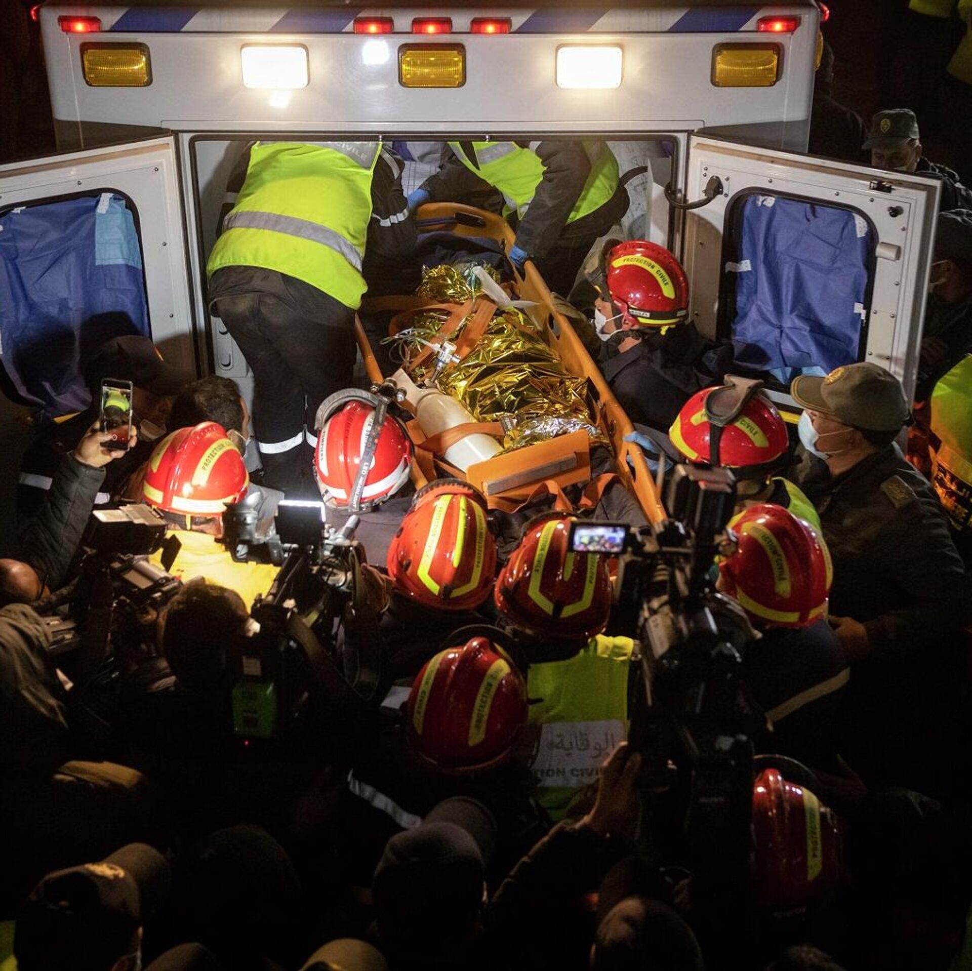 قام عمال الإنقاذ بإزالة حفنة من التربة للوصول إليه، بعد عملية حفر ماراثونية في قرية إغران في جبال الريف الفقيرة شمالي المغرب.