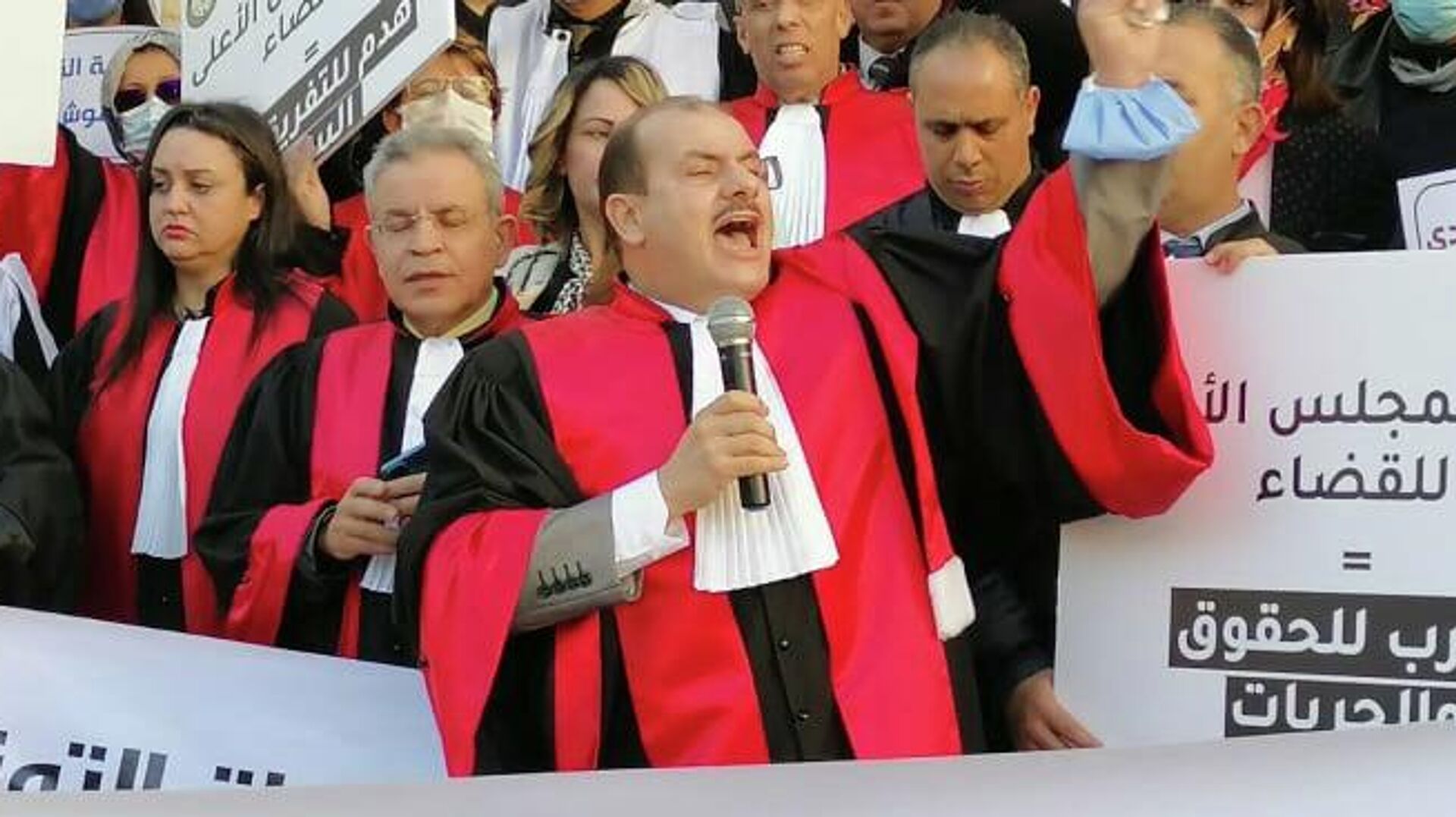 من جهته قال رئيس جمعية القضاة التونسيين، أنس حمايدي، في كلمة ألقاها خلال التحرك الاحتجاجي، إن القضاء التونسي اليوم صار في حالة حصار، على حد تعبيره.