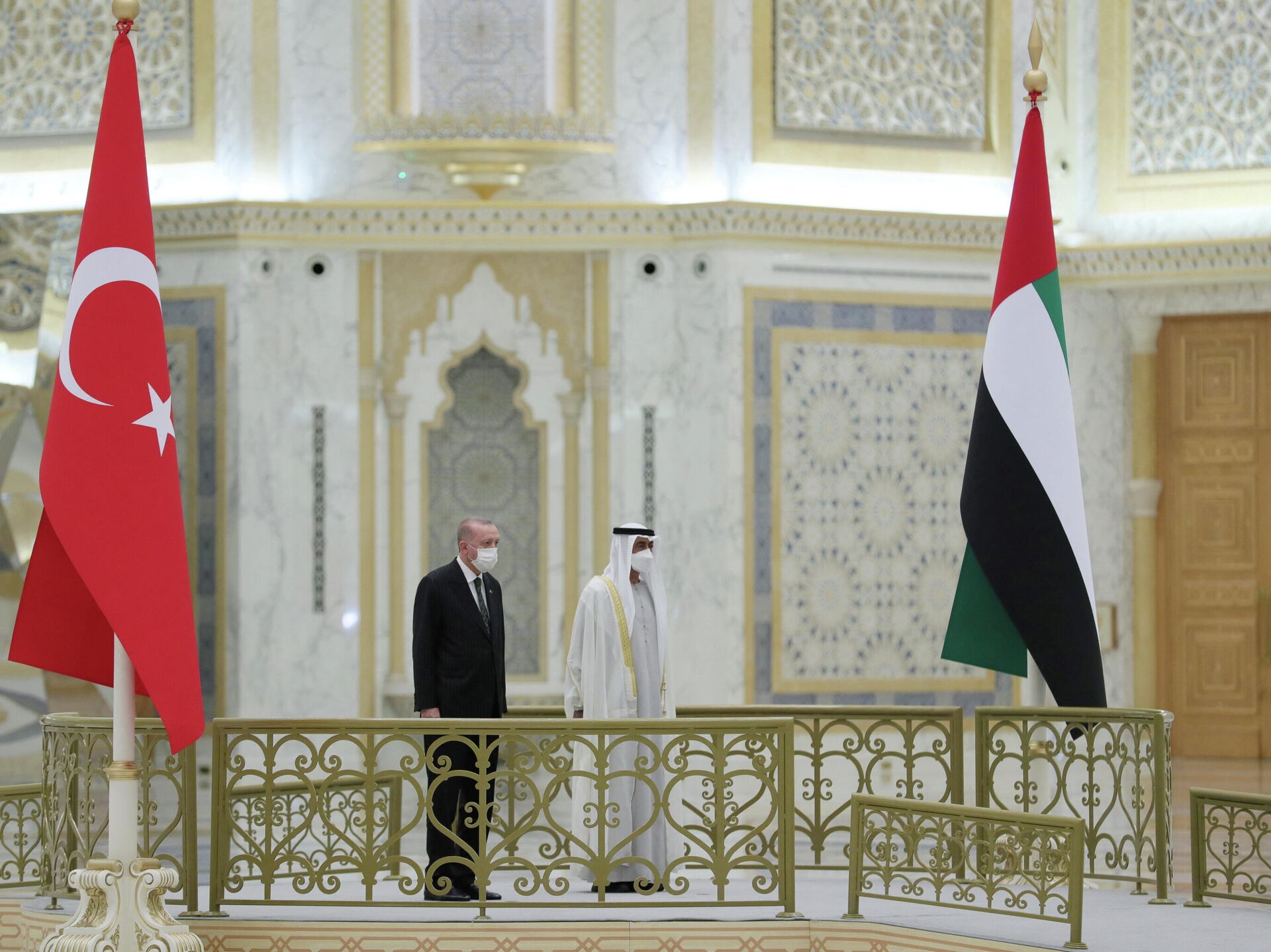 جاء ذلك خلال استقبال الشيخ محمد بن زايد لأردوغان في قصر الوطن بأبو ظبي، في أول زيارة للرئيس التركي للإمارات العربية المتحدة منذ 10 سنوات.