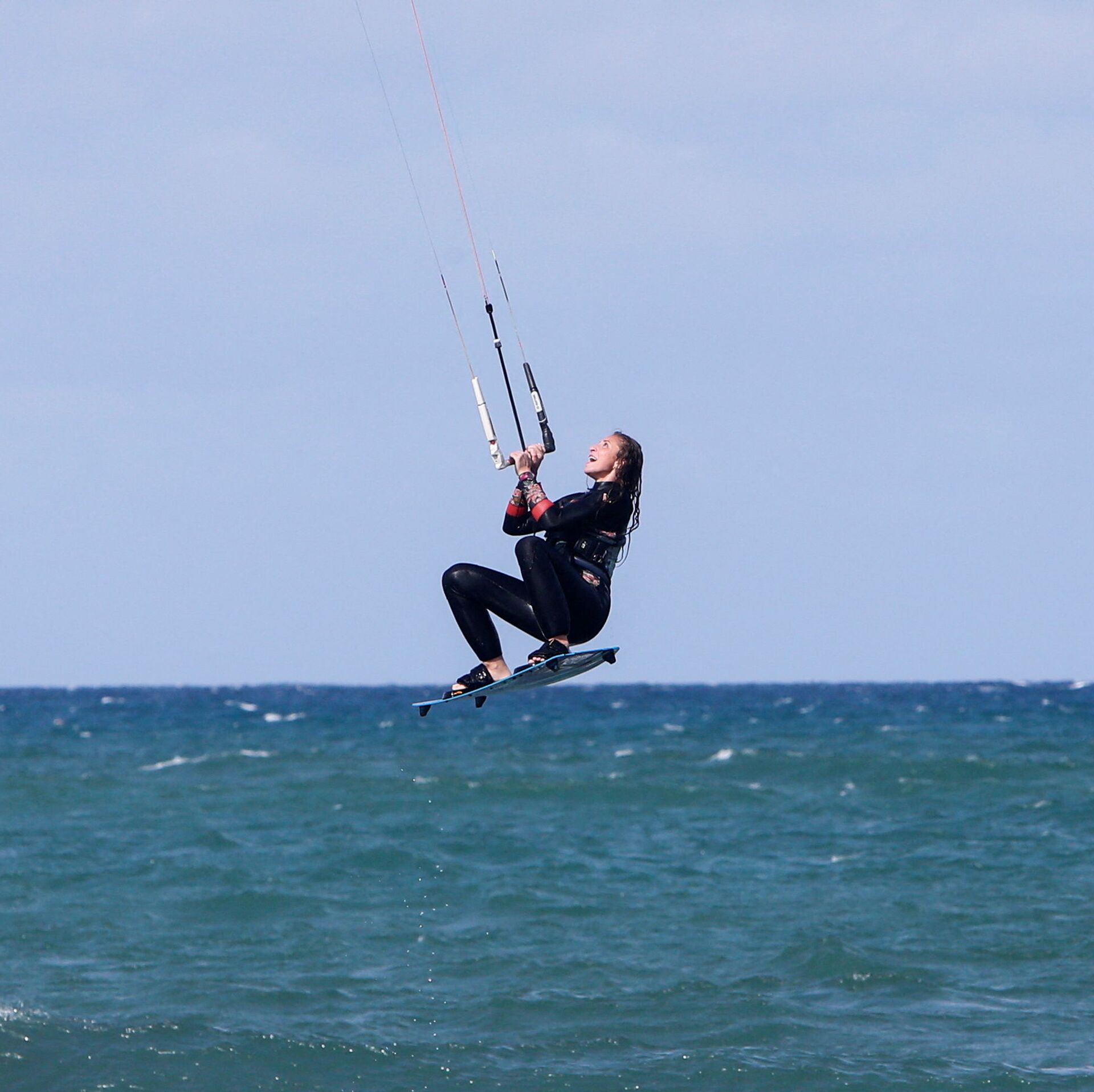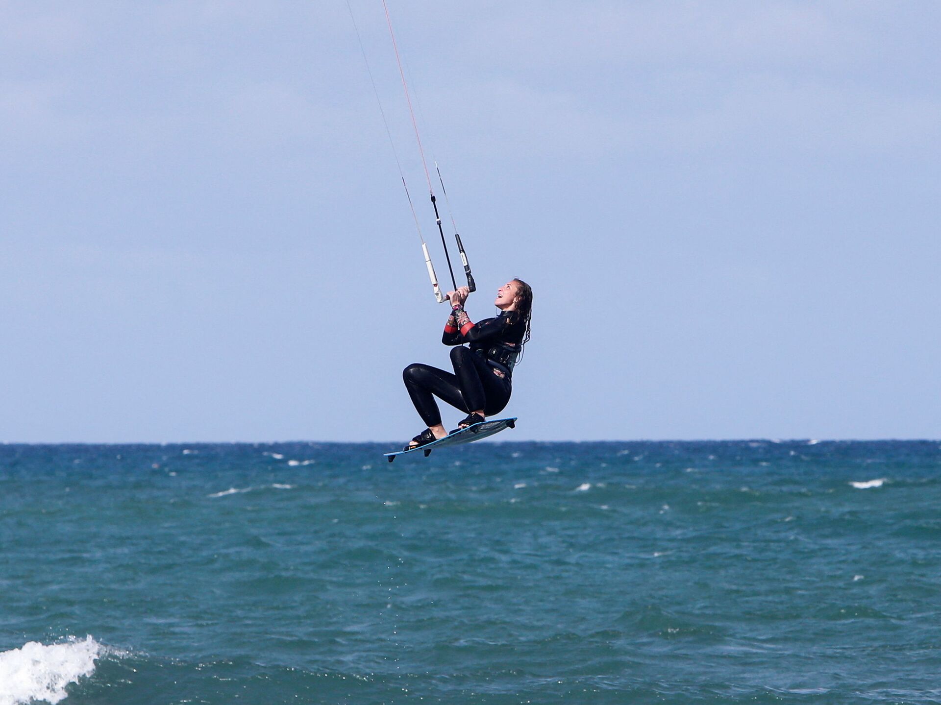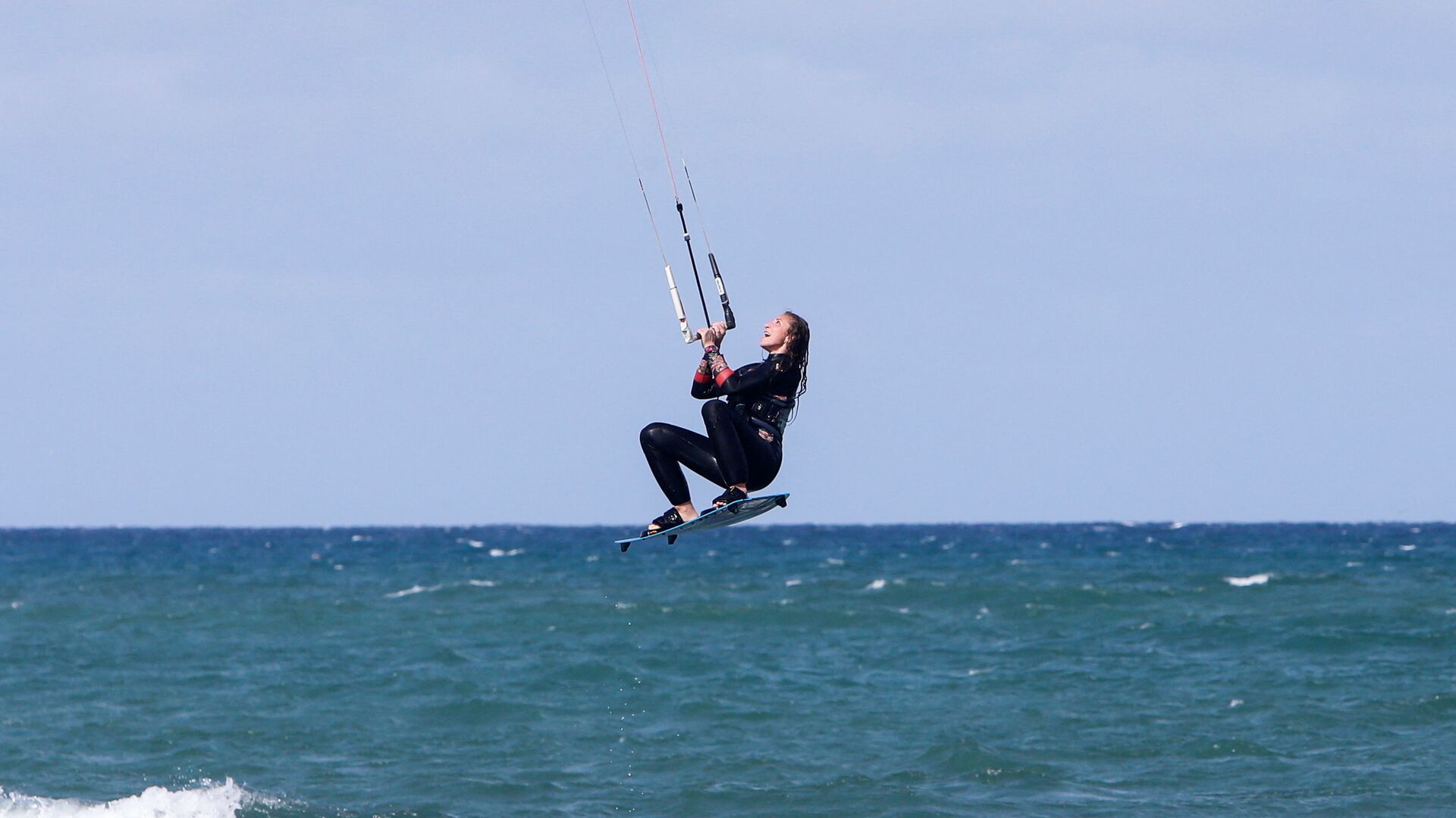 في نهاية كل أسبوع، تمسك الجزائريات ألواحهن وطائرتهن الورقية الكبيرة ويتجهن إلى الشاطئ لممارسة رياضة التزلج الشراعي وركوب أمواج البحر المتوسط. 02.03.2022, سبوتنيك عربي