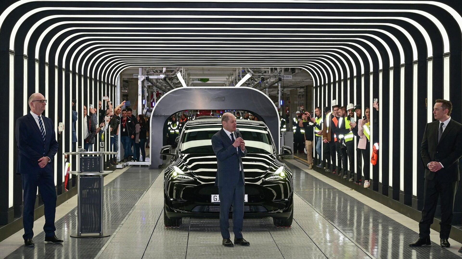 Die Eröffnung des #Tesla-Werks mit @elonmusk in Brandenburg ist ein wichtiges Zeichen: Deutschland ist ein starker Standort für industrielle Investitionen. So wird es uns gelingen, klimaneutral zu werden und die Transformation anzuführen. Die Zukunft gehört der Elektromobilität. pic.twitter.com/Fj4IHK9sQU