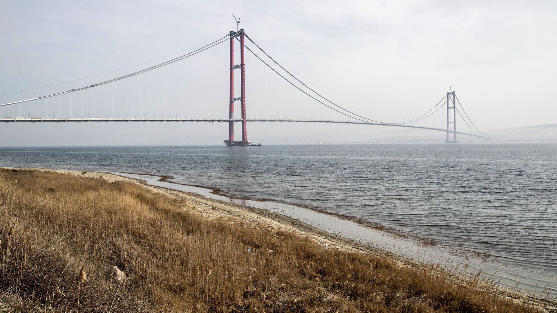 © Sputnik . Kemal Aslan  / الانتقال إلى بنك الصورجسر "تشاناكالي 1915" المعلق عبر مضيق الدردنيل، تركيا 16 فبراير 2022