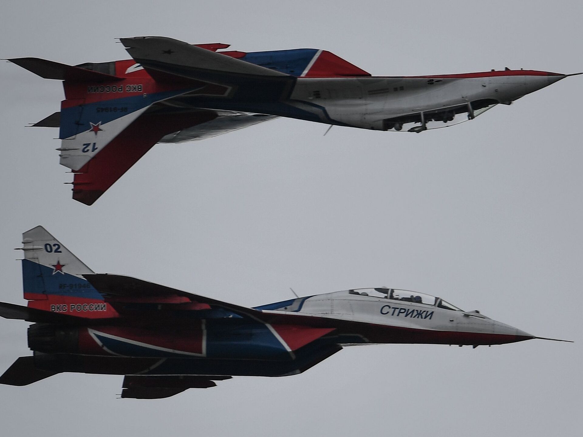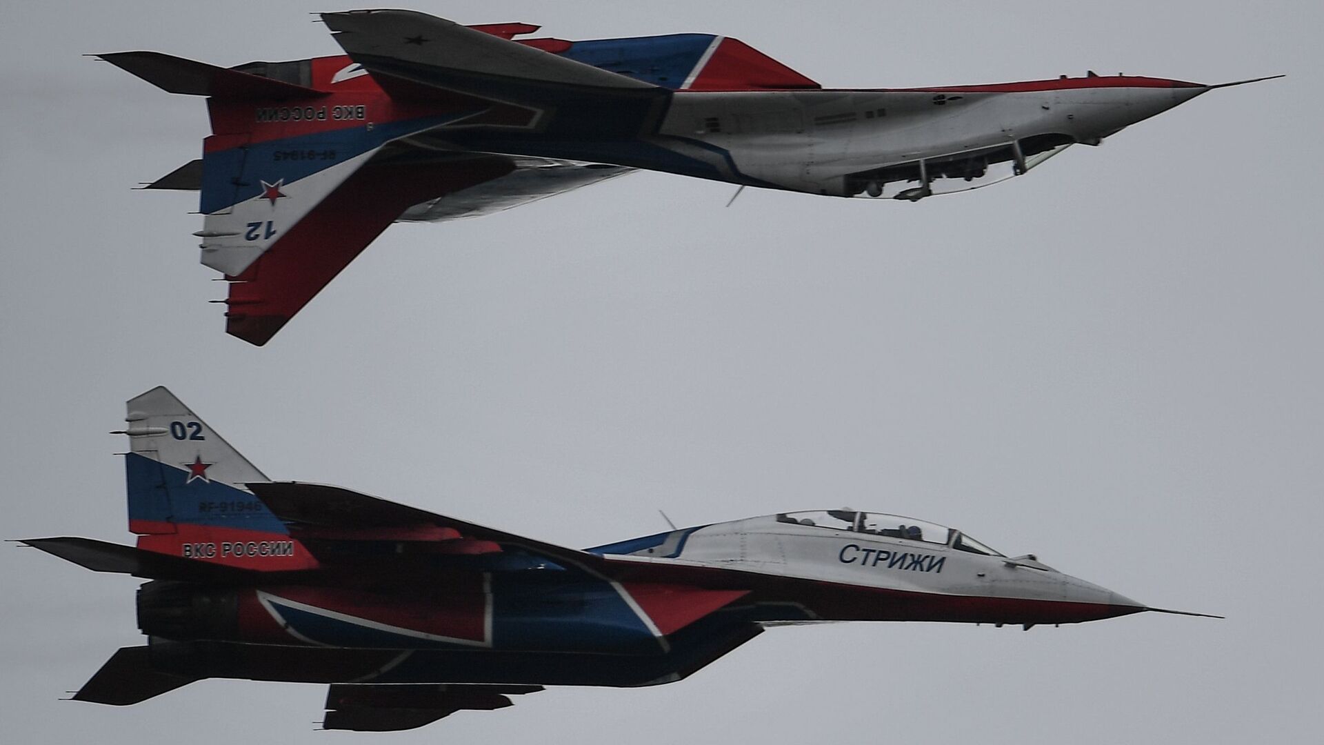 © Sputnik . Vladimir Astapkovich / الانتقال إلى بنك الصورعرض جوي عسكري في منتدى "أرميا 2020" في كوبينكا بضواحي موسكو - المقاتلات "ميغ-29" (فريق الاستعراض الجوي الروسي "ستريجي"