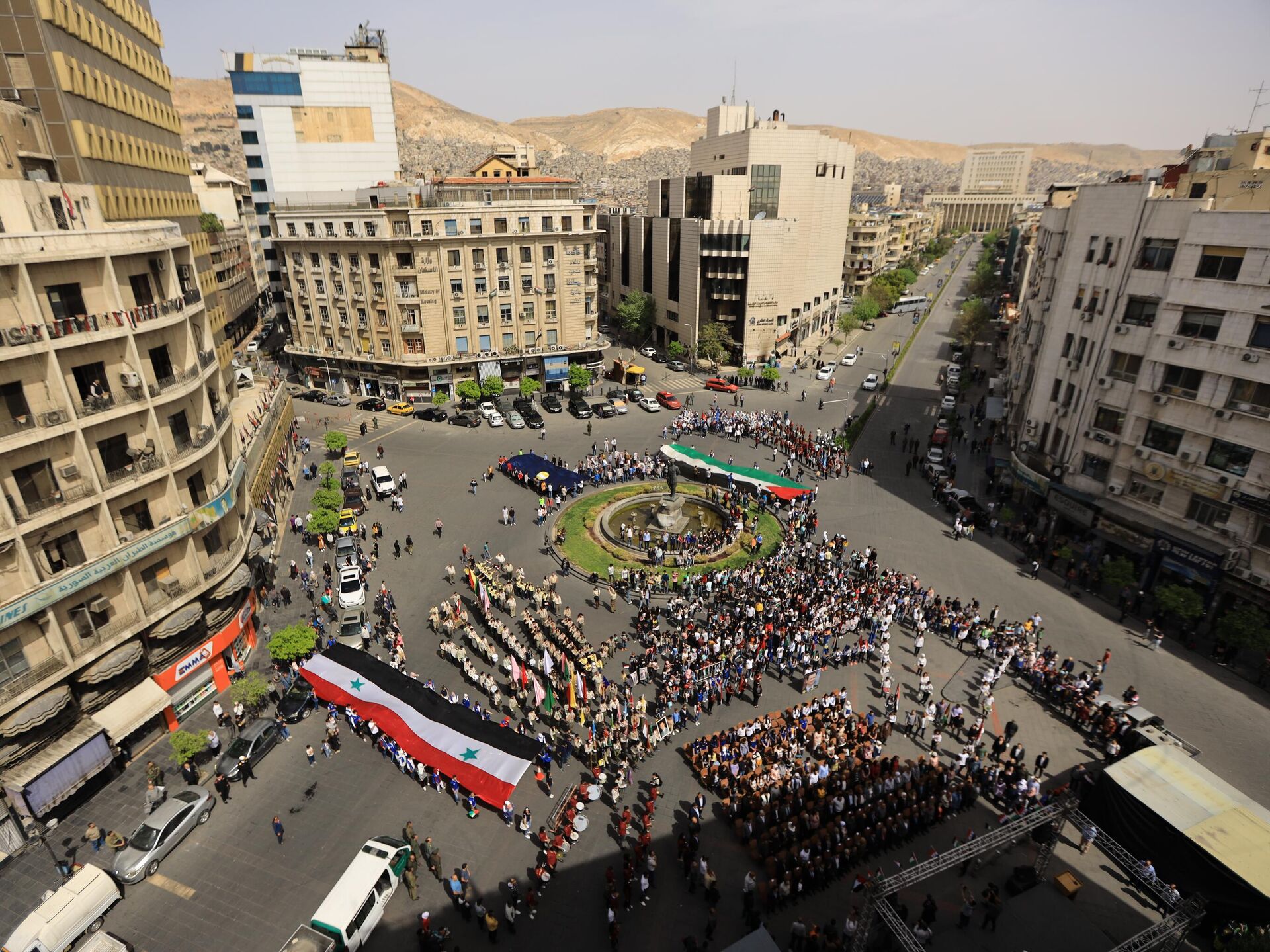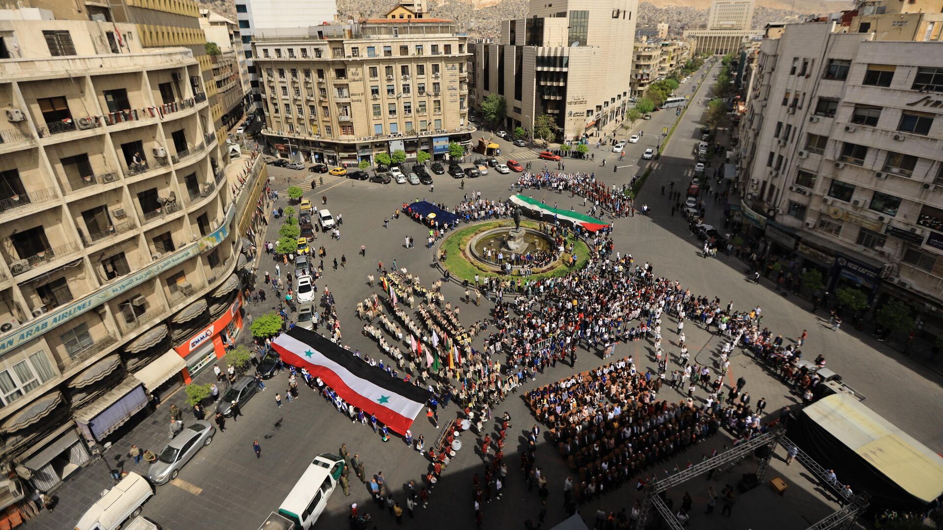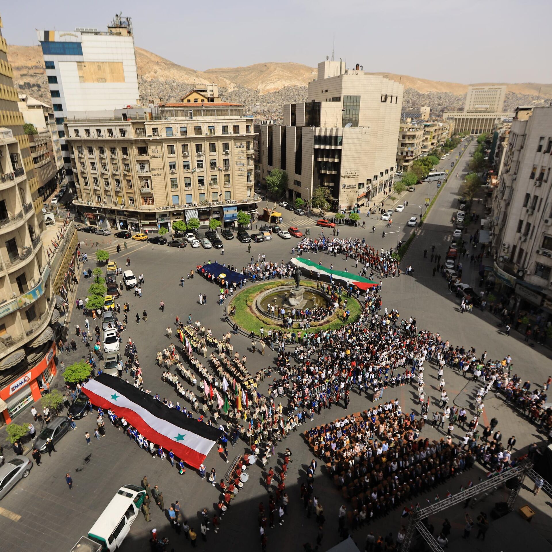 احتفالات شبابية بعيد استقلال سوريا في ساحة يوسف العظمة بدمشق