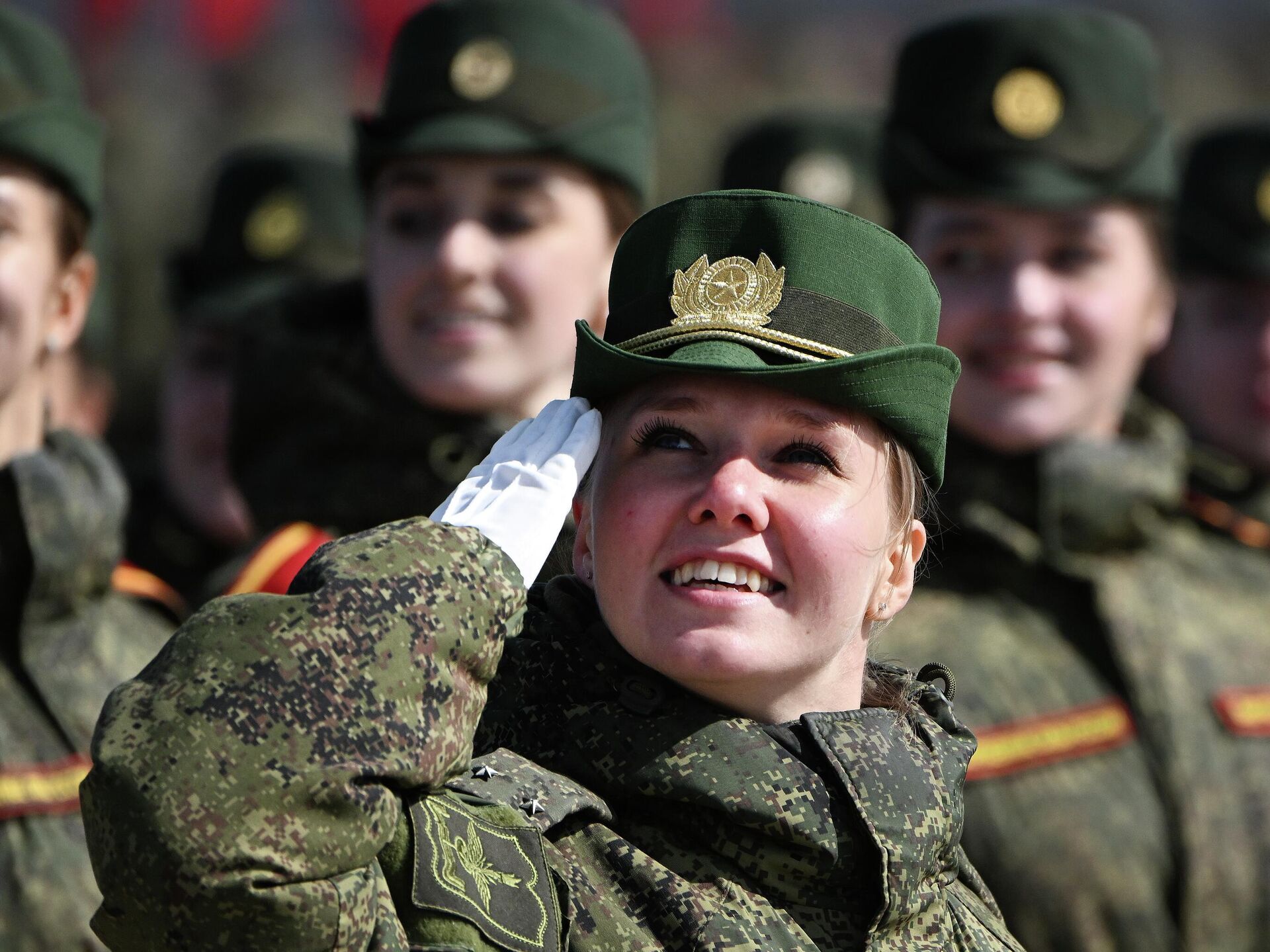 بروفة العرض العسكري بمناسبة الذكرى الـ 77 لعيد النصر على ألمانيا النازية في حقل ألابينو العسكري في ضواحي موسكو، 18 أبريل 2022