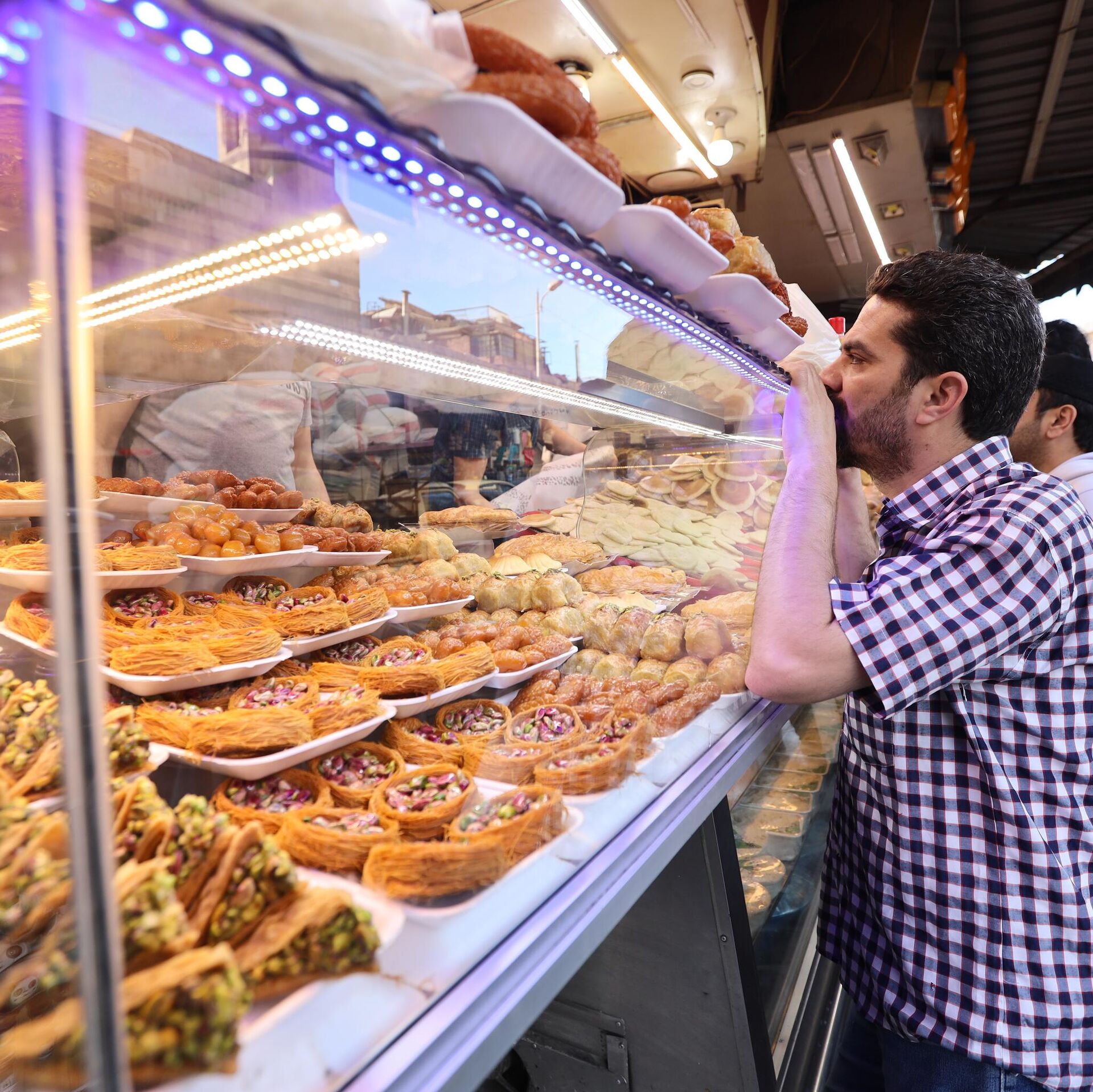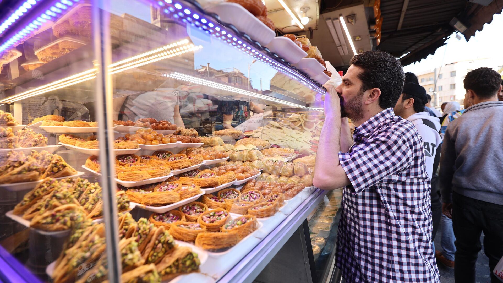 في دمشق، يصعب تصور الشوارع والحارات الرمضانية دون "الناعم" و"النهش" على وجه الخصوص، واليوم، يبتسم المحظوظون ممن يتمتعون بالقدرة على شراء هذه الحلويات ولو بكميات ضئيلة، يجمعون ما استقر في قاع جيوبهم، قبل أن يتناثروا أمام البسطات والمحال راسمين على وجوههم ابتسامات راضية تفتقر إلى تفسير بليغ، يمدون أيديهم وهم يتمتمون: "رمضان كريم".