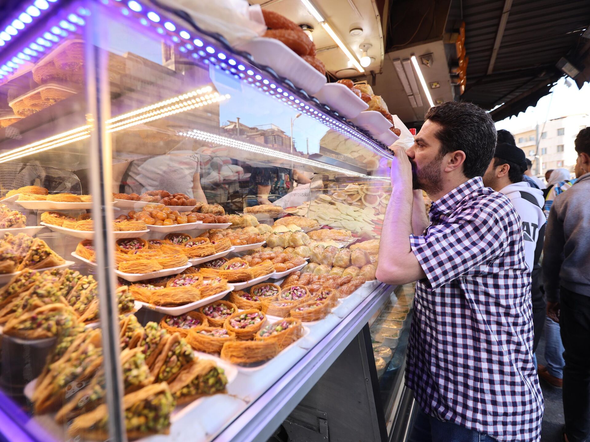 "غيوم منفوشة" مدفوعة بالهواء الربيعي العذب تغطيها قطرات دبس العنب الحلو، تنساب كالحلم من بين أيدي الباعة في أحياء دمشق القديمة فيما تصدح أصواتهم: "الهوا رماك... 23.04.2022, سبوتنيك عربي