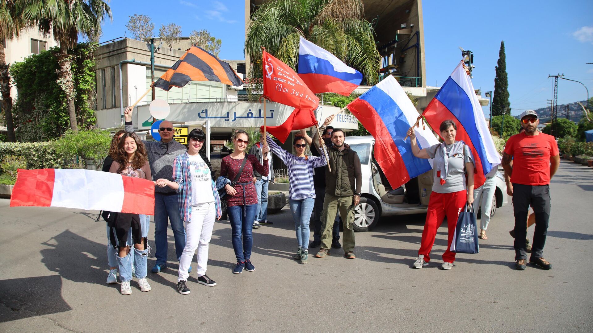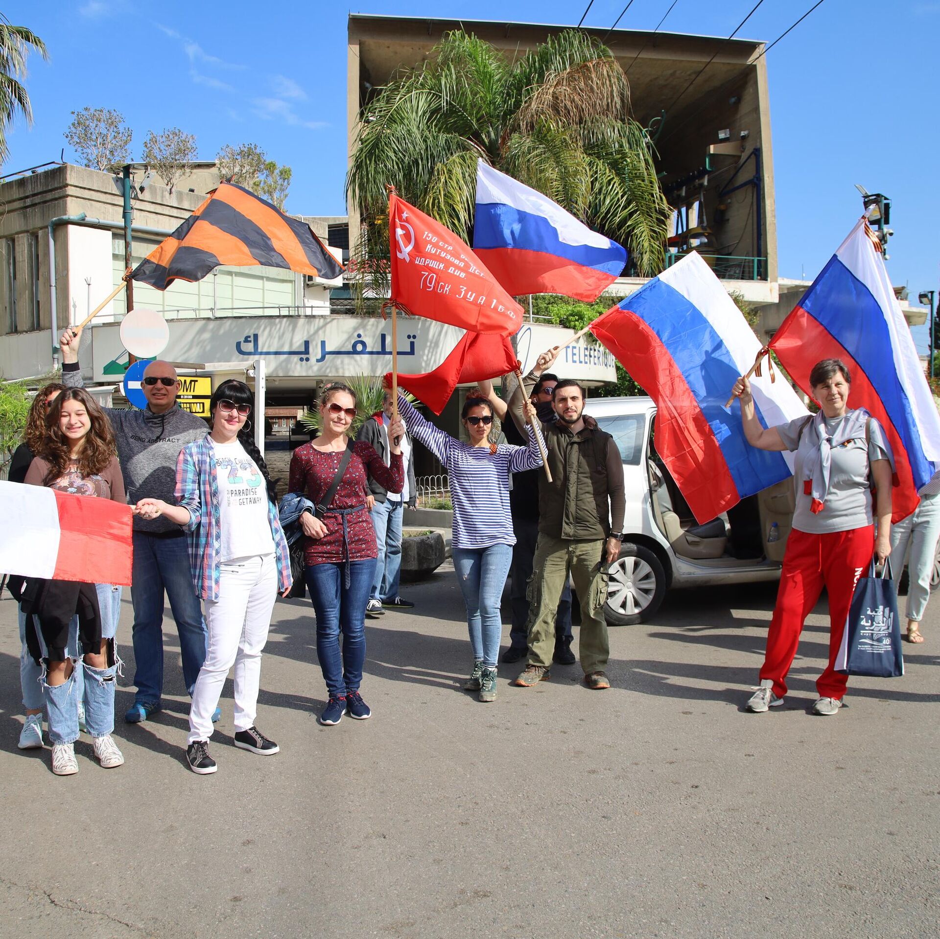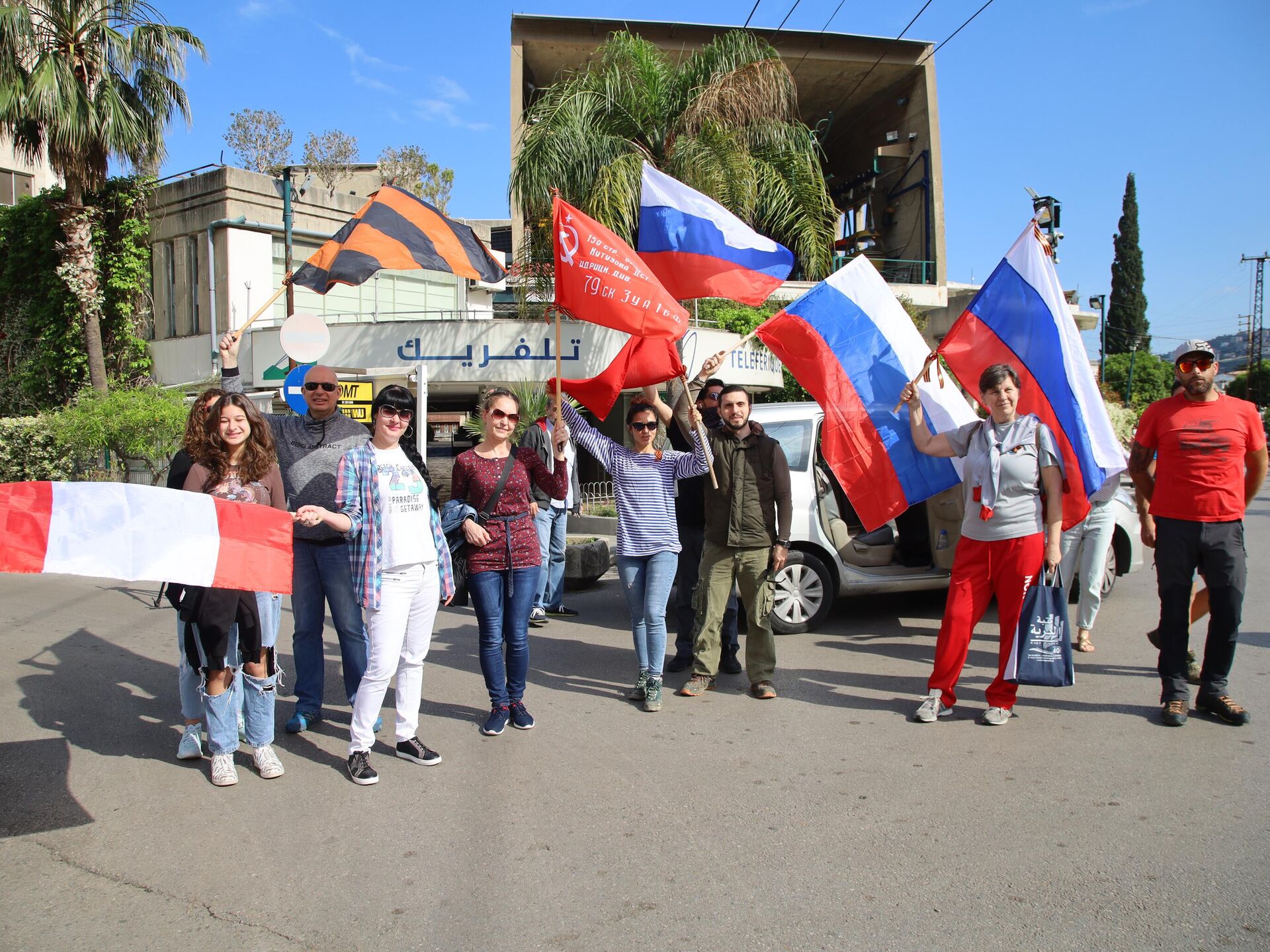 ورفع المشاركون الأعلام الروسية واللبنانية، وعلم الاتحاد السوفياتي، وعلم النصر طوله 7 أمتار.