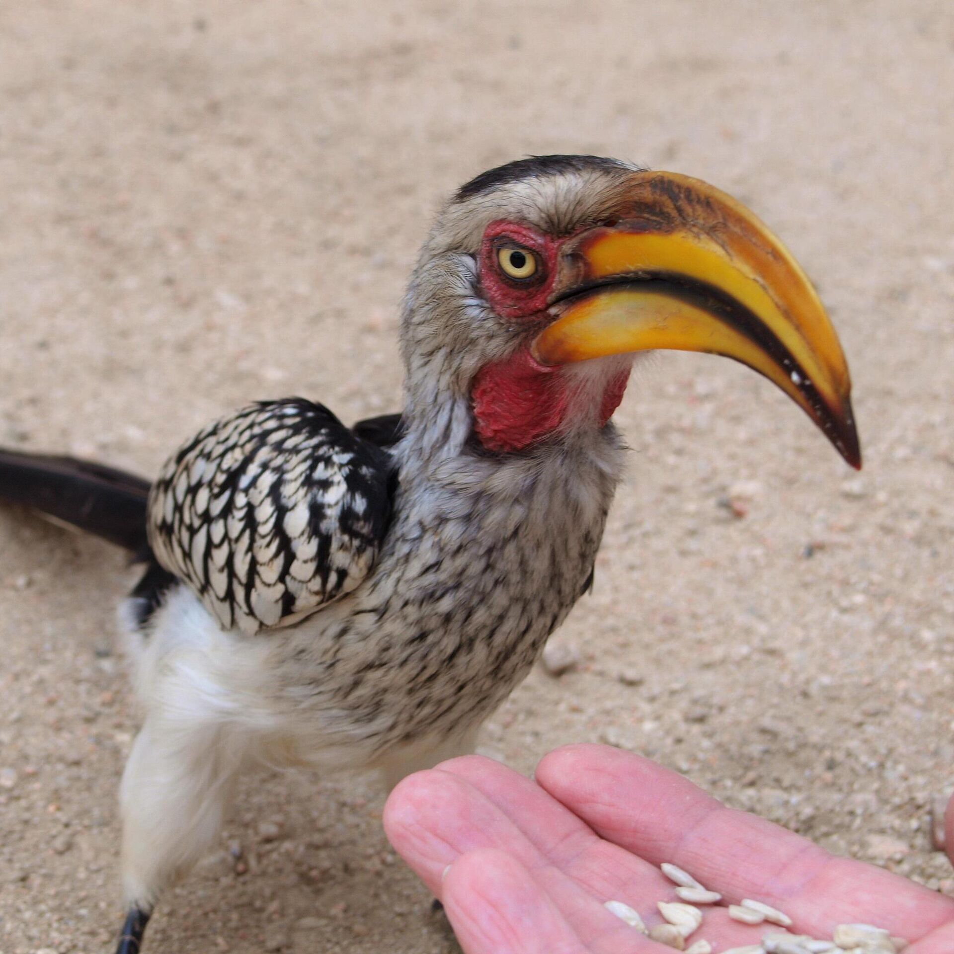 واشتهر هذا الطائر باسم "Zazu" في فيلم "The Lion King" بمنقاره الأصفر الطويل والمنحني إلى الأسفل، حيث تم استخدامه في الكثير من أفلام الكرتون بسبب مظهره المثير وألوانه الرائعة،