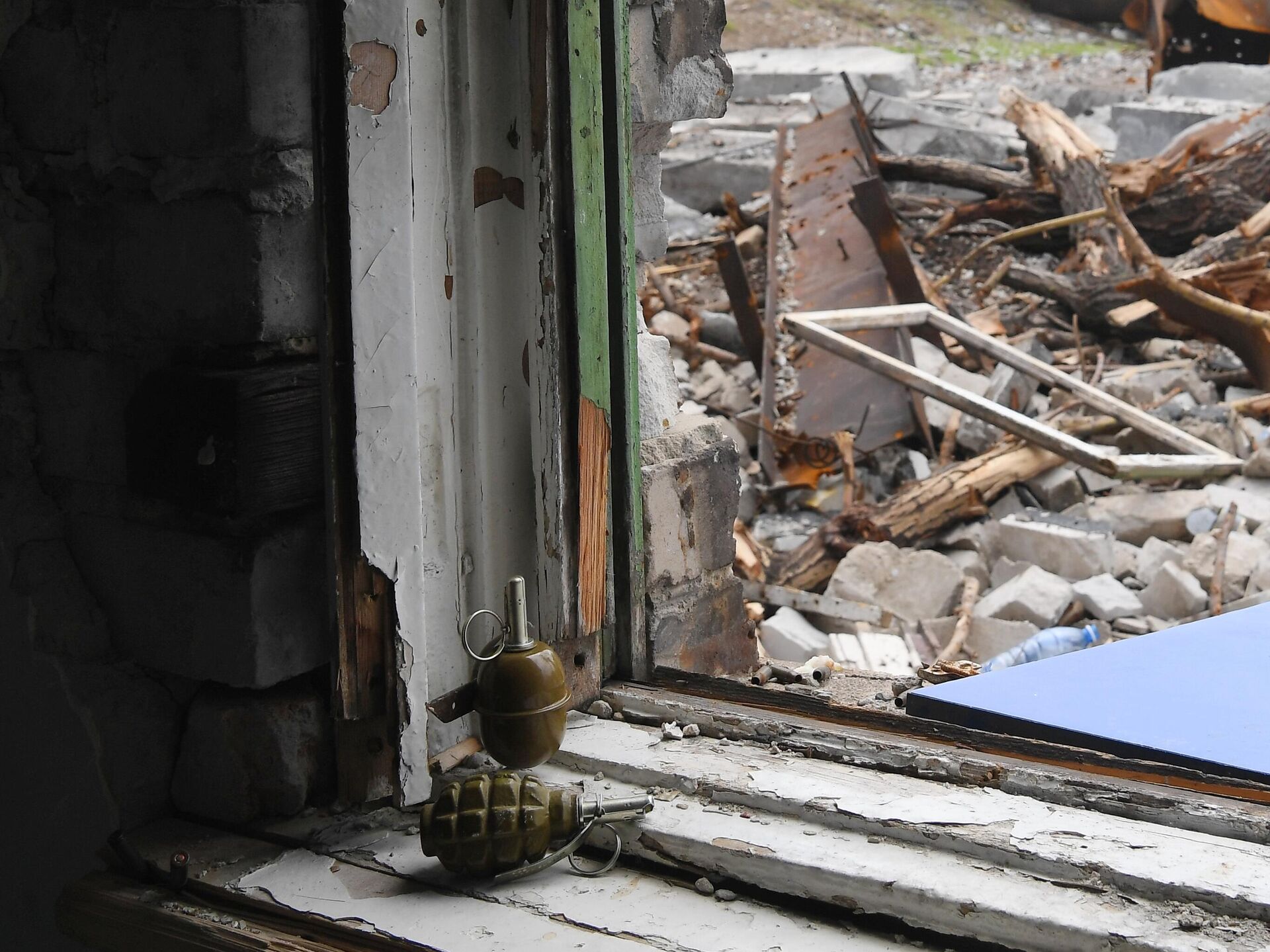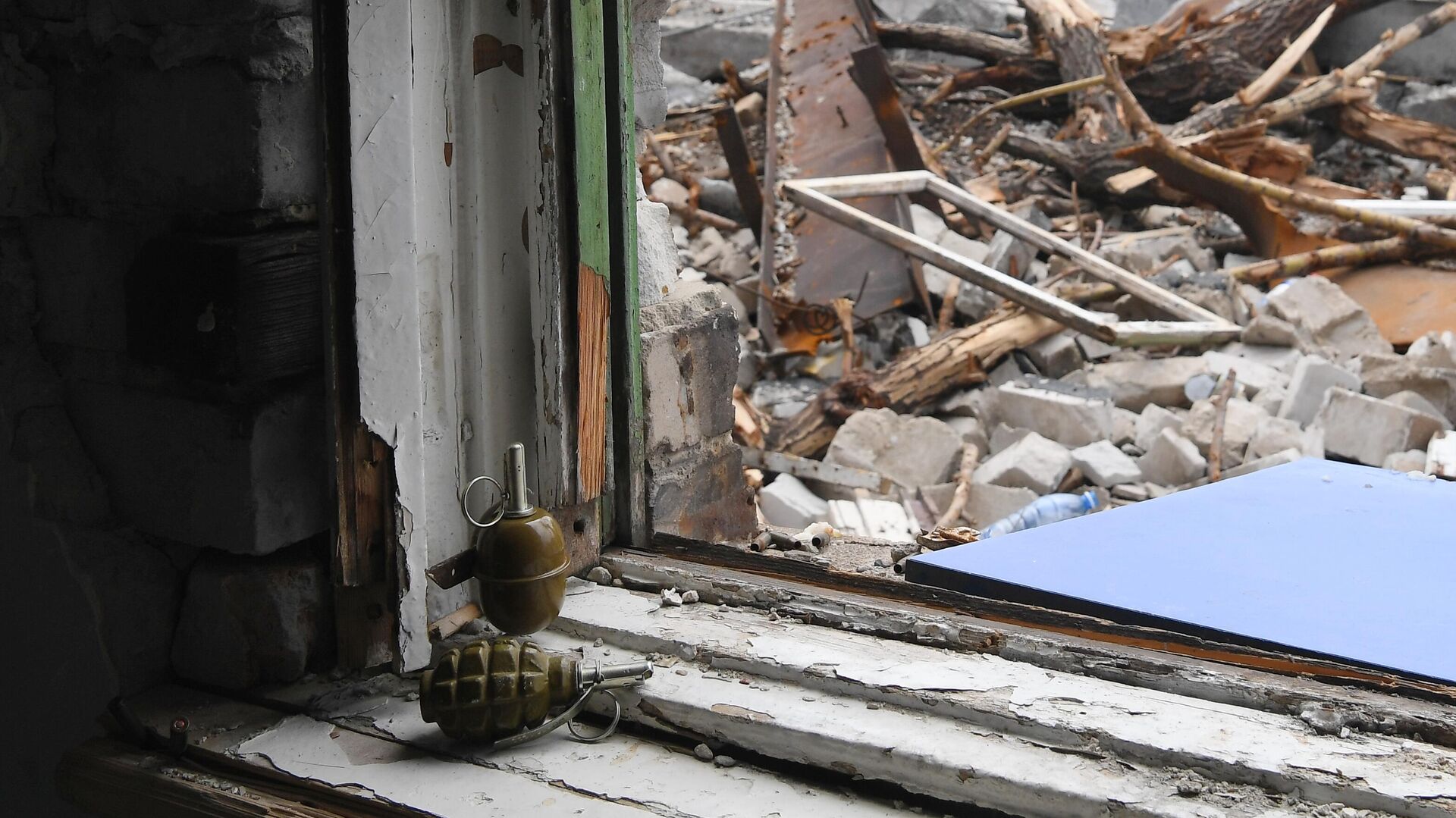 © Sputnik . Alexey Kudenko / الانتقال إلى بنك الصورخبراء المتفجرات من كتيبة فوستوك التابعة لقوات دونيتسك الشعبية يفجرون القذائف والألغام غير المتفجرة في أراضي مصنع آزوفستال في ماريوبول، أوكرانيا 21 مايو 2022