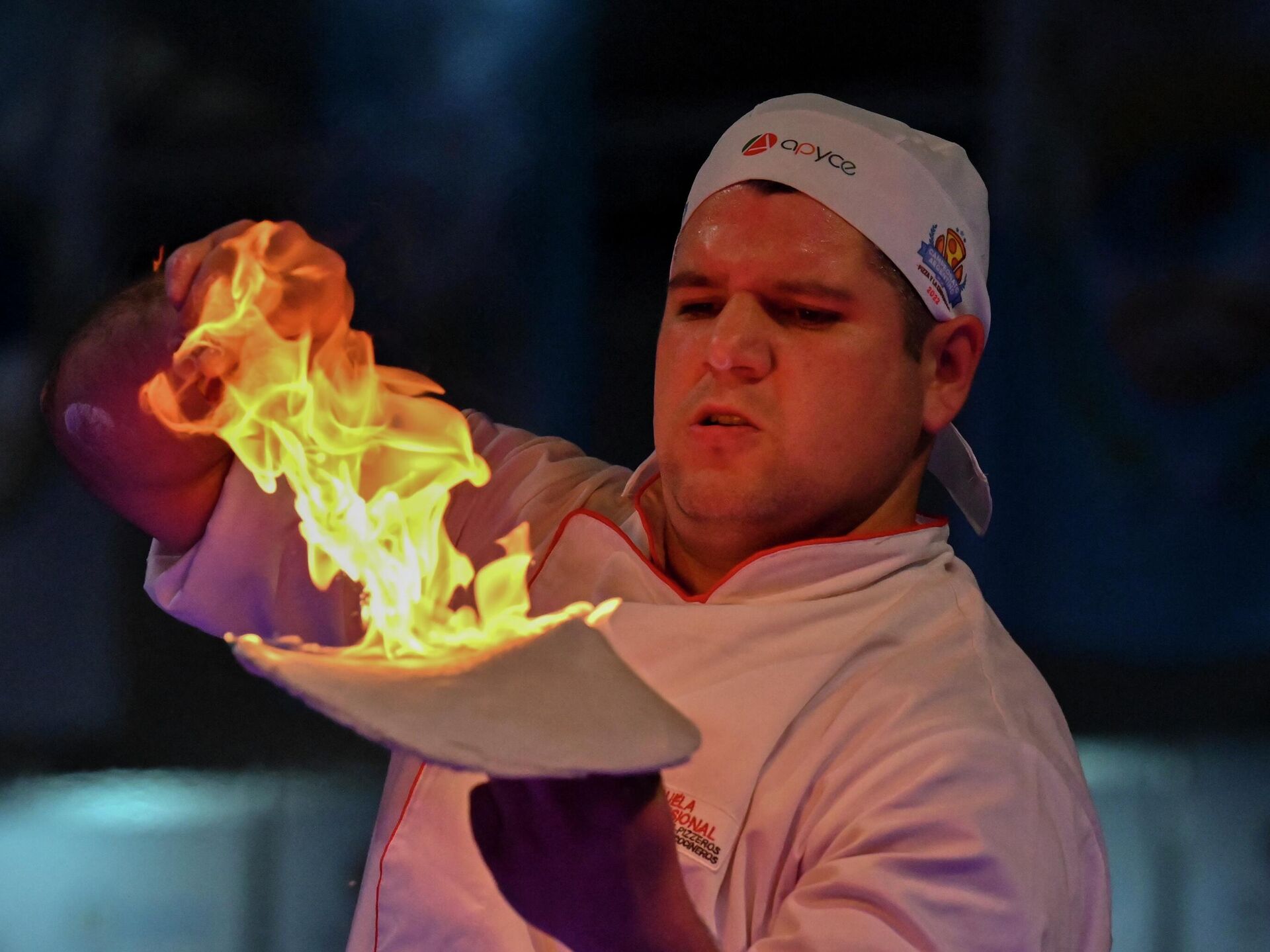 طاهي بيتزا يتنافس خلال "بطولة البيتزا الأرجنتينية" العاشرة في بوينس آيرس، في 7 يونيو 2022.