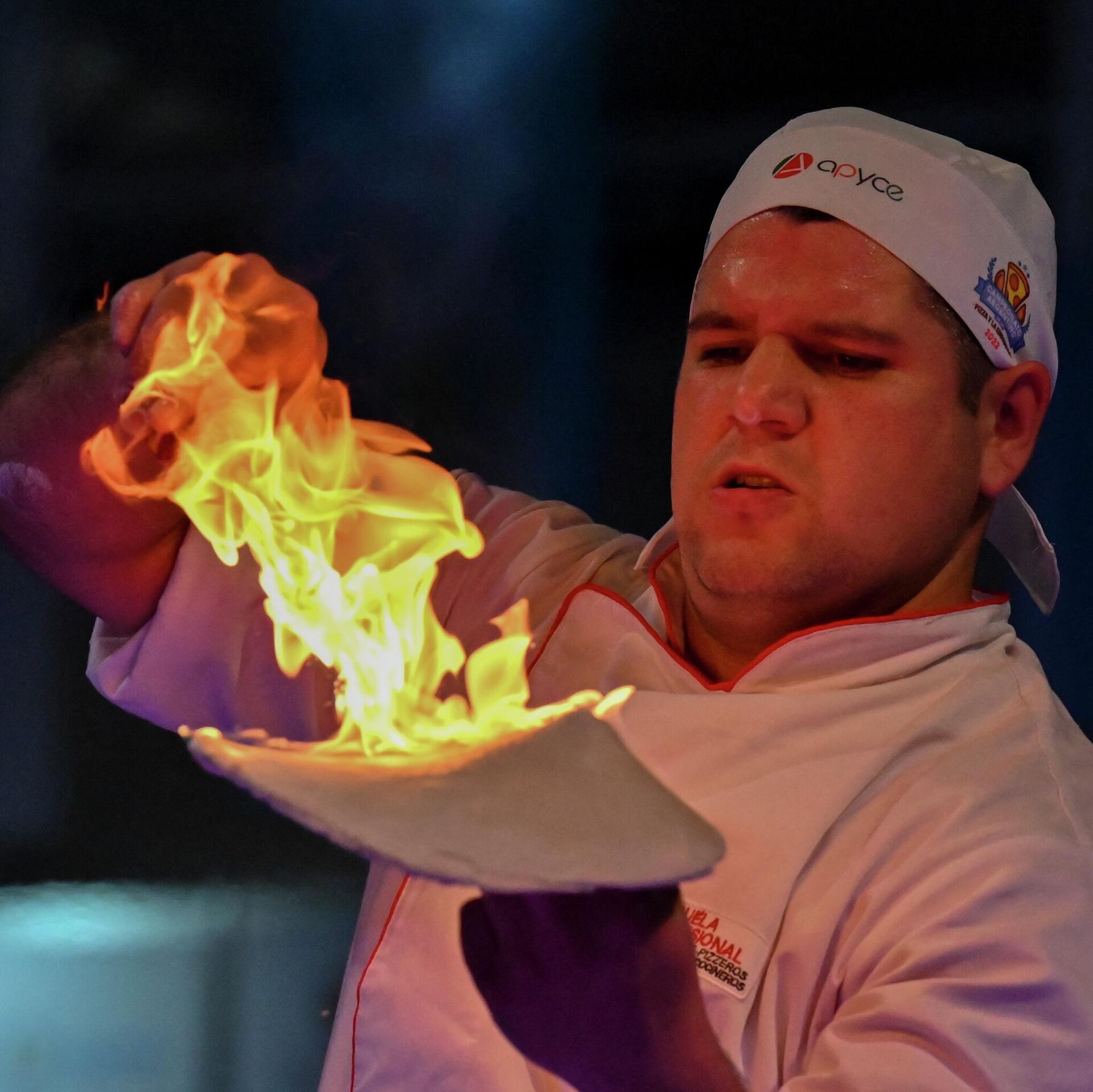 طاهي بيتزا يستعرض مهارته خلال "بطولة البيتزا الأرجنتينية" العاشرة في بوينس آيرس، في 7 يونيو 2022. - سبوتنيك عربي