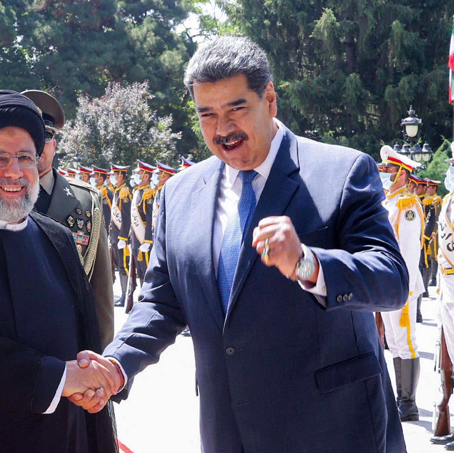 الرئيس الفنزويلي، نيكولاس مادورو، يصافح نظيره الإيراني، إبراهيم رئيسي، في العاصمة الإيرانية طهران، 11 يونيو/ حزيران 2022