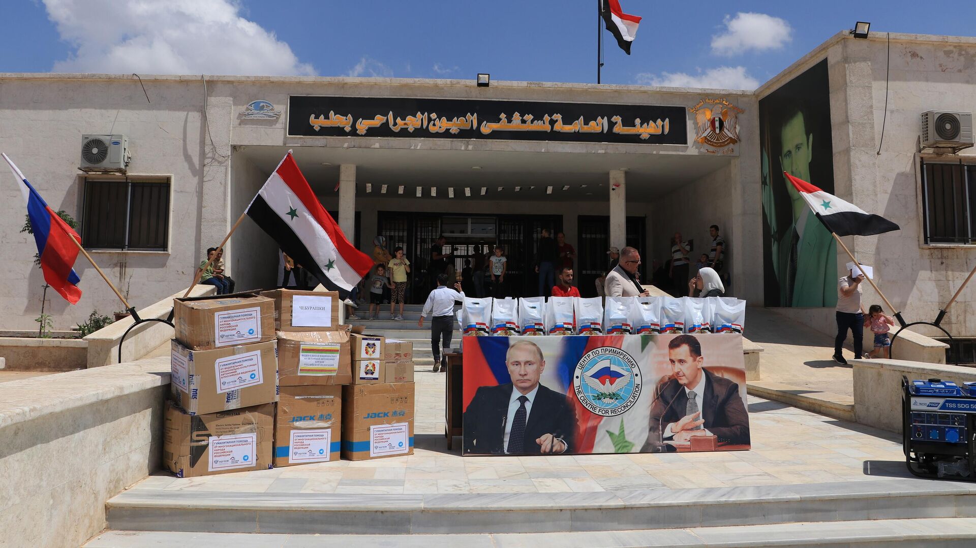 تدشن المؤسسات الروسية المعنية سلسلة من العمليات الإنسانية تشمل تقديم تقنيات خاصة بعمليات إعادة الترميم والبناء إلى جانب حصص غذائية في المستشفى الوطني في منطقة قاضي عسكر بمحافظة حلب، يقدمها مستشار رئيس وكالة شؤون الجنسيات الفيديرالية في مركز قيادة الدفاع الوطني الروسية.