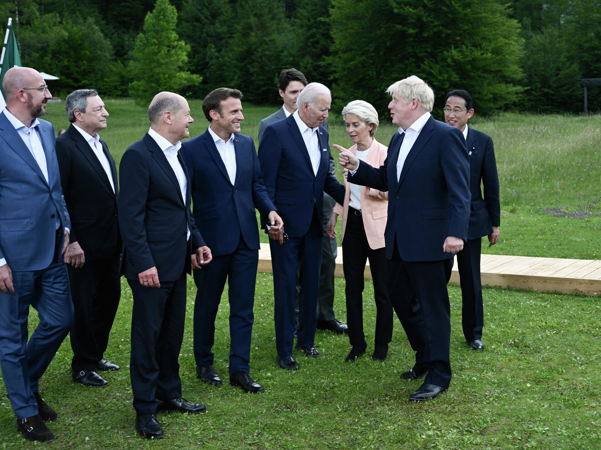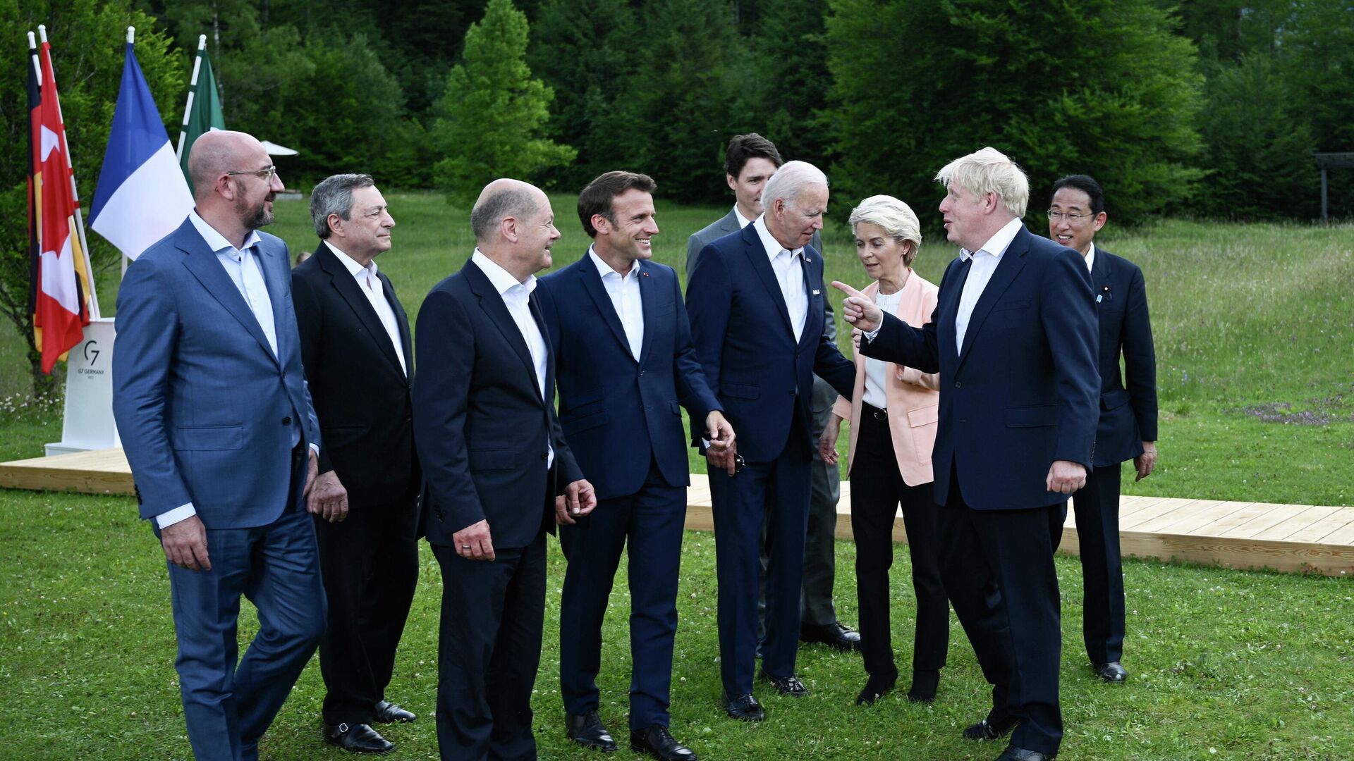 وبحسب صحيفة "20 دقيقة"، فإنه عشية تناول وجبة في أحد أشهر المتاحف في إسبانيا، أجرى القادة الغربيون محادثات غير رسمية في البيناكوتيك. ومع ذلك، انتهز جونسون الفرصة للسير بمفرده في الغرفة والاستمتاع بالفن المعروض.
