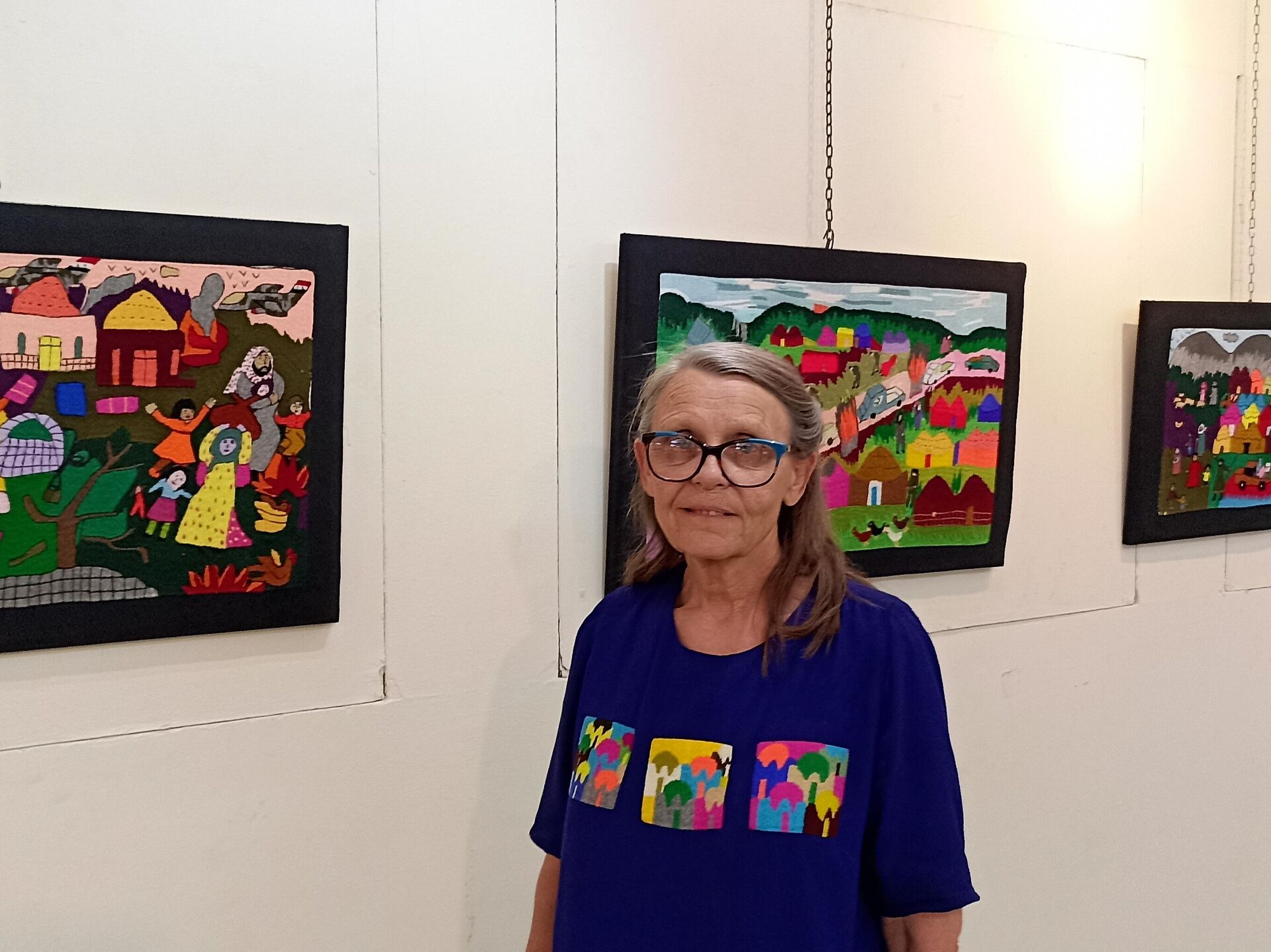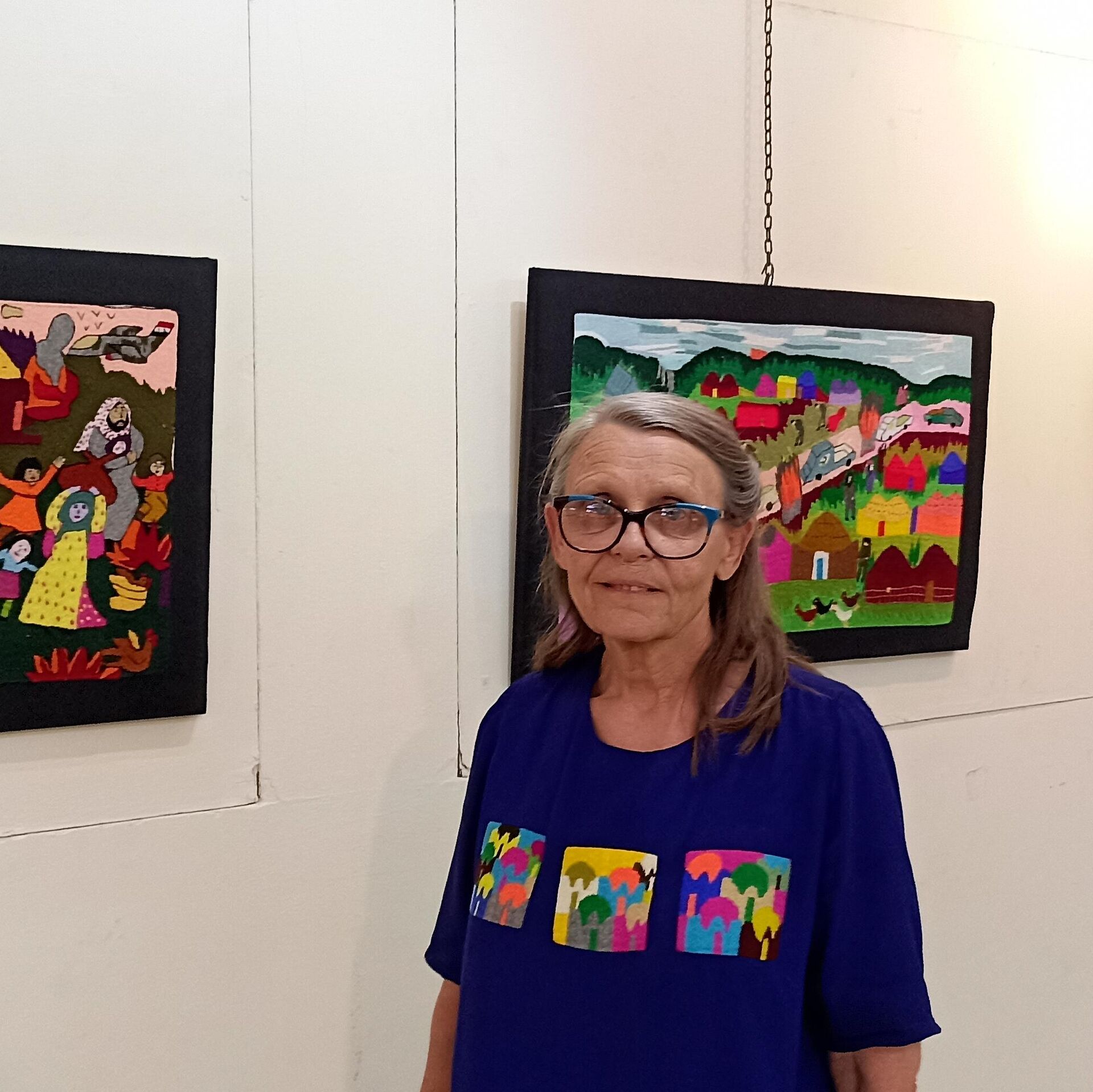تعلّق المواطنة الألمانية، لوحات قديمة لا تزال تحتفظ بها منذ أكثر من عشر سنوات، بعد أن نفذتها نساء سوريات في منطقة (جبل الحص) بريف حلب، ومن ثمّ انقطعت أخبار أغلبهن عنها.