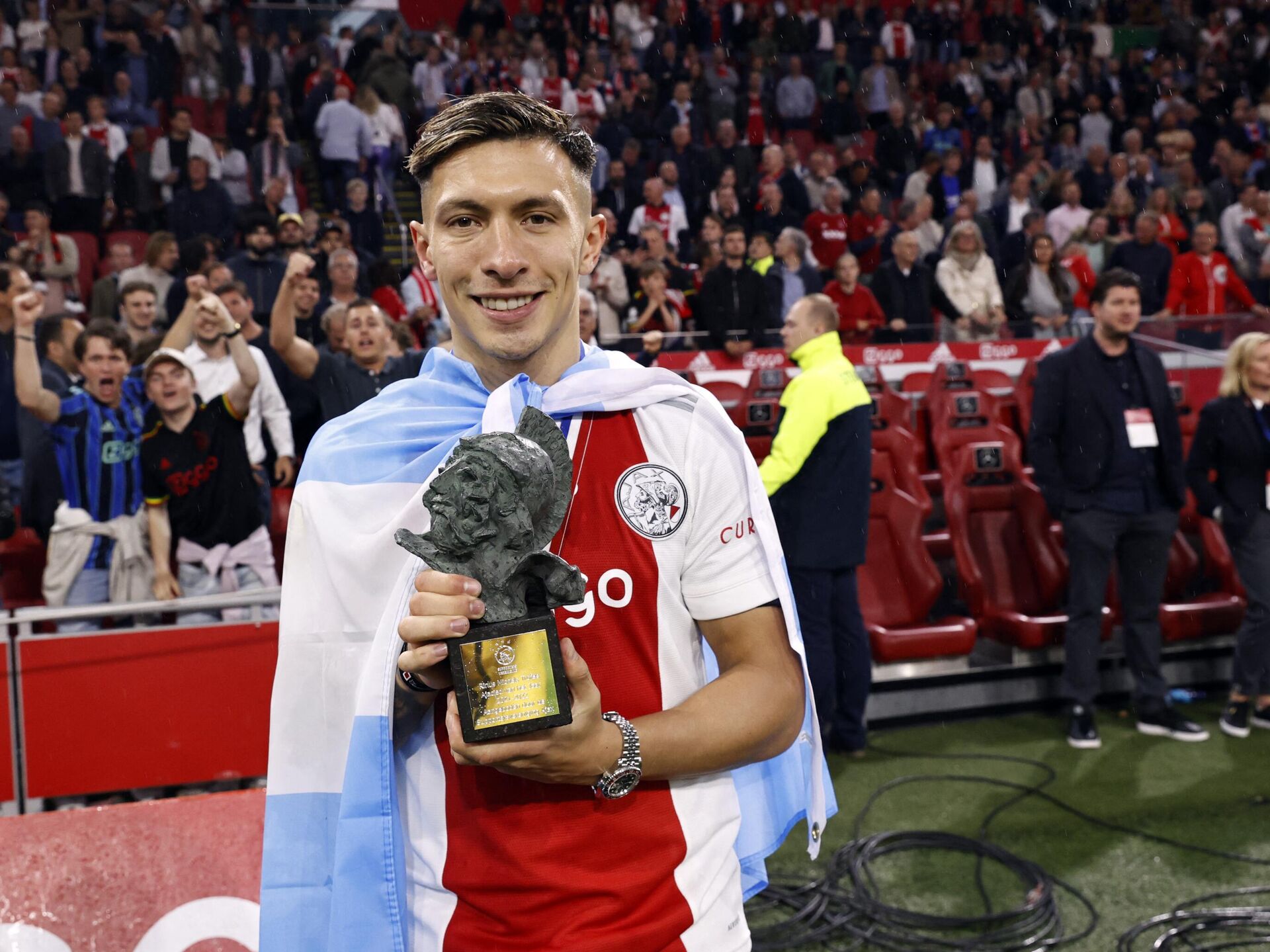 وأكد أياكس أن يونايتد سيدفع 57 مليون يورو (57 مليون دولار- 48 مليون جنيه إسترليني) علاوة على 10 ملايين يورو إضافية في شكل مكافآت متعلقة بالأداء، بحسب وكالة "فرانس برس".وقال يونايتد في بيان: "يسعد مانشستر يونايتد أن يعلن أن النادي توصل إلى اتفاق مع أياكس بشأن انتقال المدافع الأرجنتيني الدولي ليساندرو مارتينيز".وأشار إلى أن اللاعب يخضع للفحص الطبي، ويجري إنهاء شروطه الخاصة ومتطلبات تأشيرة دخول المملكة المتحدة. من المقرر أن يجتمع مارتينيز مع مدربه السابق إريك تن هاج في أولد ترافورد.أضاف تين هاج بالفعل لاعب الوسط كريستيان إريكسن والظهير الأيسر تيريل مالاسيا إلى الفريق الذي أنهى منافسات الدوري الإنجليزي في المركز السادس العام الماضي.انتقل مارتينيز إلى أياكس من ديفينسا إي جوستيسيا في وطنه، وفاز بلقبين في الدوري الهولندي، وساعد بطل هولندا في بلوغ دور الستة عشر من دوري أبطال أوروبا الموسم الماضي.