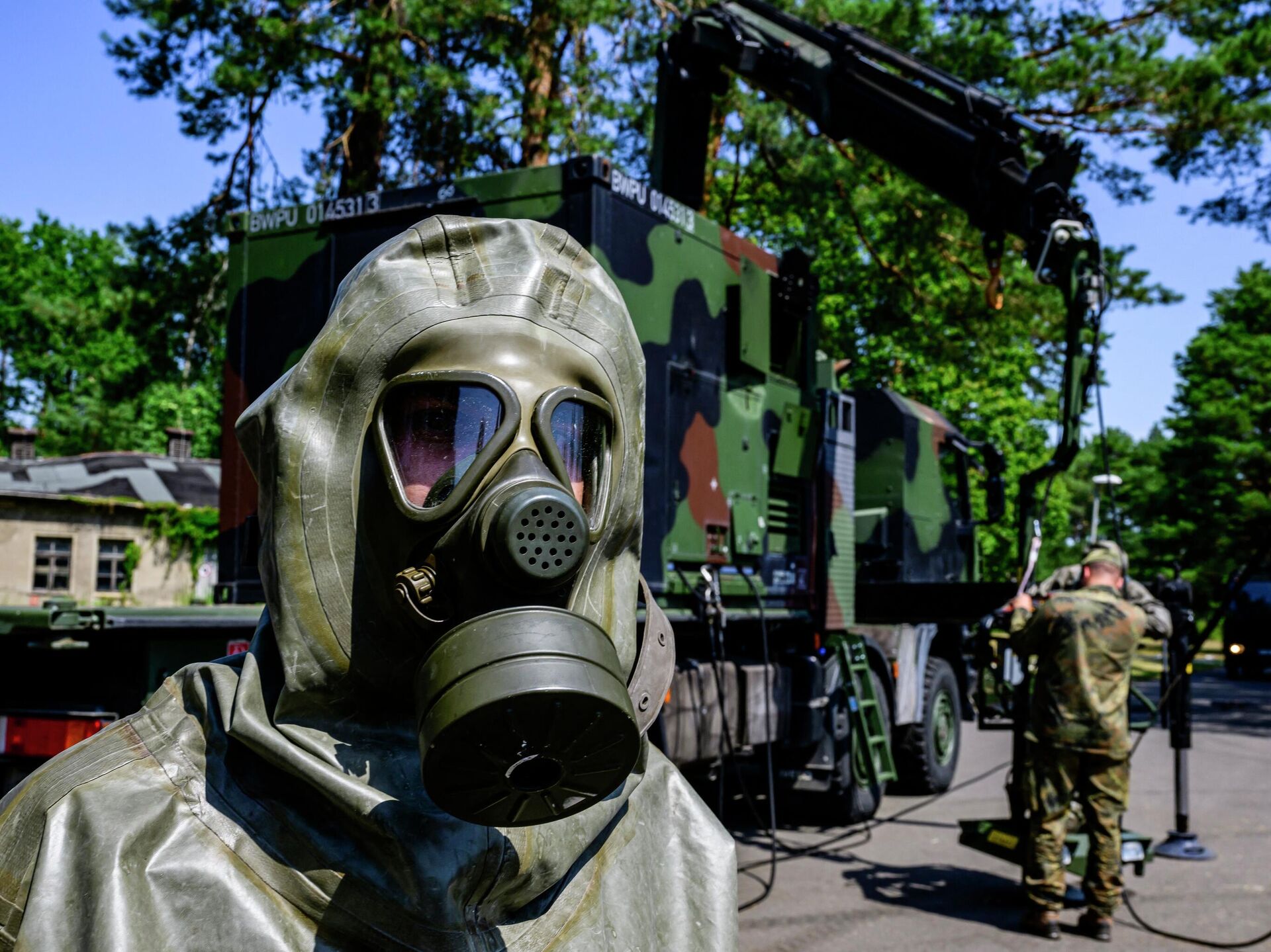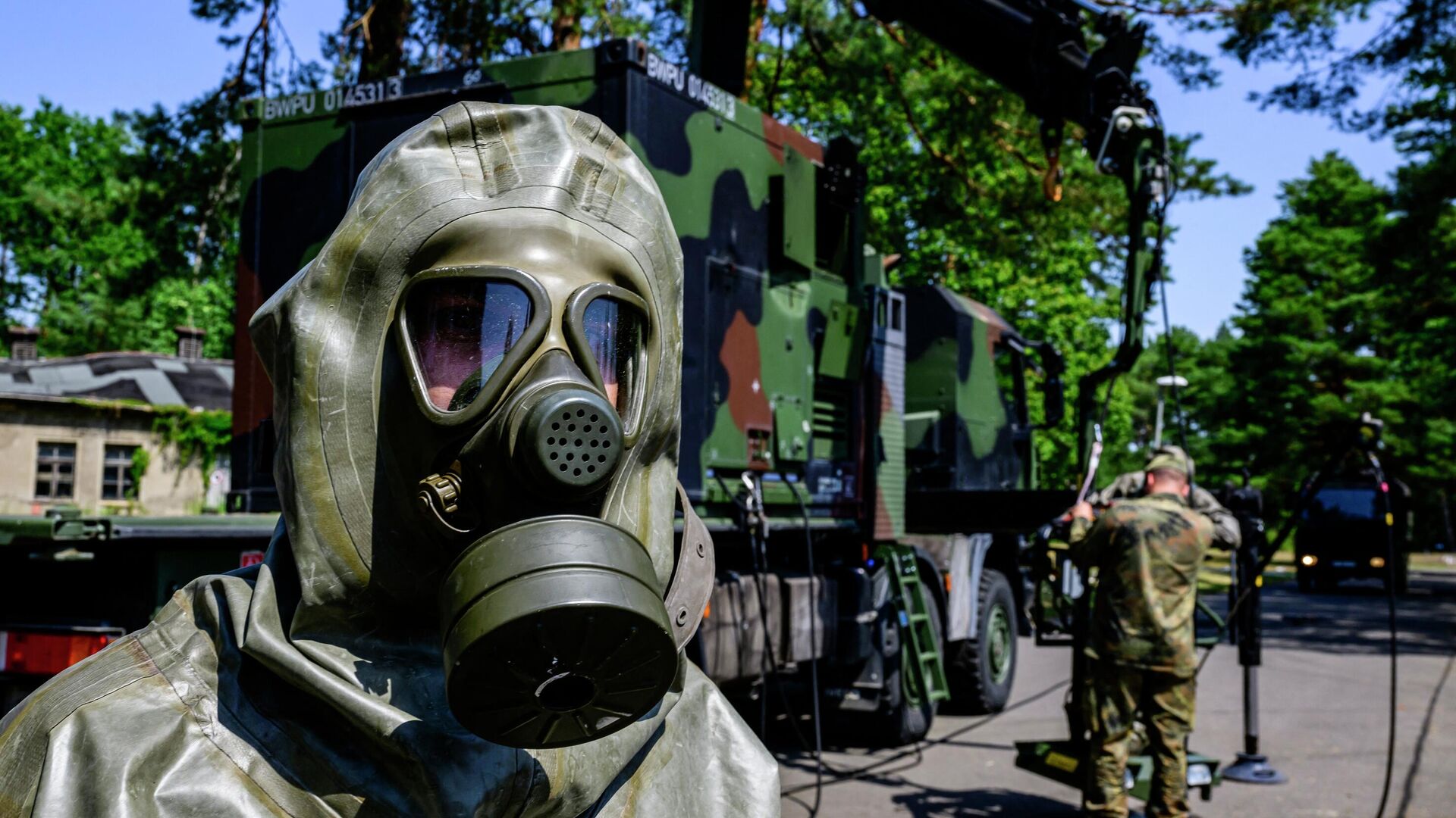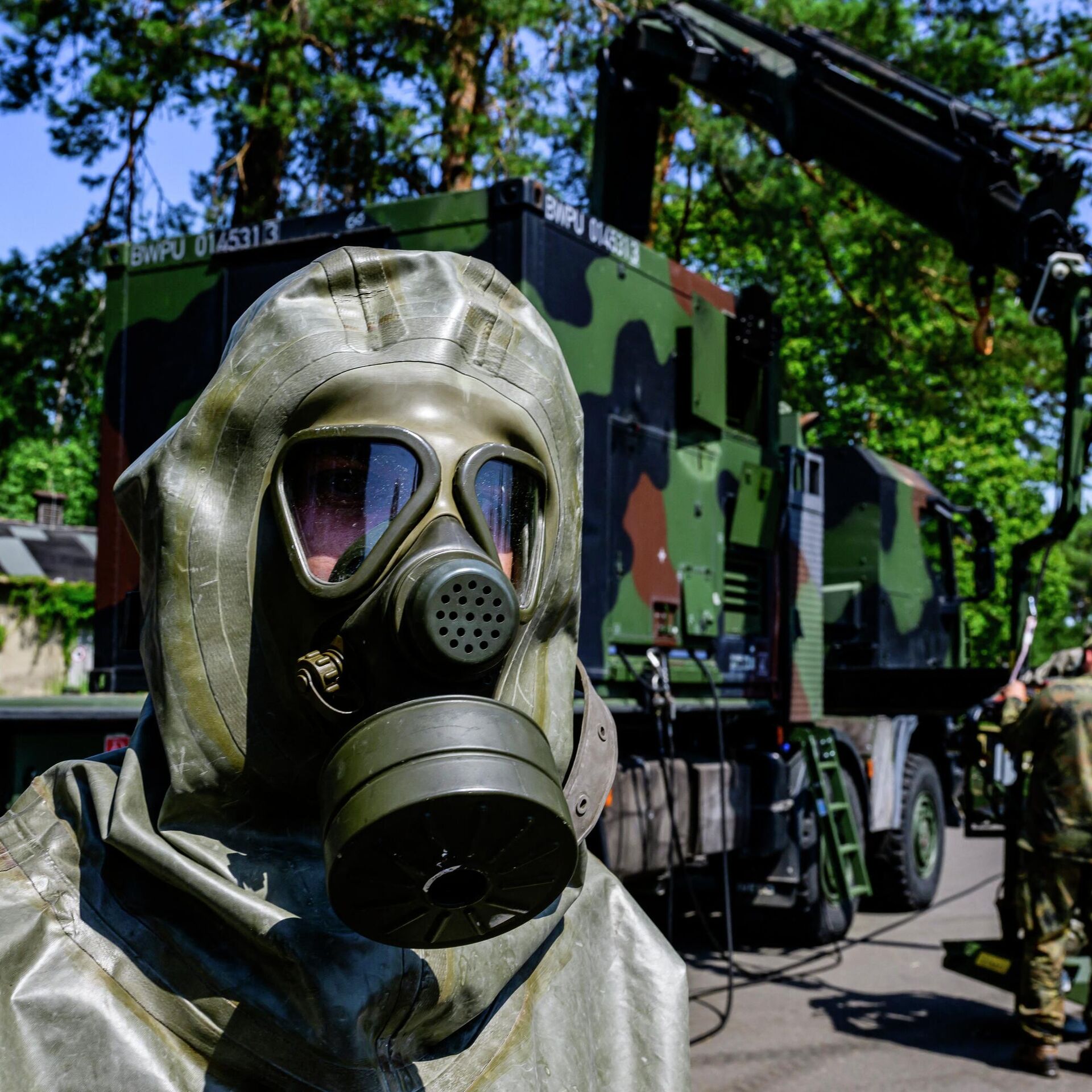 منذ 6 أبريل/ نيسان، تم تكليف رسميًا فوج الدفاع "ABC-Abwehrregiment 1" التابع للقوات المسلحة الألمانية، لدعم جميع الوحدات التنظيمية العسكرية في الدفاع ضد الخطر النووي والبيولوجي والكيميائي والمواد الخطرة الصناعية وإزالة التلوث. ترون في ألبوم "ٍبوتنيك" تدريبات ألمانية لمواجهة عواقب استخدام الأسلحة البيولوجية والنووية.