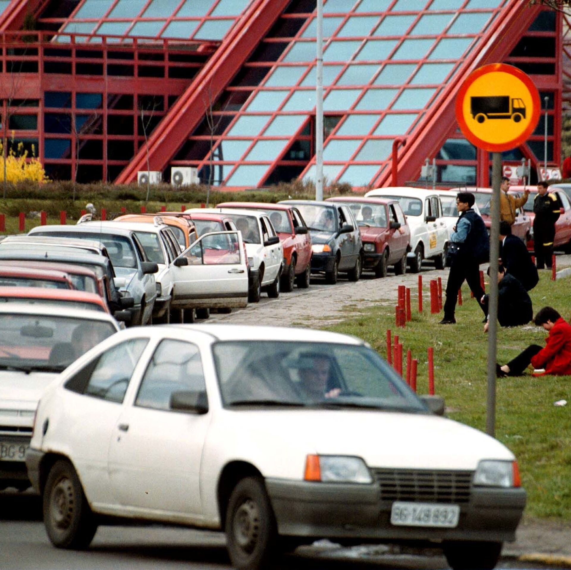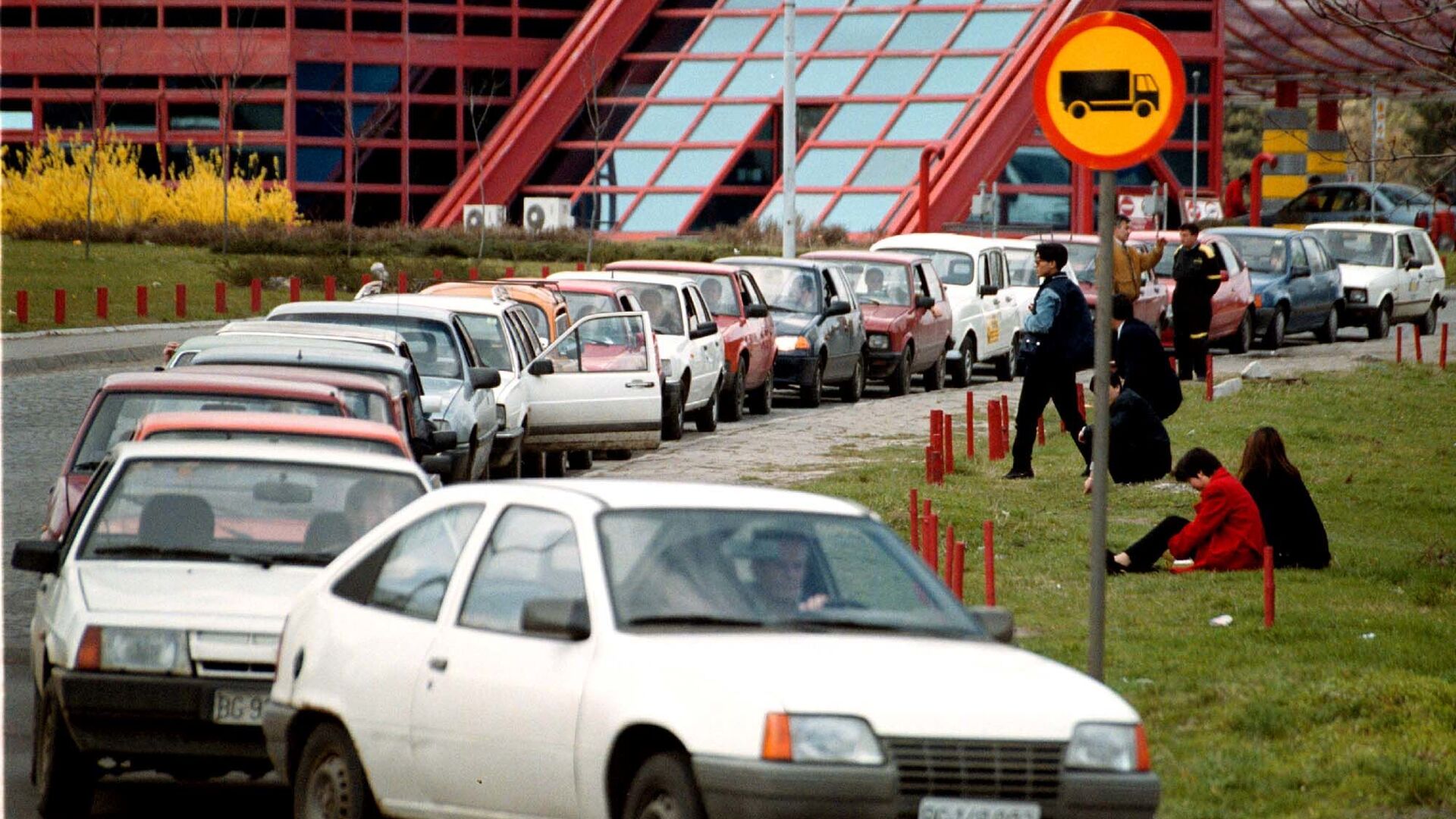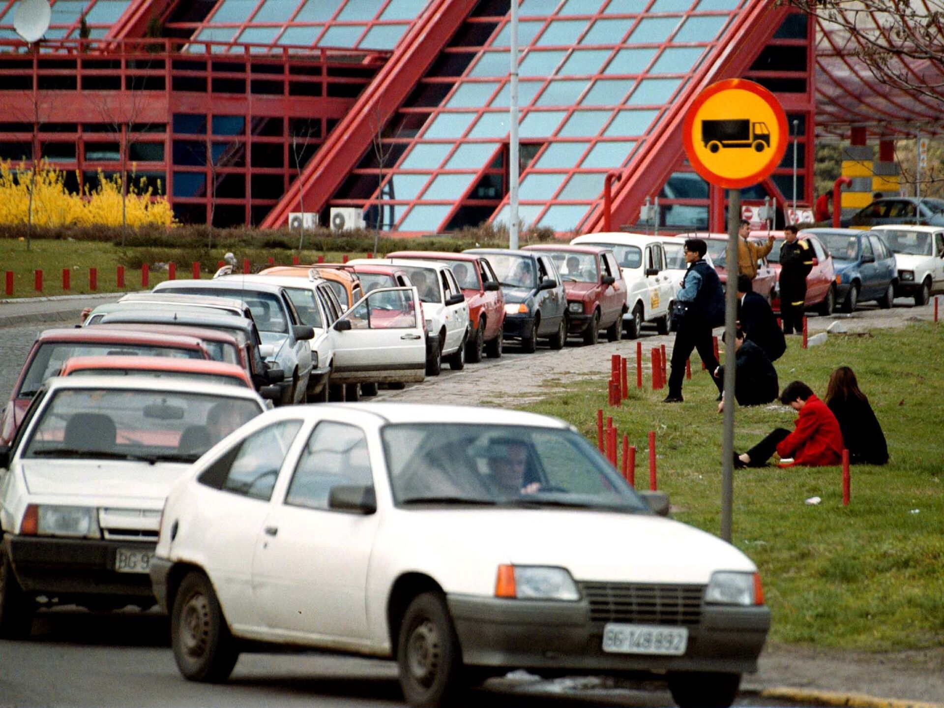 © AP Photo / Andrei Isakovic السائقون يستريحون بجوار سياراتهم المتوقفة في طوابير لا نهاية لها أمام محطات الوقود في بلغراد يوم 24 مارس 1999