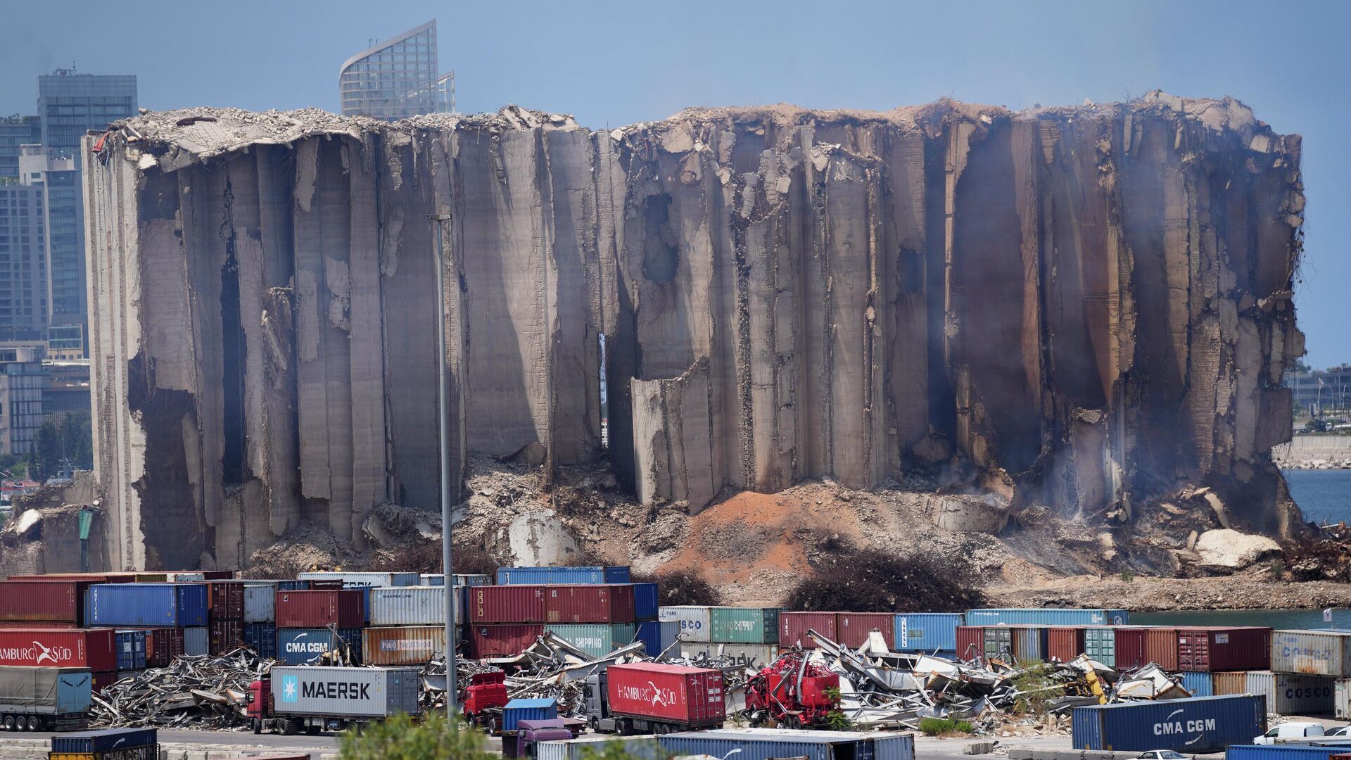 أكد شاهد عيان لوكالة "سبوتنيك" أن صوامع الحبوب الشمالية في العاصمة اللبنانية بيروت قد انهارت.