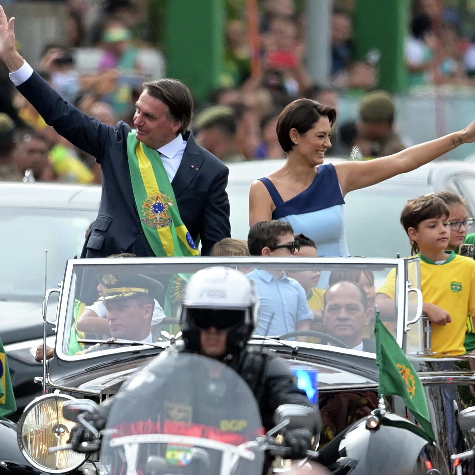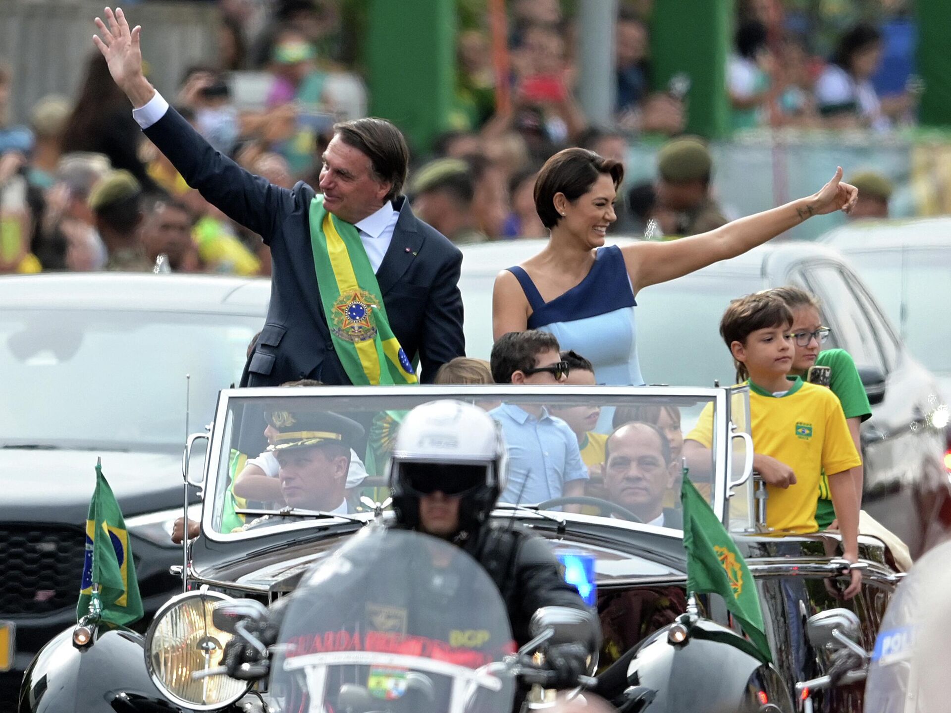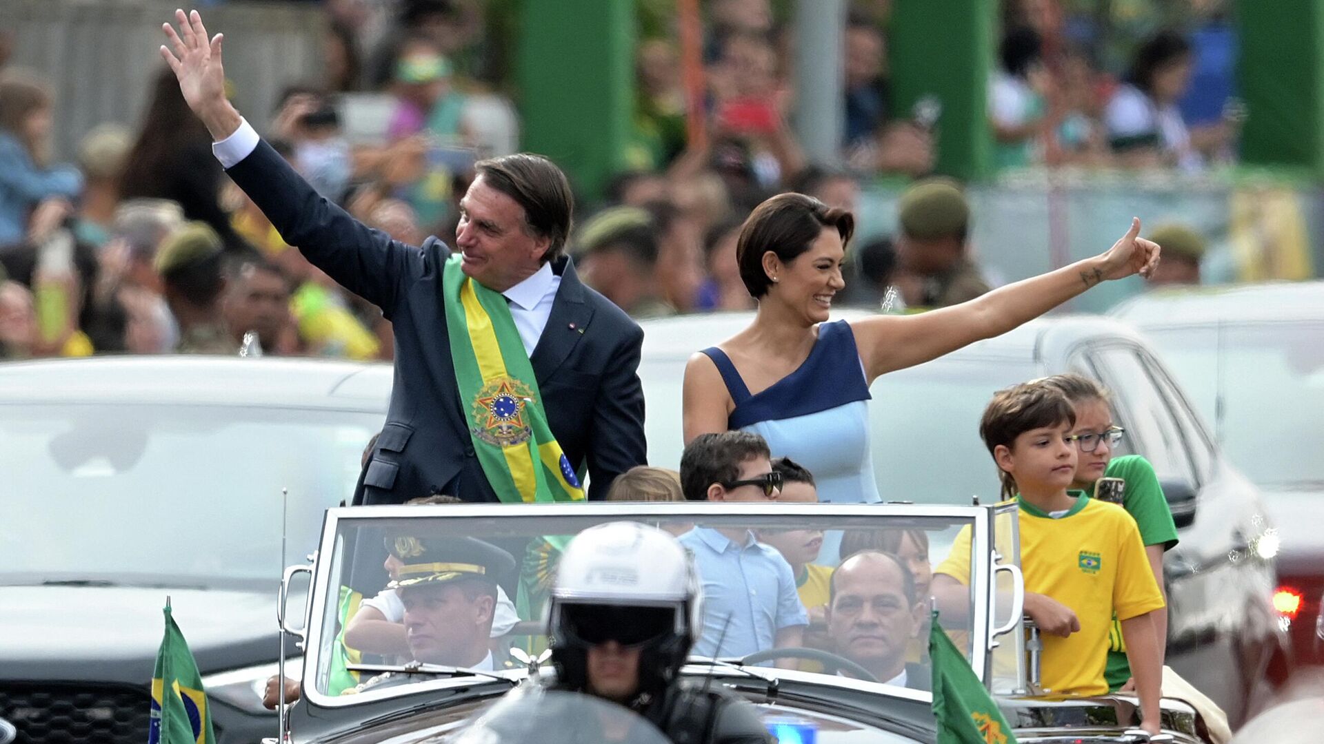 © AFP 2023 / Evaristo Saموكب الرئيس البرازيلي جاير بولسونارو (يسار) والسيدة الأولى ميشيل بولسونارو خلال عرض عسكري للاحتفال بالذكرى المئوية الثانية لاستقلال البرازيل في البرازيل، في 7 سبتمبر 2022.