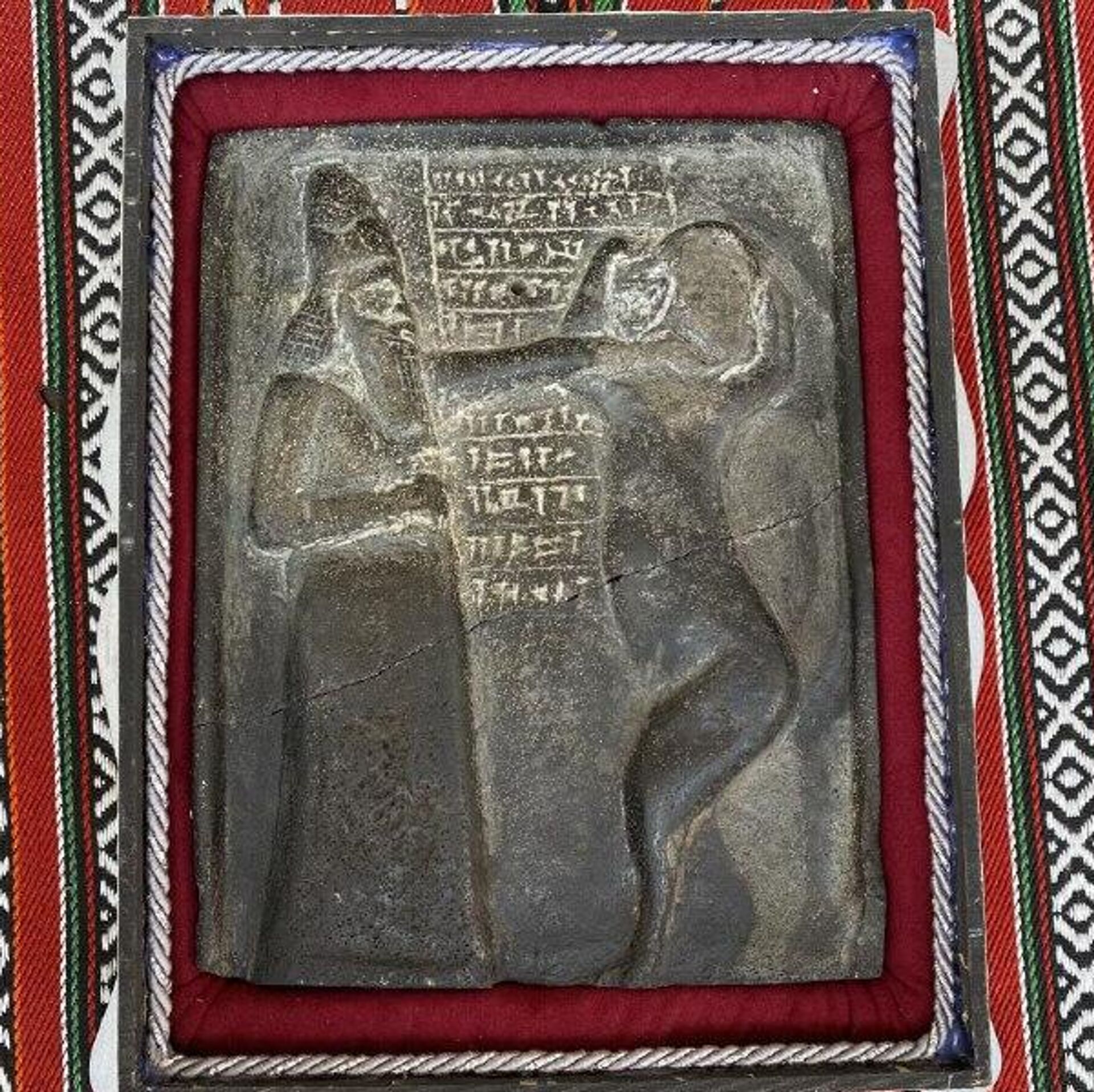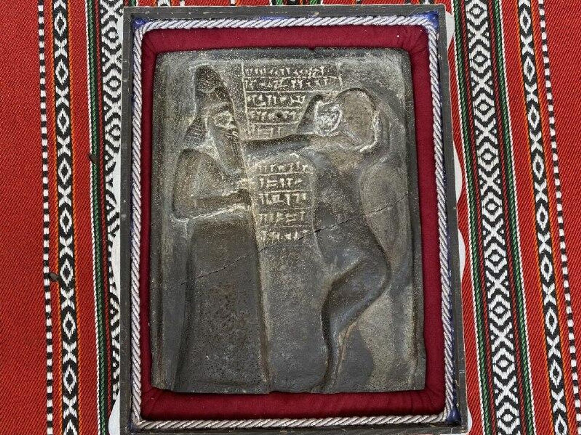 وقال قائد الشرطة العسكرية الروسية في سوريا، الجنرال ديمتري شيربانوف، أثناء تسليم القطعة الأثرية: "خلال وجودنا على الأرض السورية الخيرة لمسنا ماذا فعل الإرهاب بها من اعتداء وتطاول على آثارها ومقدساتها"، مؤكداً أنهم عملوا على دثر معالمها التاريخية والإسلامية والمسيحية وكل شيء طالته أيديهم.مدير عام الآثار والمتاحف نظير عوض أشار إلى أن استلام هذه القطعة الأثرية من الجانب الروسي، والتي كانت معدة للتهريب خارج سورية يعد حدثاً استثنائياً لافتاً إلى أنها ستخضع للمزيد من الدراسة والتحليل لتبيان معلومات أدق عنها.في شهر أبريل/نيسان 2022، عثر عسكريون روس، خلال دورية في محافظة درعا السورية، على مخبأ أسلحة مقاتلين، حيث كان هناك لوح بازلتي من العصر الآشوري (القرن السابع قبل الميلاد).في الوقت الحالي، يتم عرض قطع أثرية مماثلة في متحف لندن الوطني وهو أحد مواقع التراث العالمي لليونسكو.