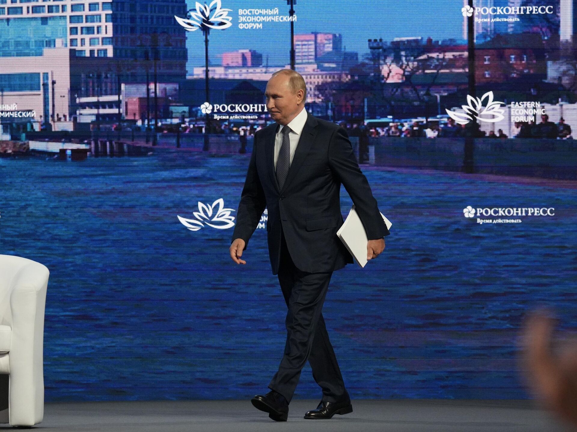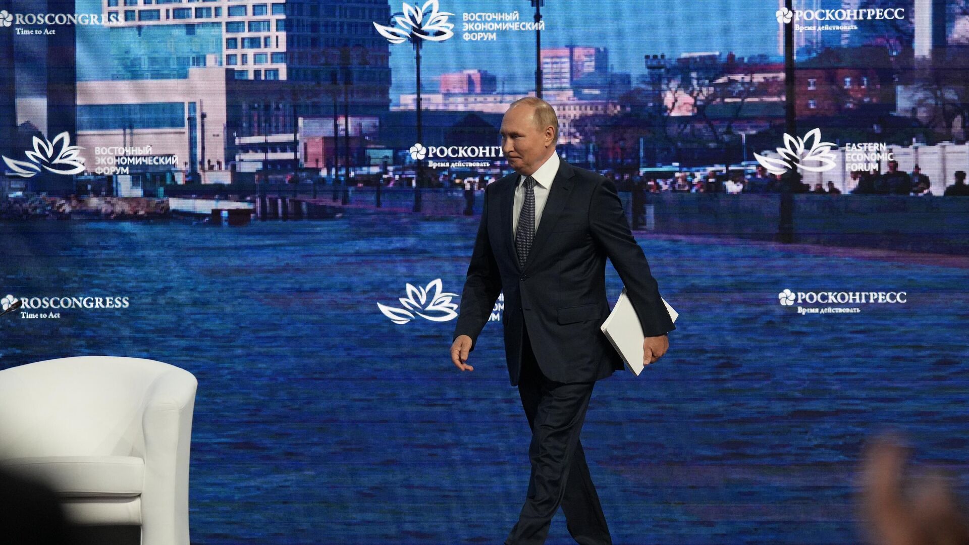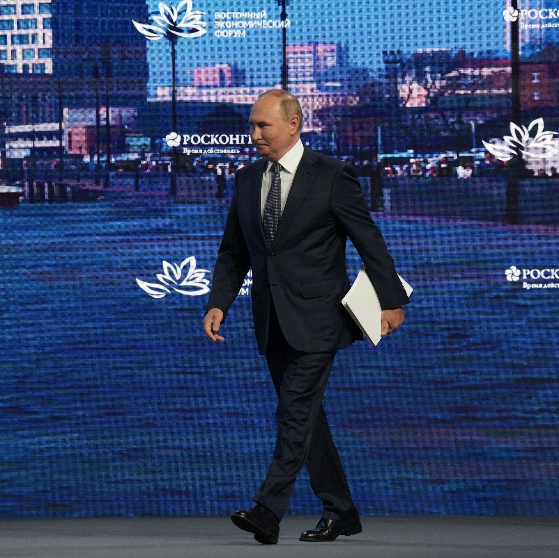 © Sputnik . Alexey Danichev / الانتقال إلى بنك الصورالرئيس الروسي فلاديمير بوتين خلال الجلسة العامة للمنتدى الاقتصادي الشرقي 2022