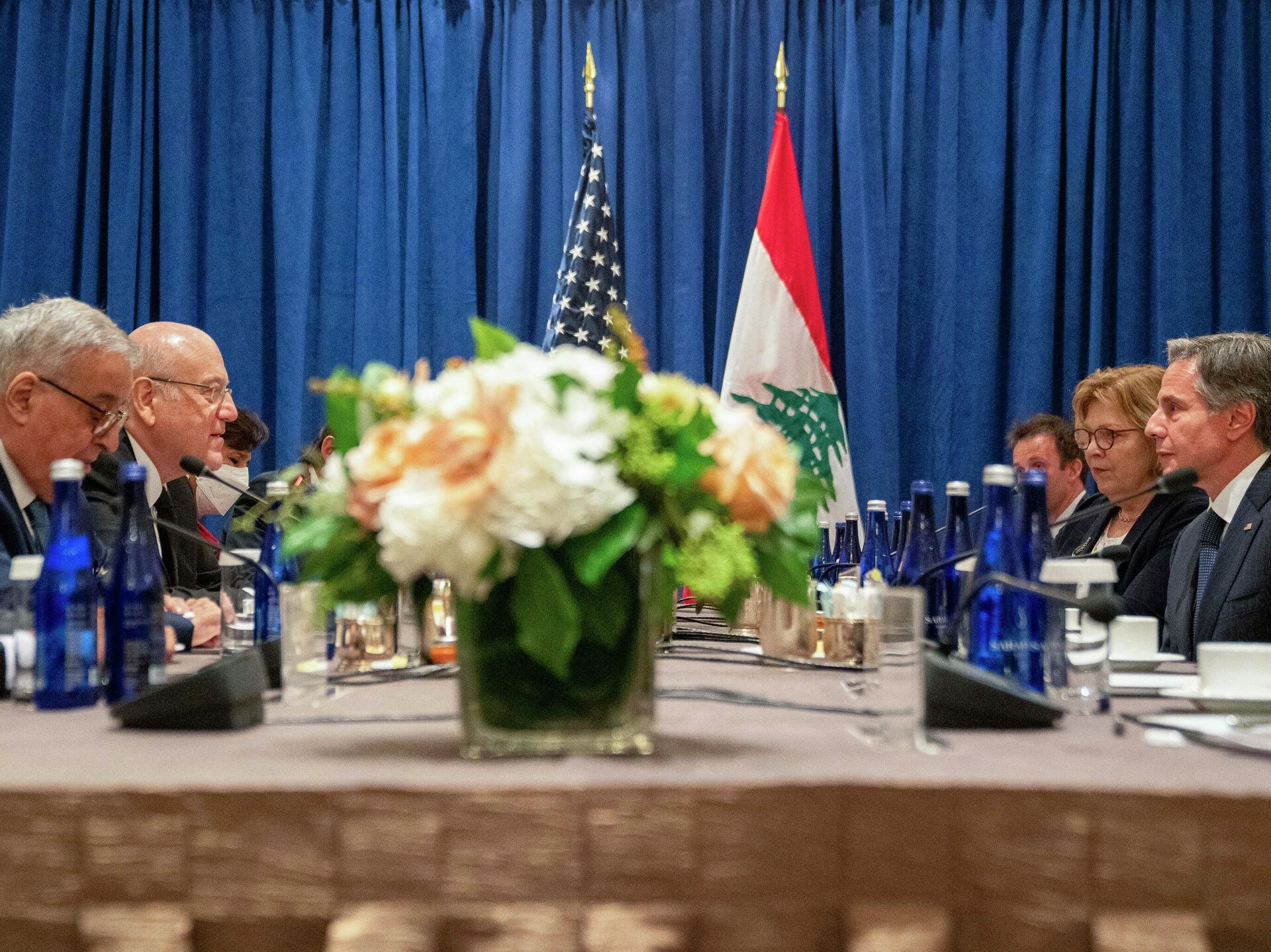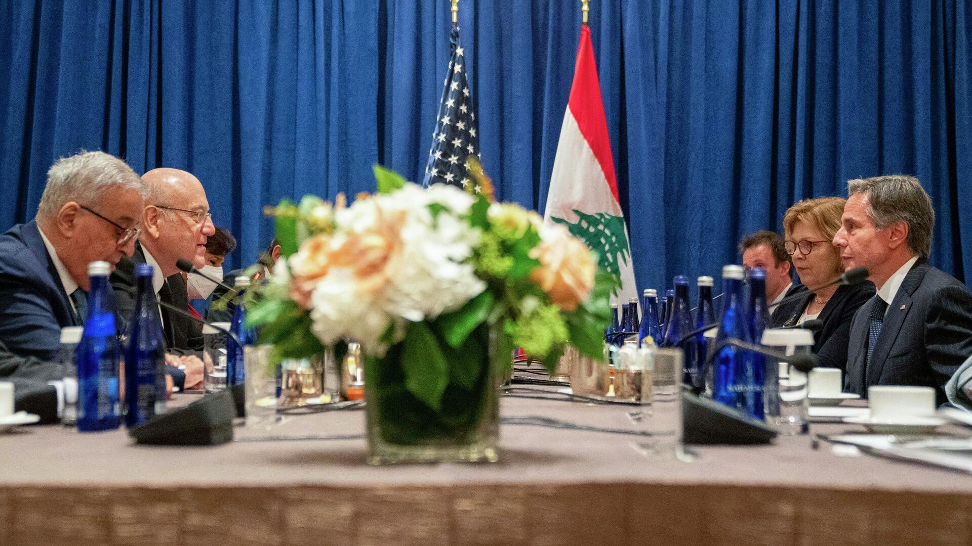 وسائل إعلام لبنانية، قال ميقاتي، خلال لقائه وزير الخارجية الأمريكي أنتوني بلينكين، بحضور الوسيط الأمريكي آموس هوكشتاين، في نيويورك، إنه تم "عرض مجمل الملفات، وجرى التشديد بشكل خاص على ضرورة إجراء الانتخابات الرئاسية، مؤكدا أن "ملف ترسيم الحدود البحرية مع إسرائيل يشهد تقدما كبيرا".