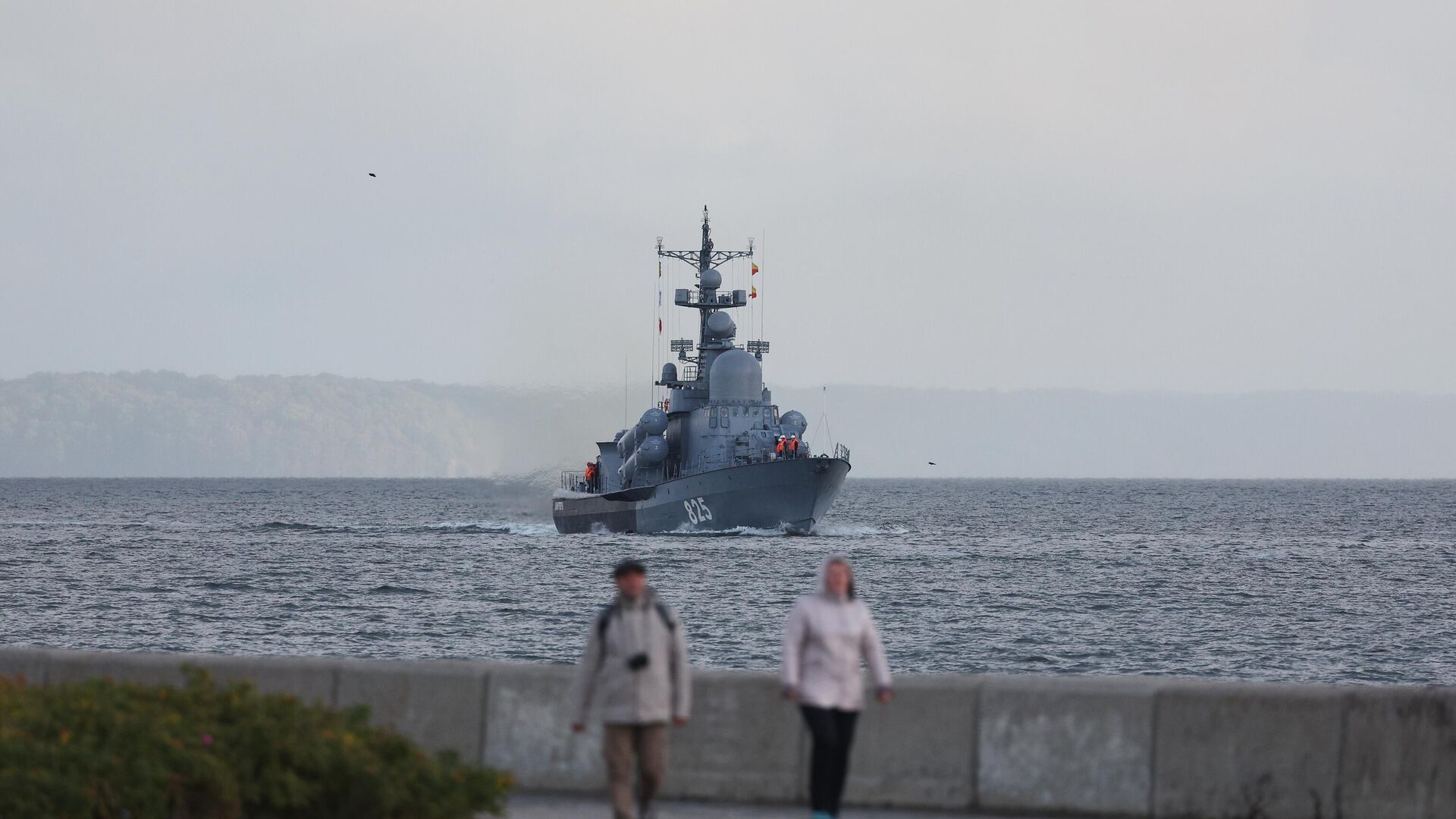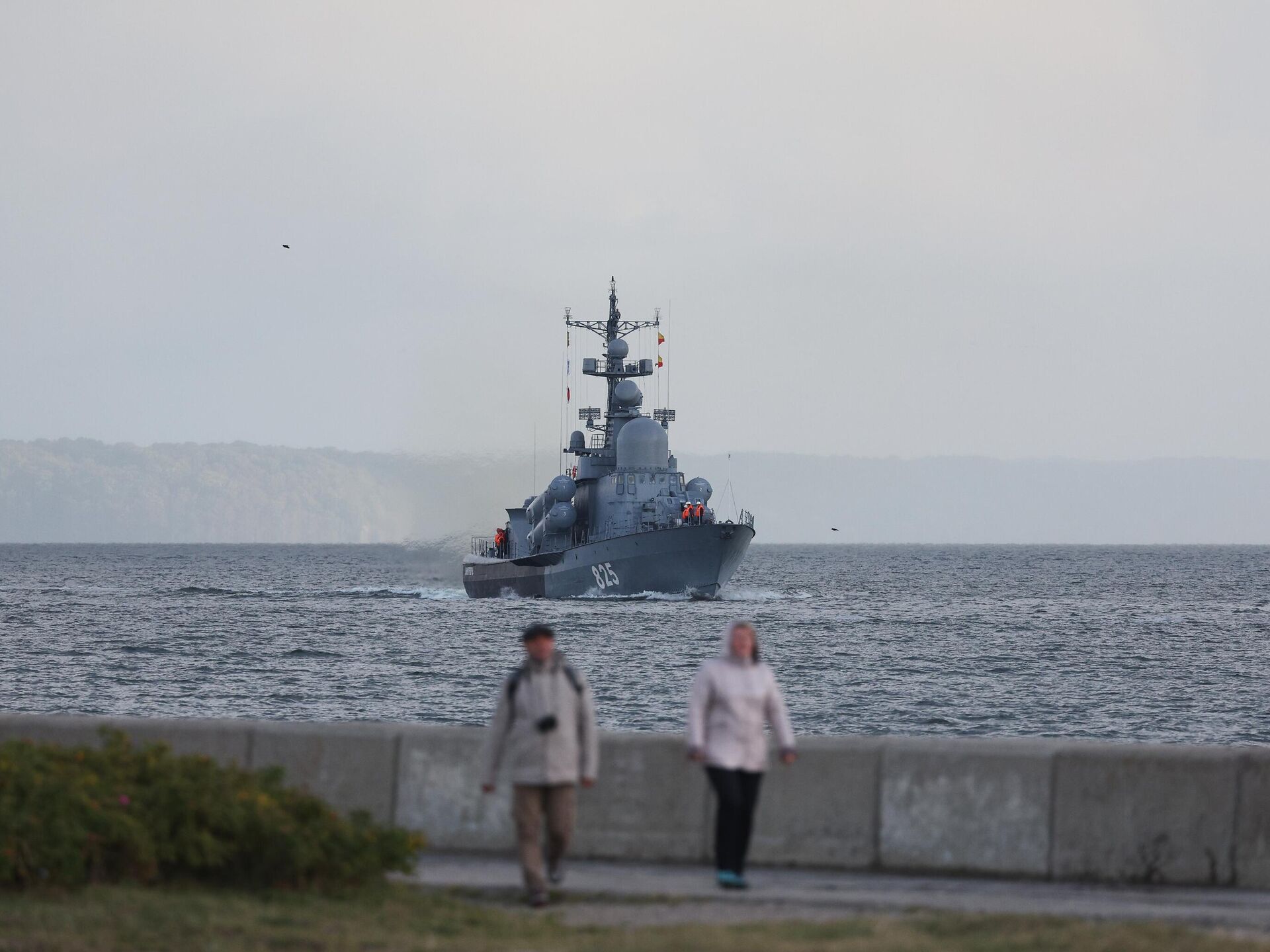 © Sputnik . Mikhail Golenkovسفينة صغيرة مضادة للغواصات "أليكسين" خلال مناورات استراتيجية في ميناء بالتيسك العسكري، 21 سبتمبر 2022