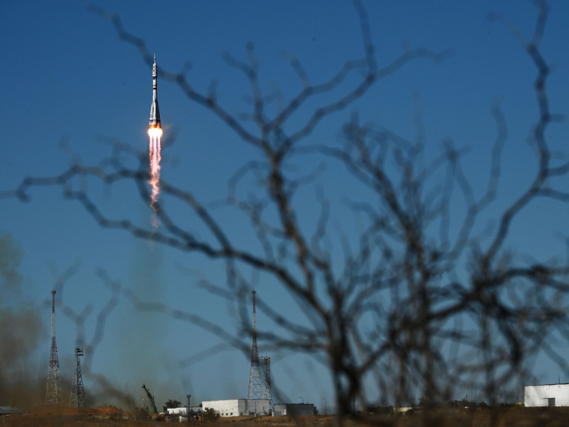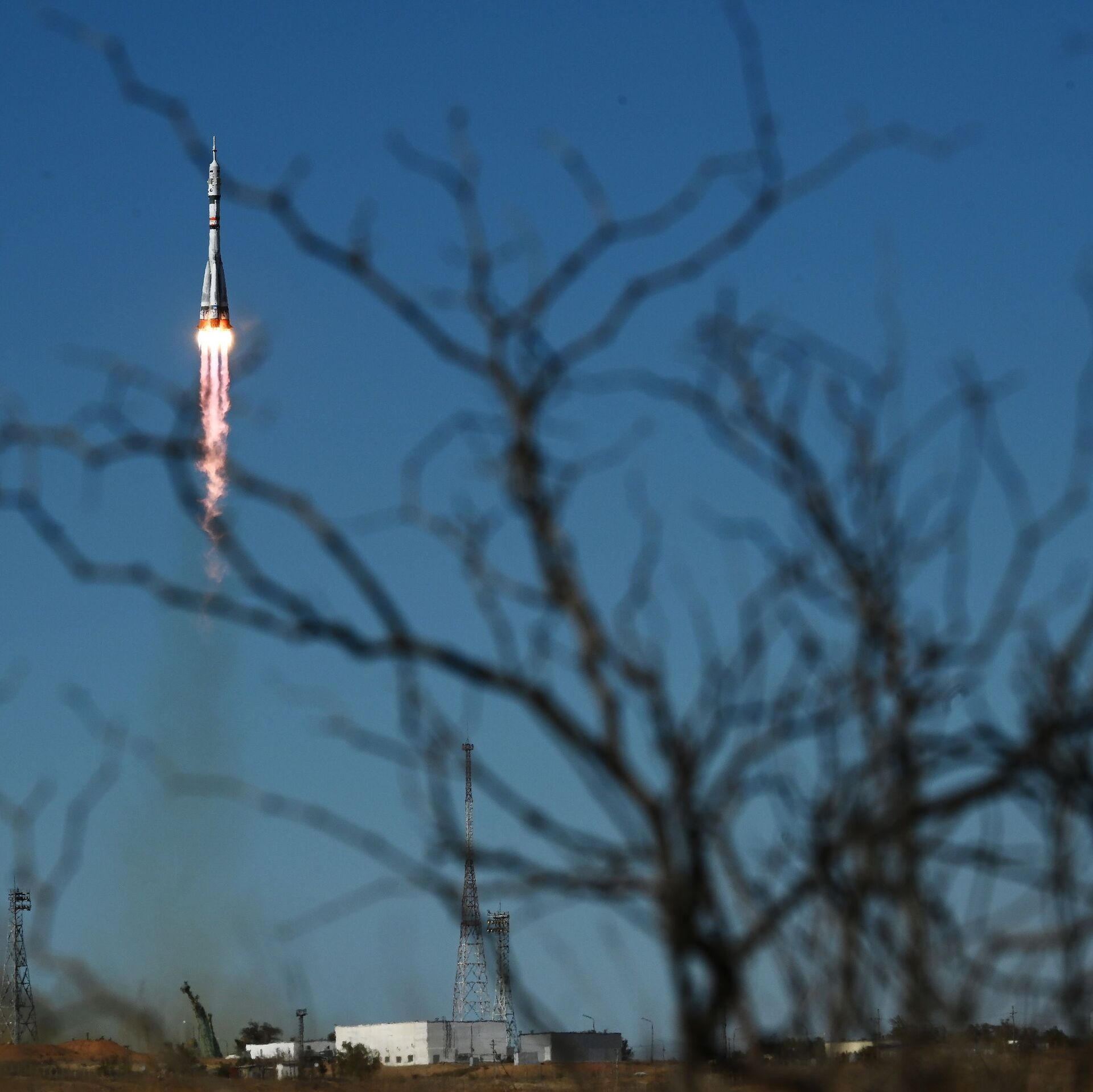 © Sputnik . Ramil Sitdikov / الانتقال إلى بنك الصورانطلاق مركبة "سويوز إم إس-19" مع طاقم فيلم "التحدي" الروسي على متنها من بايكانور، 5 أكتوبر 2021