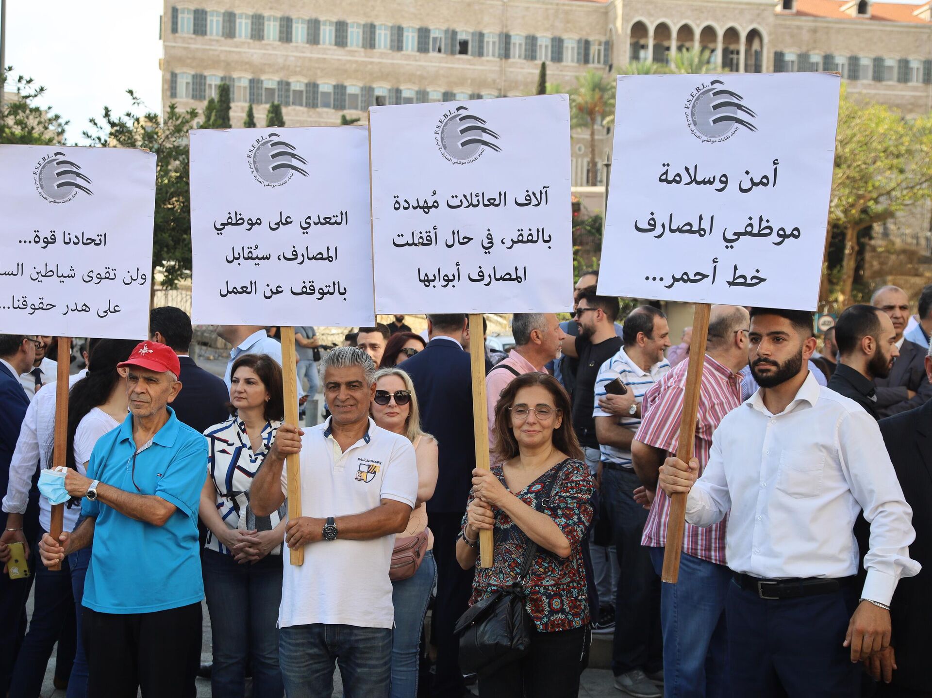 نفذ اتحاد نقابات موظفي المصارف اعتصاما في ساحة رياض الصلح في بيروت، تحت شعار "أمن وسلامة المصرفيين خط أحمر"، وذلك احتجاجا على تكرار اقتحام المصارف من قبل المودعين وللمطالبة بضمان أمن وسلامة العاملين.