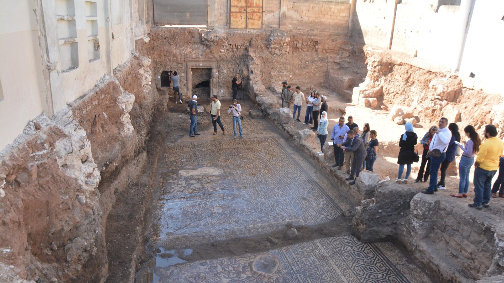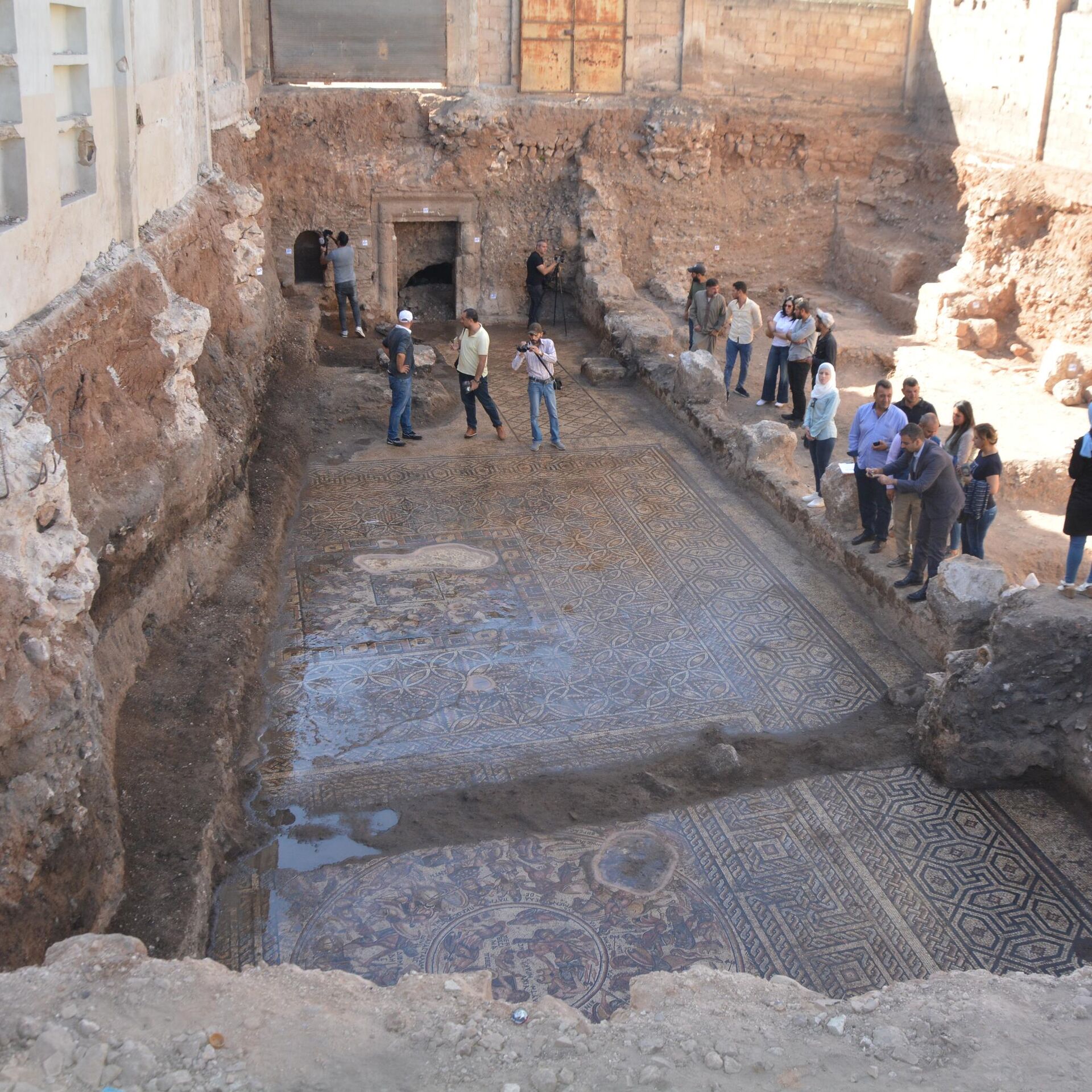 اكتشاف لوحة فسيفسائية، تعتبر الأندر عالمياً، في مدينة (الرستن الفوقاني) في محافظة حمص وسط سوريا