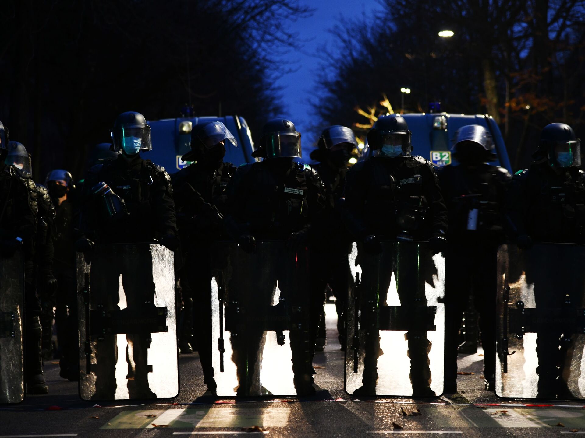 © Sputnik . Dominique Boutin / الانتقال إلى بنك الصوراحتجاجات على تعديل قانون "الأمن الوطني"، والذي ينص بشكل خاص على توسيع صلاحيات الشرطة، وضد مشروع قانون يمنع نشر صور أفراد الشرطة، باريس، فرنسا 21 نوفمبر 2020
