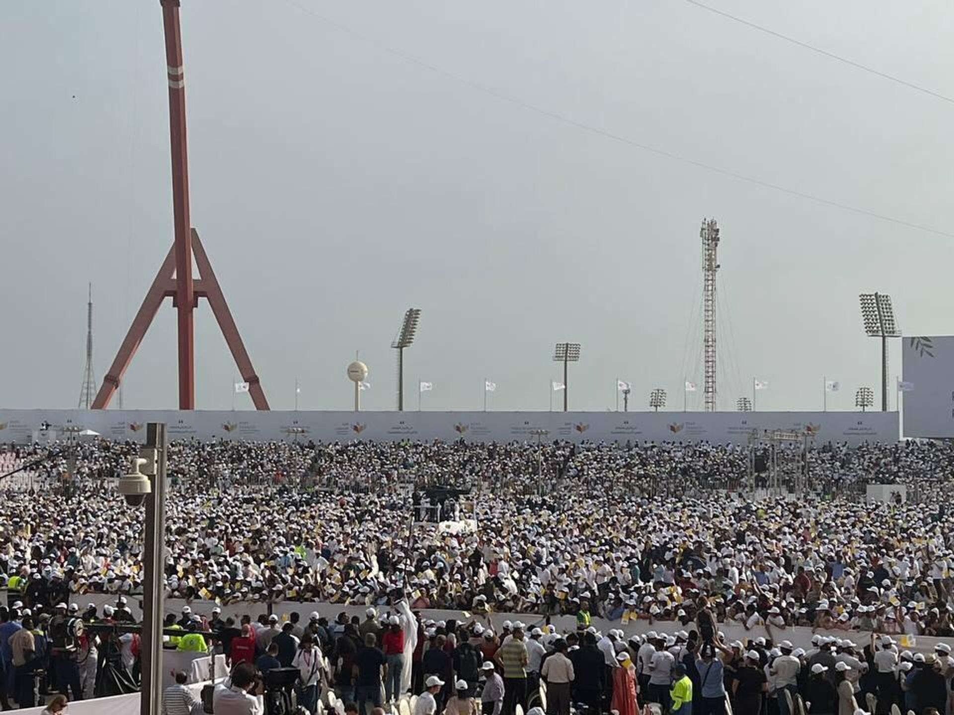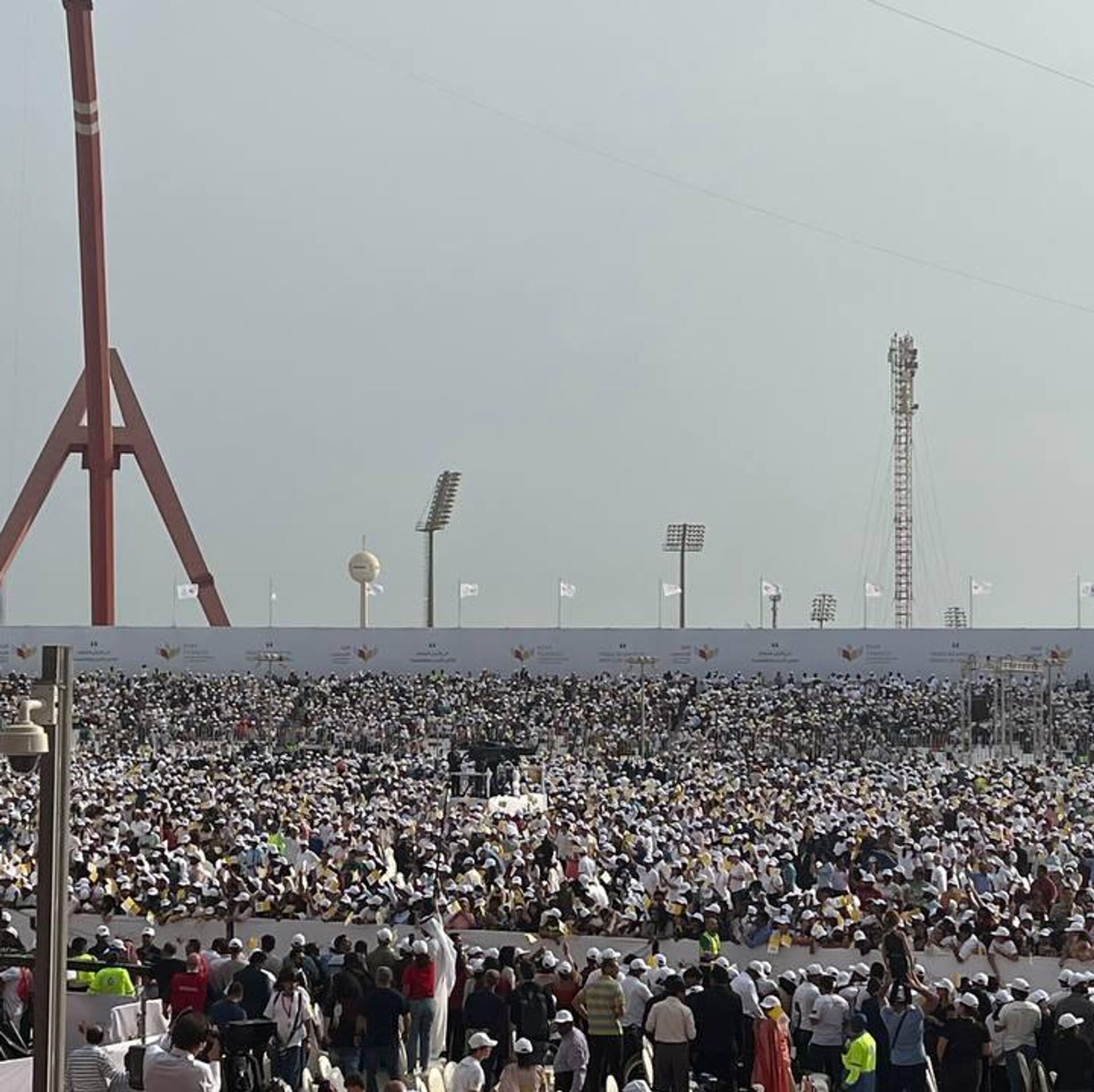 تجمع عشرات الآلاف من داخل البحرين وخارجها ومختلف الجنسيات، في مشهد مهيب، بالزي الأبيض في استاد البحرين الوطني، صباح اليوم السبت، في العاصمة البحرينية، المنامة، لأداء "القداس الإلهي" بحضور بابا الفاتيكان، البابا فرنسيس.