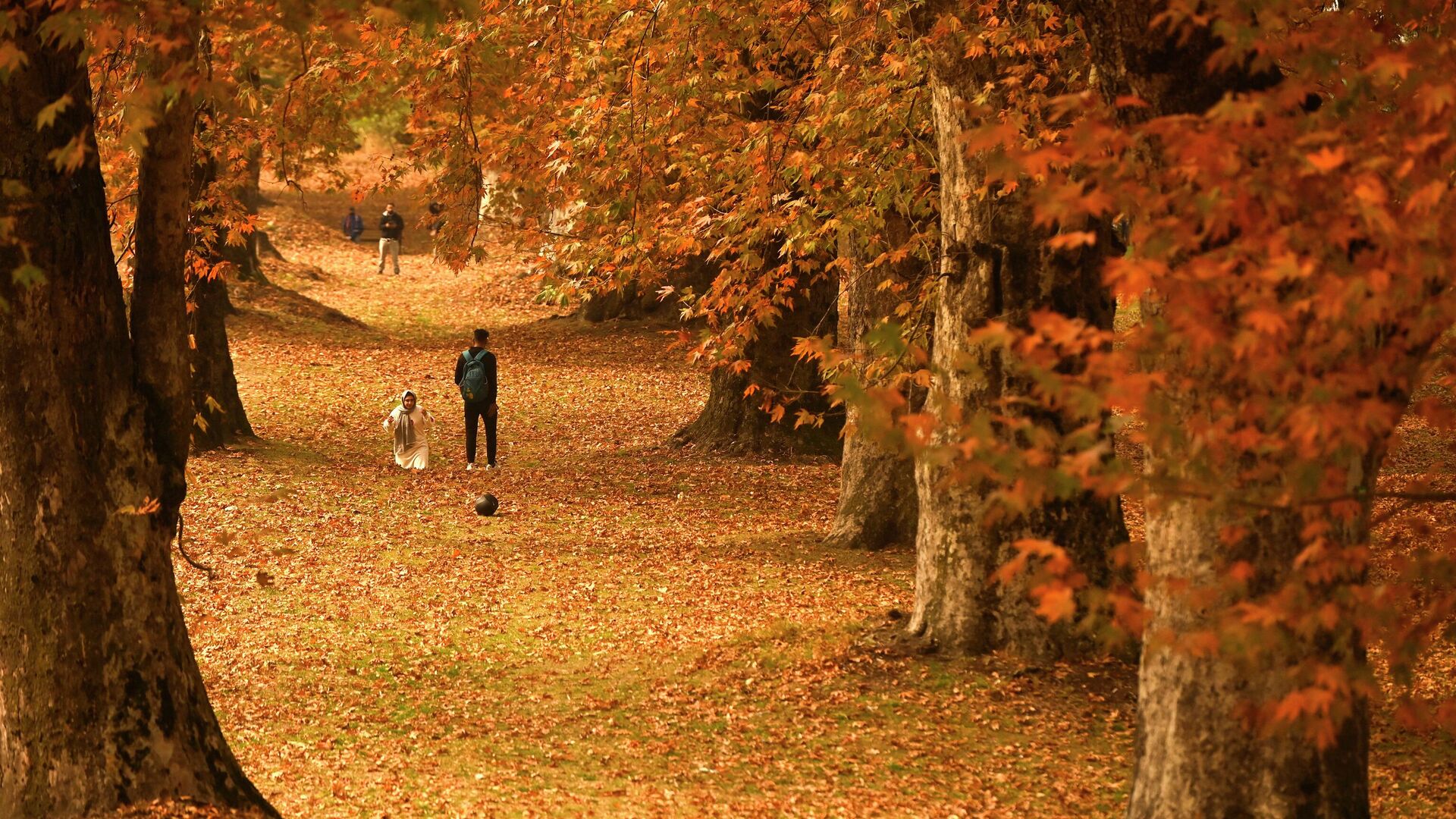 © AFP 2023 / Tauseef Mustafa أشخاص يسيرون وسط أشجار القيقب في حديقة نيشات في سريناغار، الهند 1 نوفمبر 2022