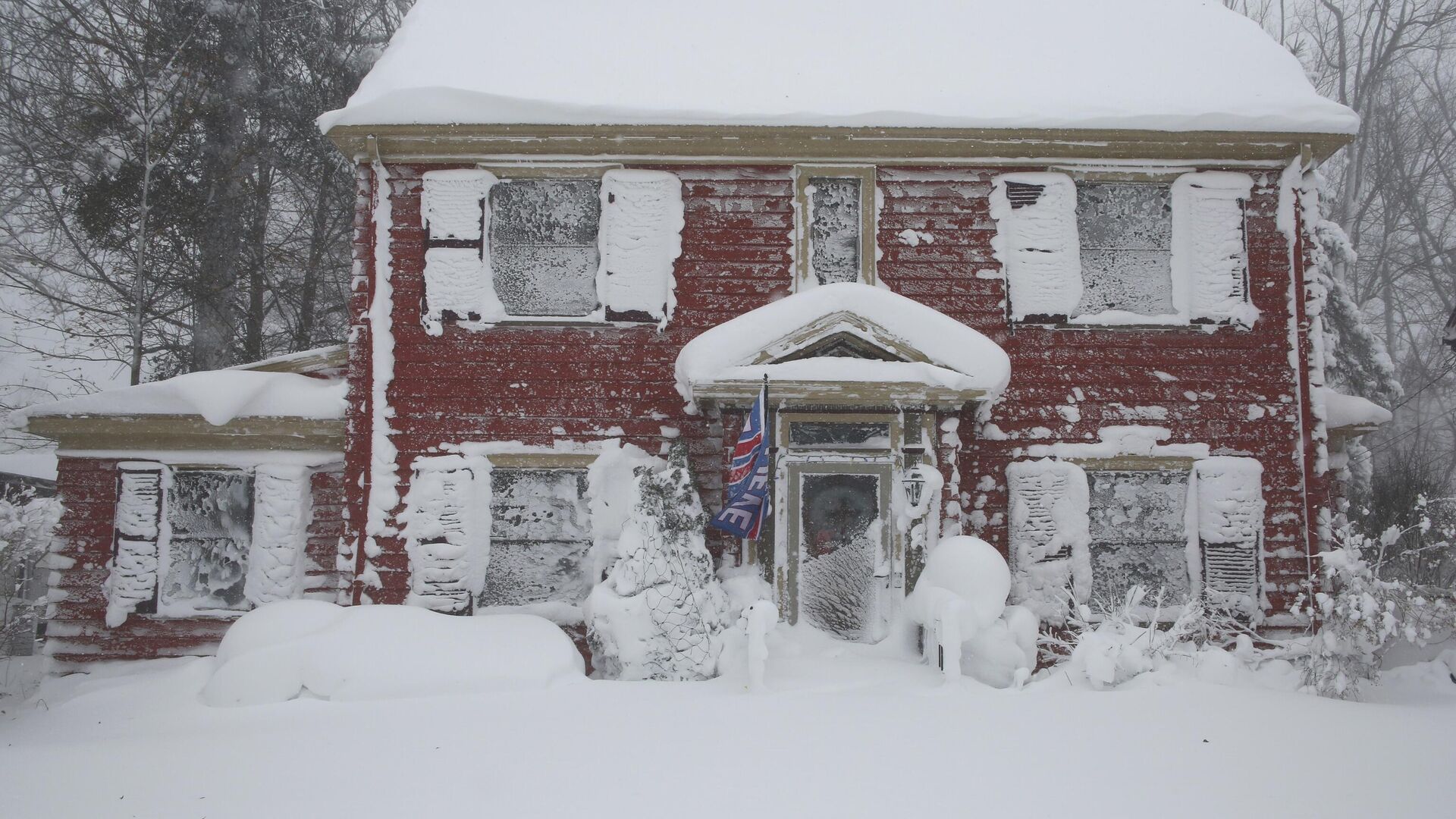 © AP Photo / Jeffrey T. Barnesمنزل مغطى بالثلج بعد عاصفة ثلجية في أمهيرست، نيويورك