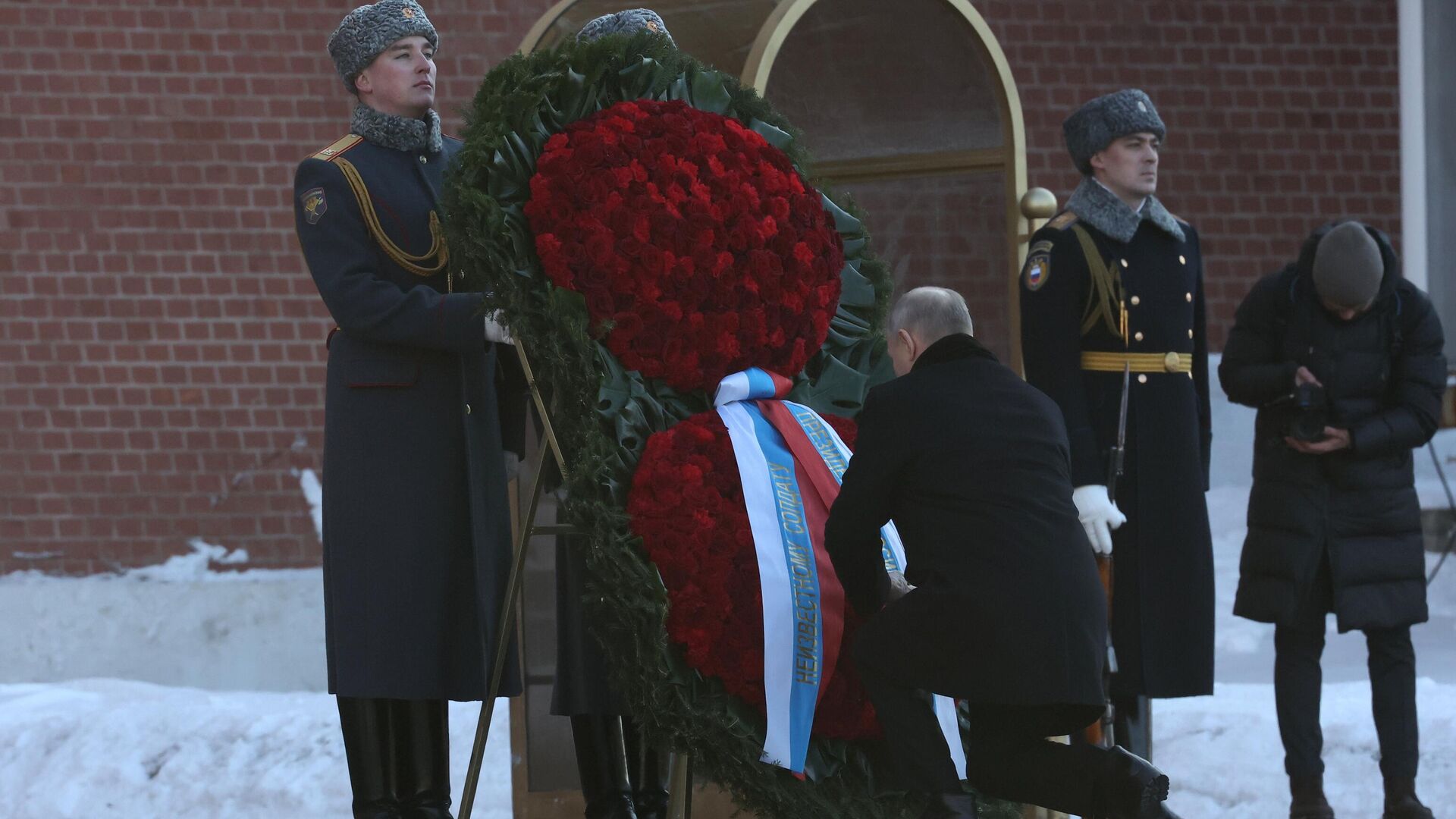 الرئيس الروسي فلاديمير بوتين يضع إكليلا من الزهور على ضريح الجندي المجهور بالقرب من مقر الكرملين في العاصمة الروسية موسكو  - سبوتنيك عربي, 1920, 23.02.2023