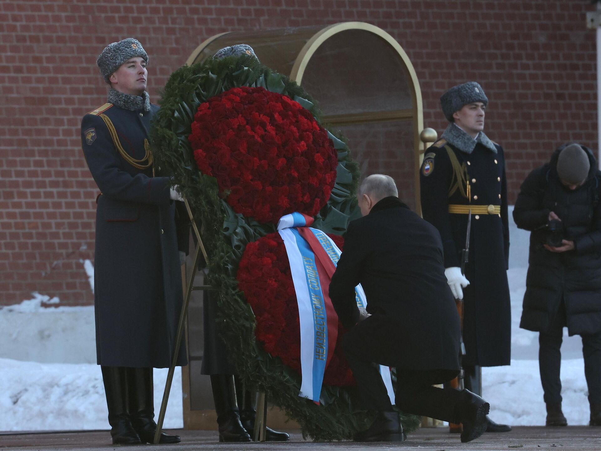 وضع الرئيس الروسي فلاديمير بوتين، اليوم الخميس، إكليلا من الزهور على ضريح الجندي المجهول بالقرب من مقر الكرملين في العاصمة الروسية موسكو بمناسبة العيد الوطني الروسي "حماة الوطن".