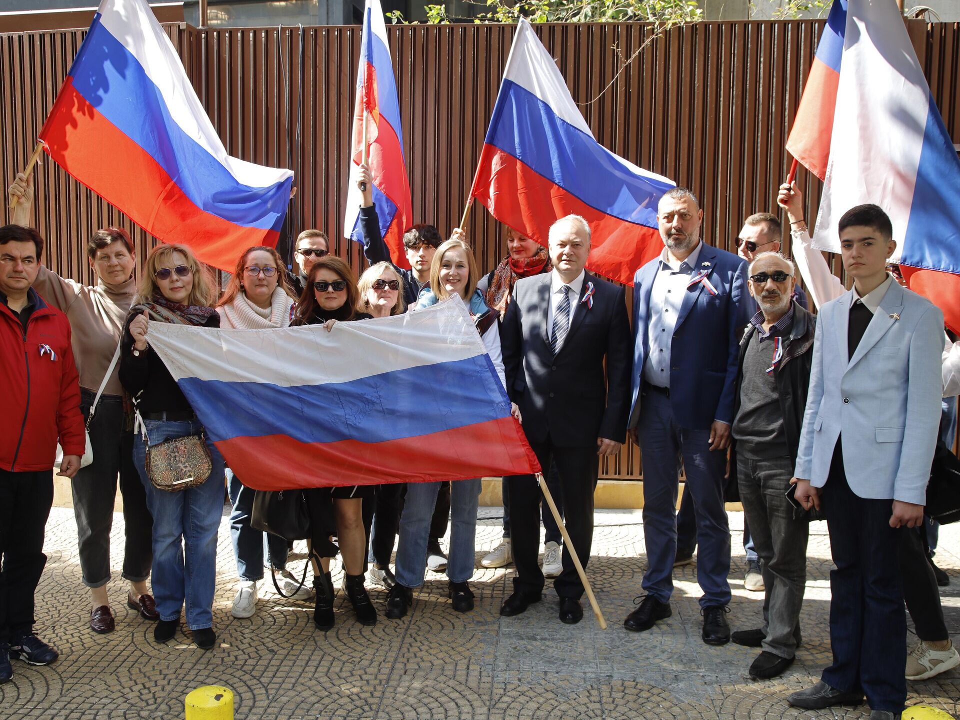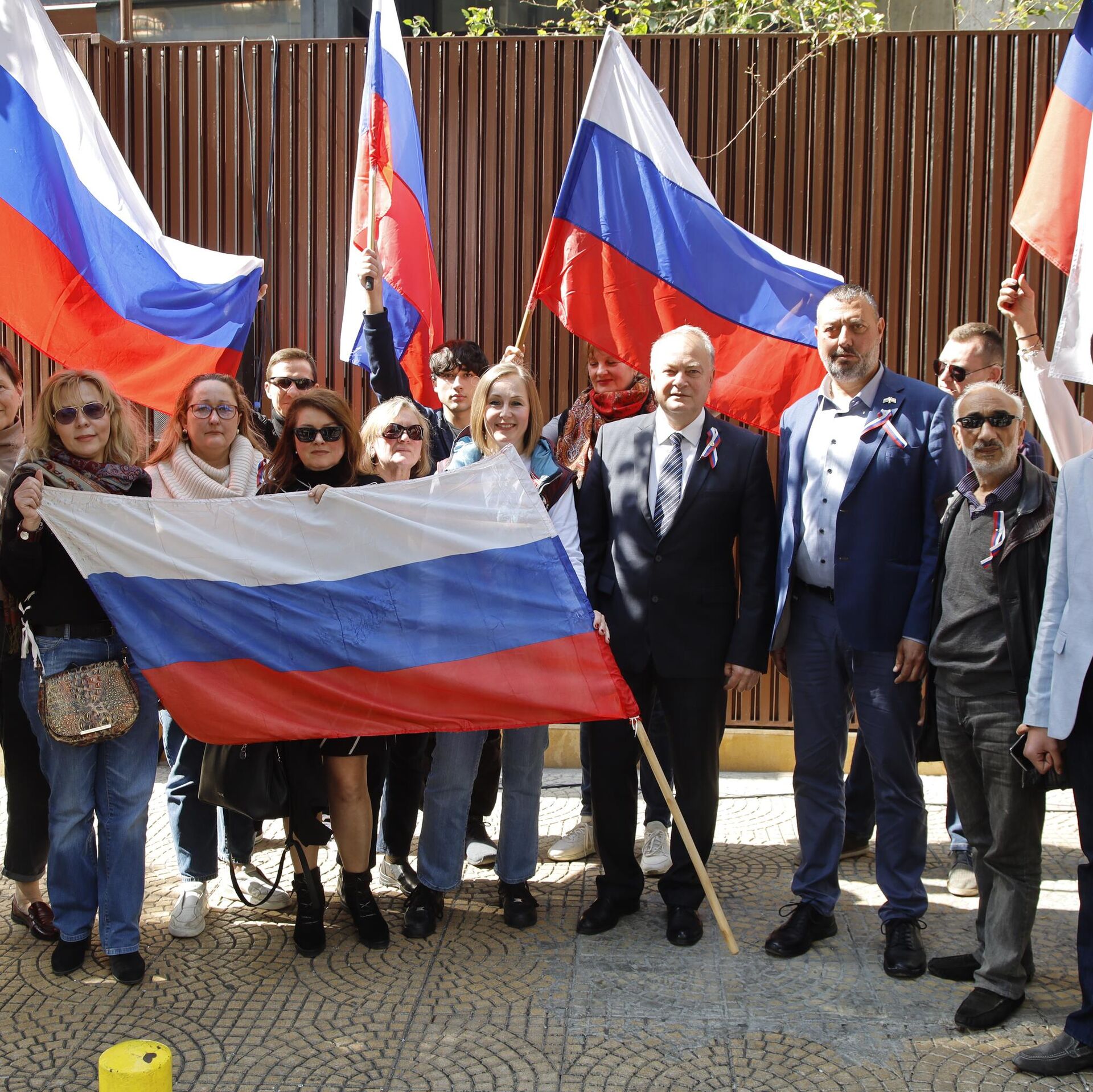 وشارك في المسيرة التي انطلقت من أمام السفارة الروسية، السفير الروسي في لبنان ألكسندر روداكوف، ومواطنون روس ولبنانيون، بالإضافة إلى عدد من خريجي الجامعات الروسية والسوفياتية.