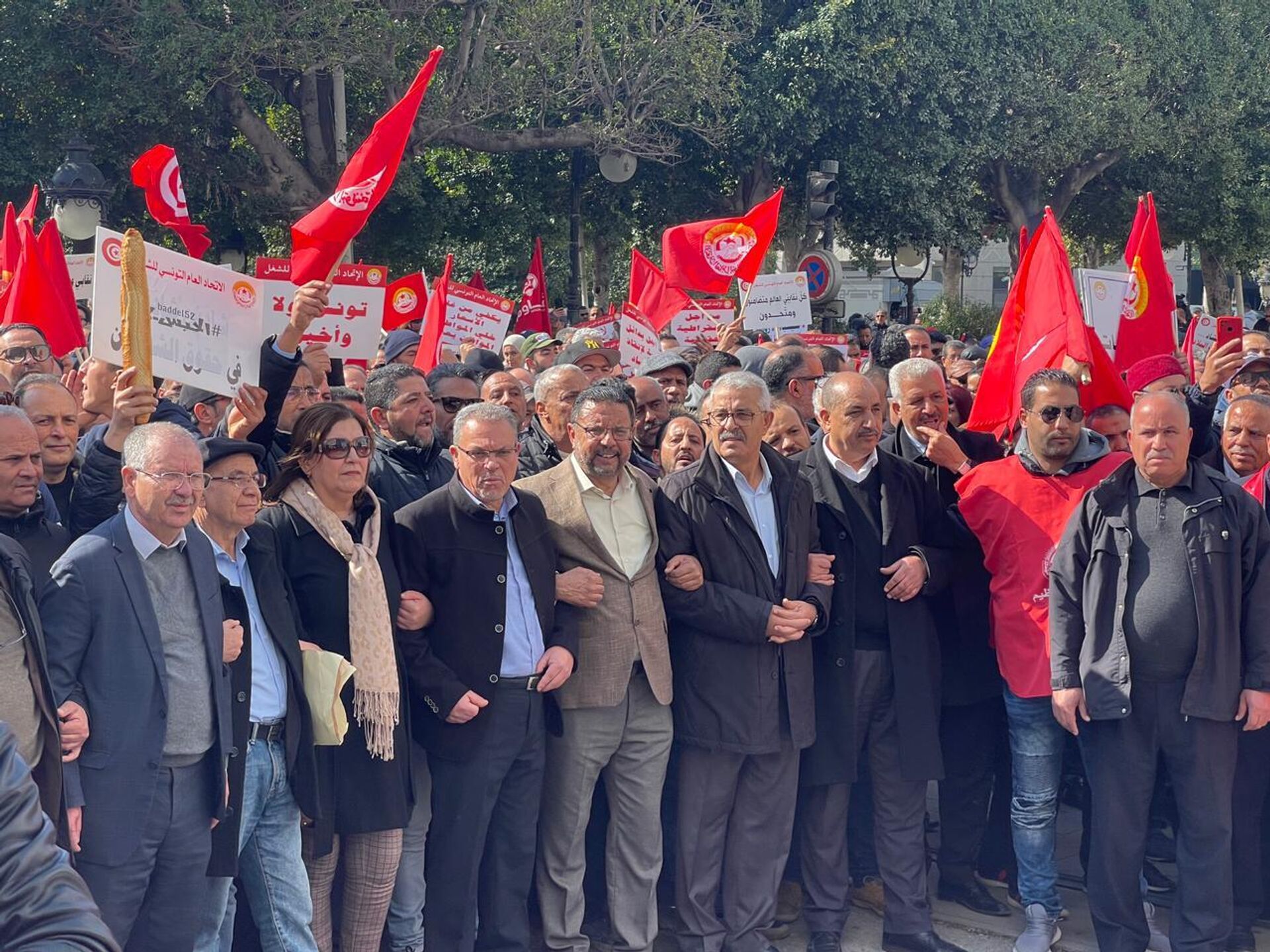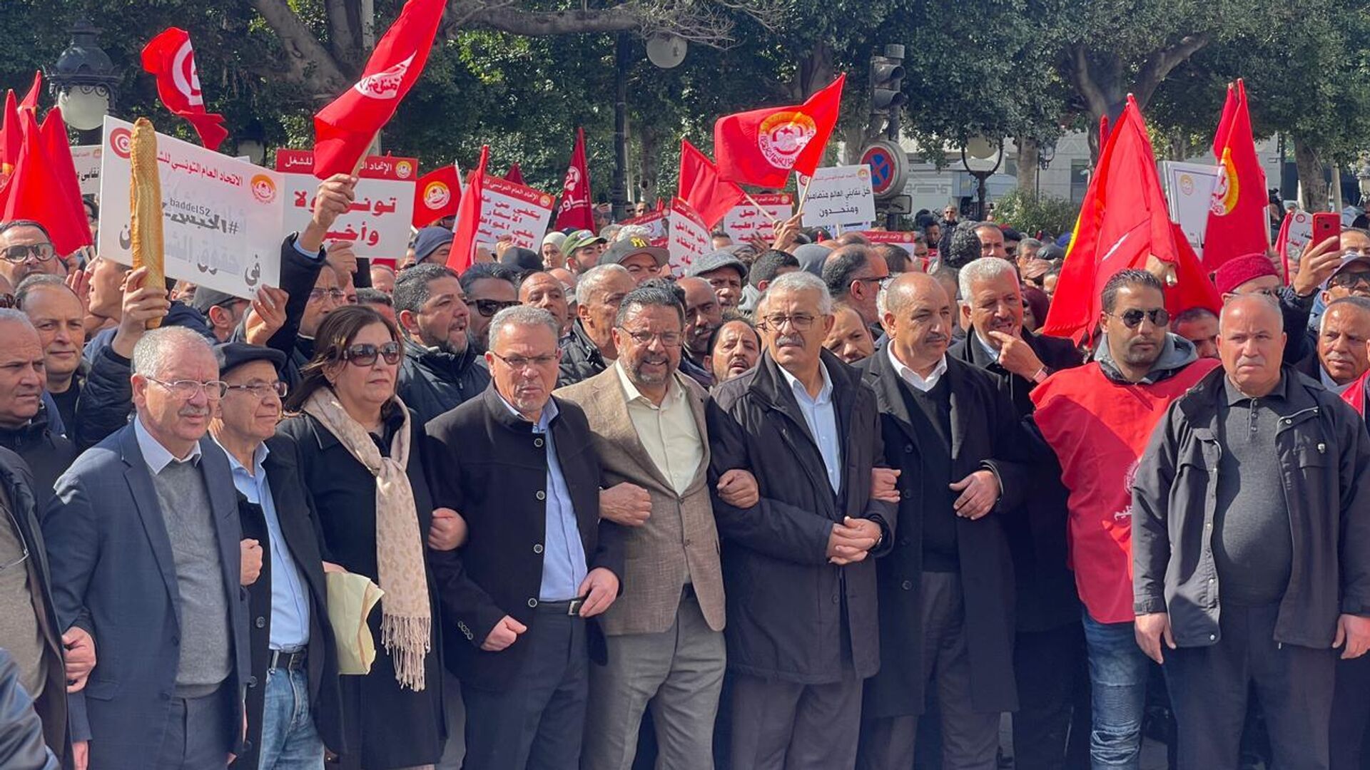وتأتي هذه المسيرة في وقت يزداد فيه التوتر بين الرئيس التونسي قيس سعيد، وبين المنظمة الشغيلة، في وقت تعيش فيه البلاد أزمة مالية واقتصادية غير مسبوقة.