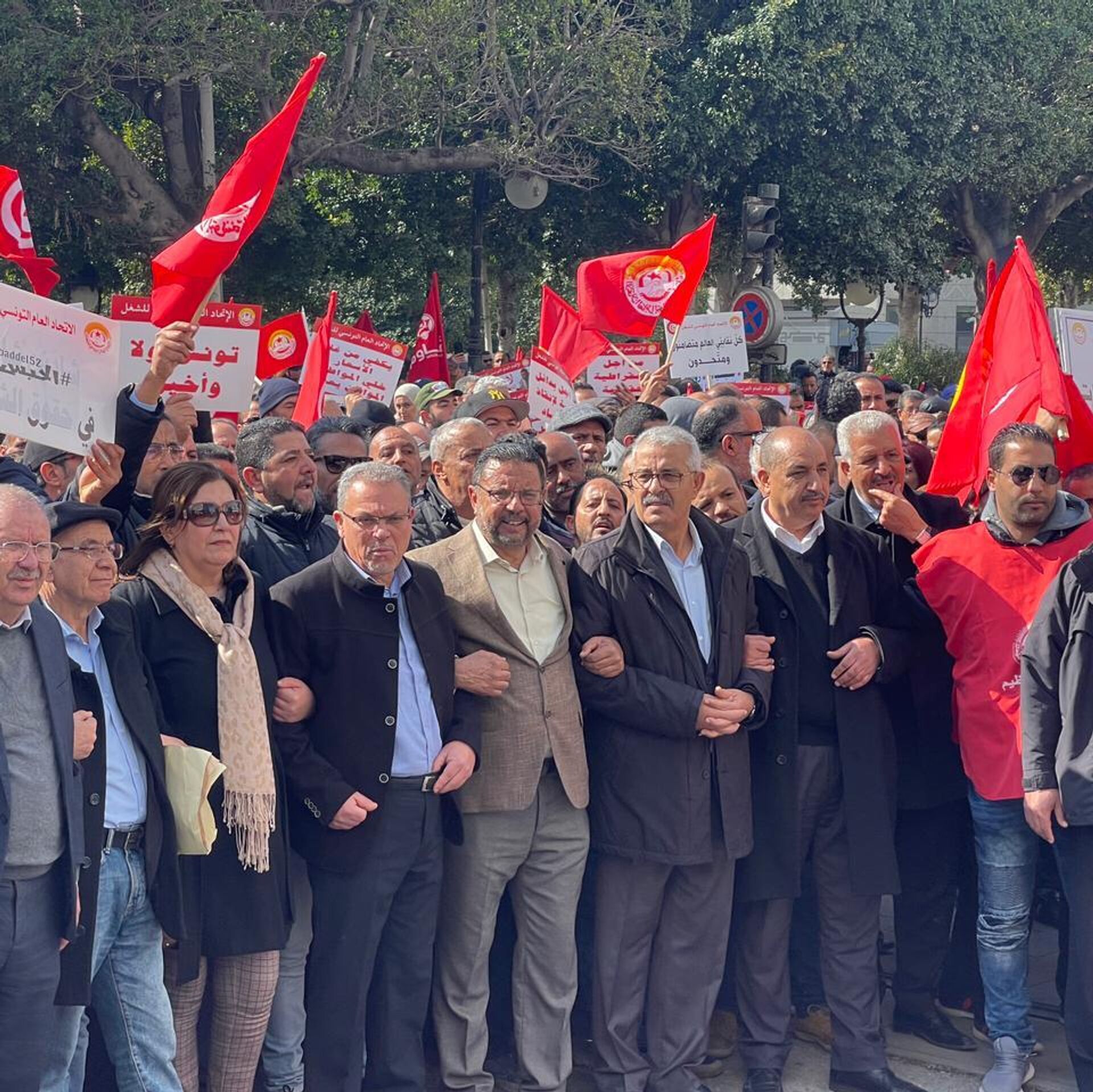 اتحاد الشغل التونسي يتظاهر رفضا لاستهداف العمل النقابي... صور وفيديو