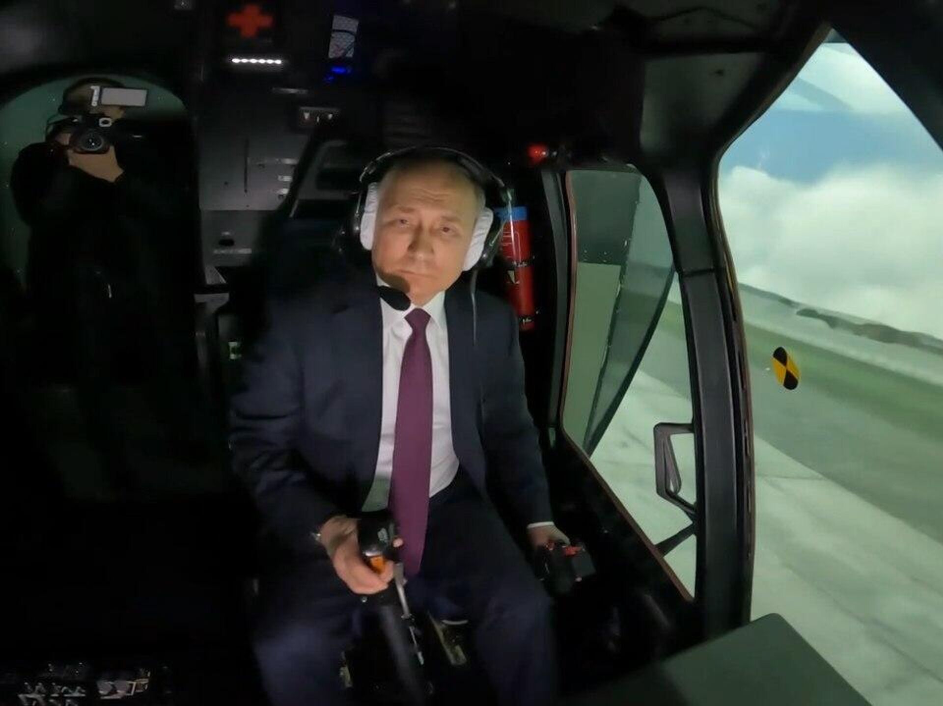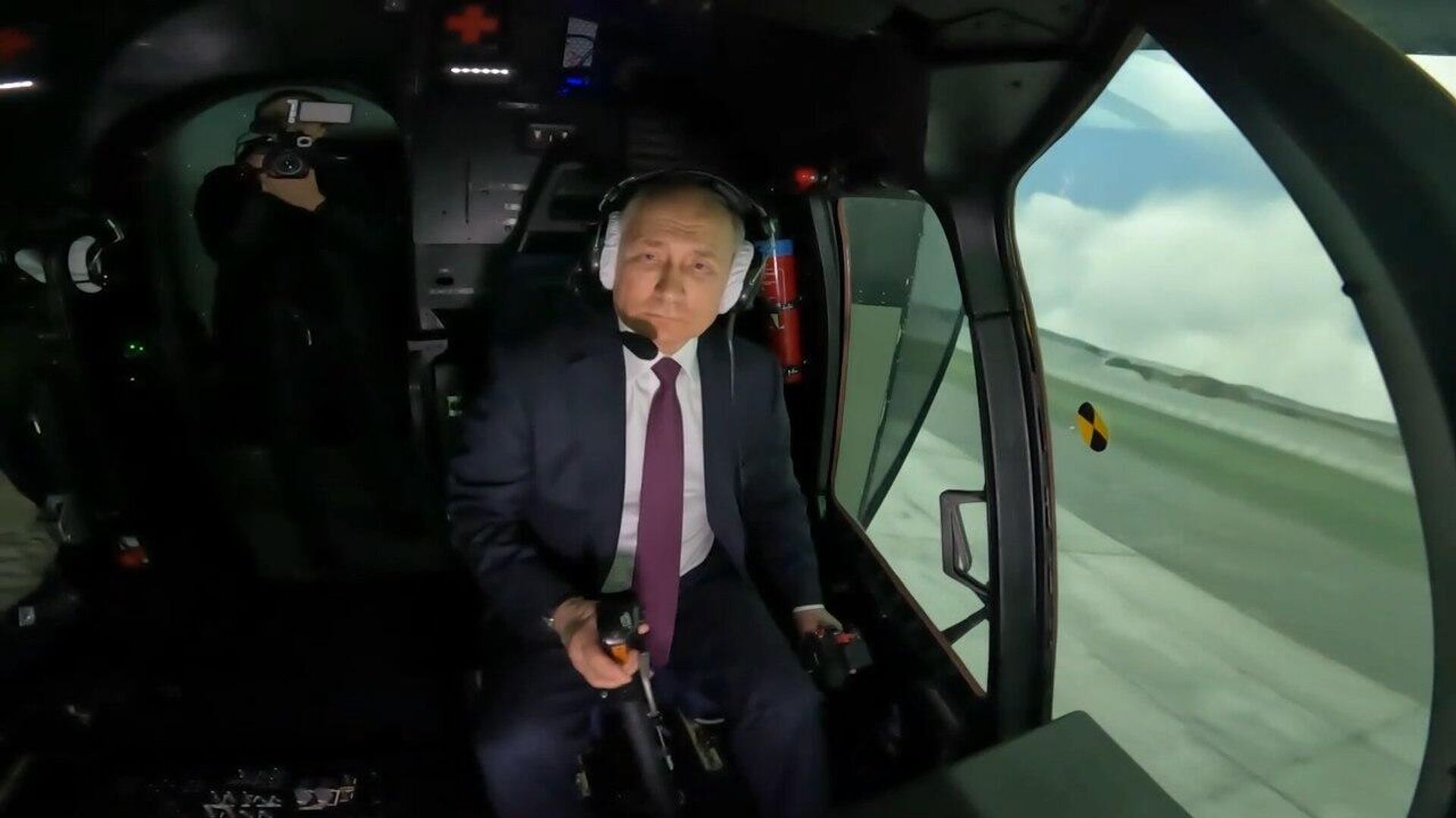 بوتين يقود مروحية عسكرية بواسطة جهاز محاكاة الطيران...فيديو