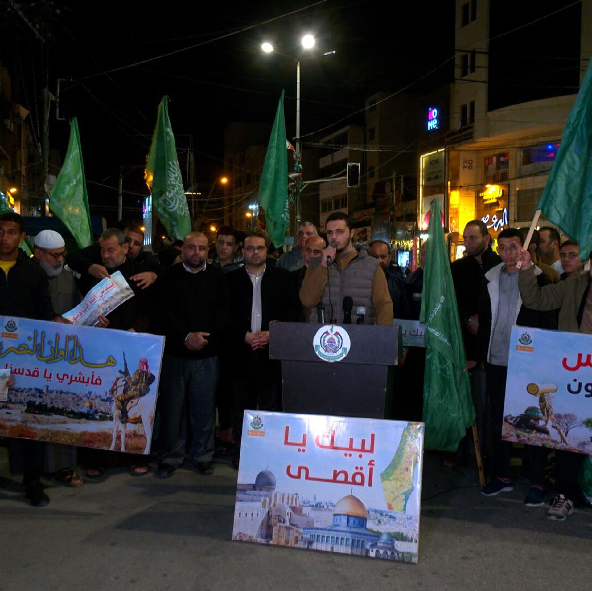وقال حازم قاسم الناطق باسم حركة حماس لوكالة "سبوتنيك":" اليوم تخرج جماهير قطاع غزة من كل المناطق للتعبير عن الغضب الكبير جراء اقتحامات قوات الاحتلال للمسجد الأقصى والاعتداء على المعتكفين، وشعبنا الفلسطيني لا يمكن أن يمرر هذه الجريمة دون رد يوازي حجم هذه الانتهاكات، والاحتلال يتحمل كامل المسؤولية عن هذا الفعل الشنيع".